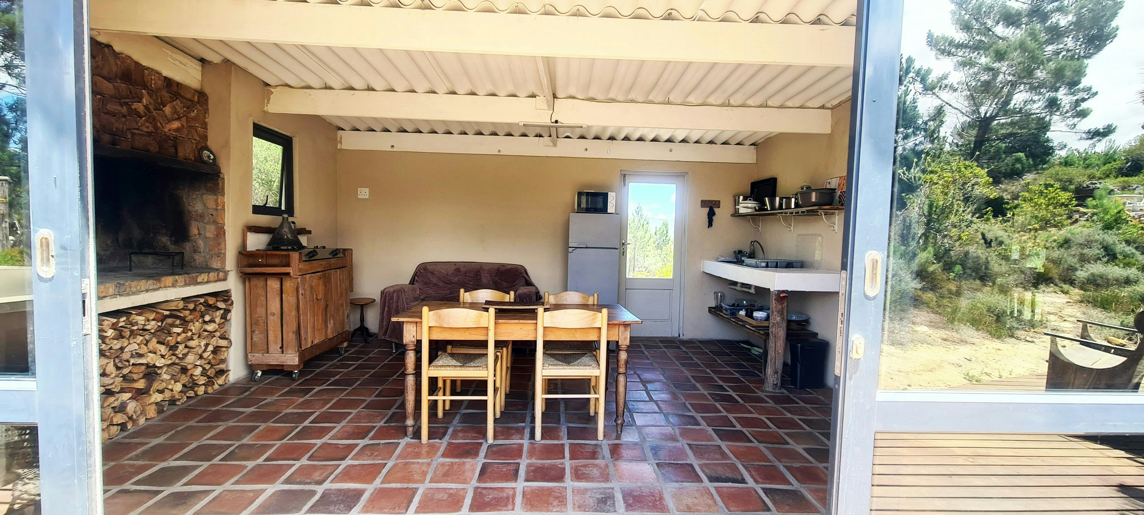 The kitchenette is equipped with a fridge-freezer, a microwave, and tea- and coffee-making facilities. It extends to the lounge furnished with comfy couches and features a lovely dining set where guests can enjoy their meals. There is also an indoor braai area.
