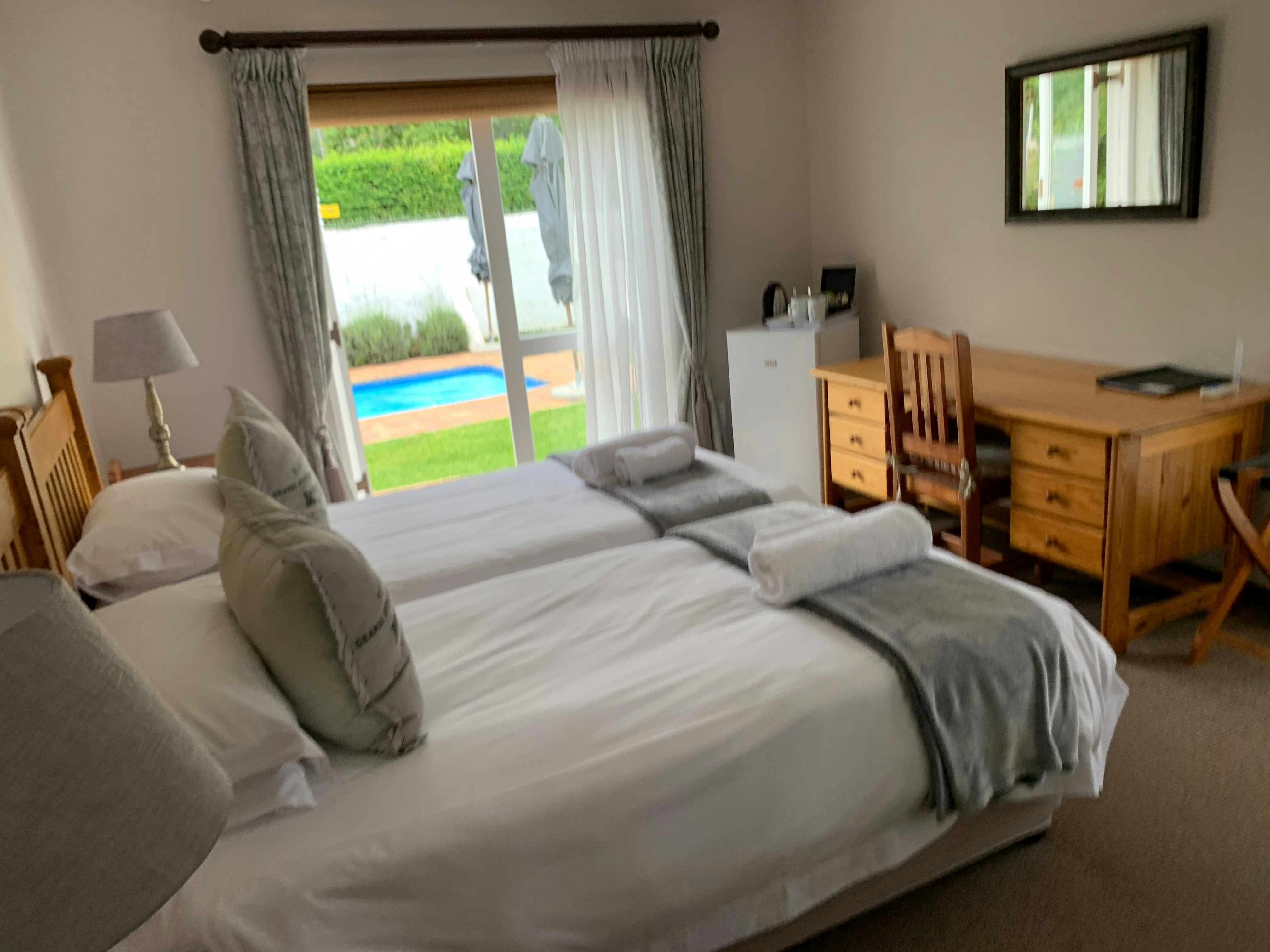 Die lodge bied 8 elegante en suite-kamers met 'n keuse tussen enkel-, dubbel- of koningingrootte-beddens. Elke kamer is toegerus met 'n yskassie en koffie- en teemaakgeriewe. 'n Smullekker ontbyt word soggens in die sonnetjie op die patio bedien of in die eetkamerarea as die weer nie wil saamspeel nie. Gaste kan langs die swembad ontspan of nuus of sport in die TV-kamer kyk.