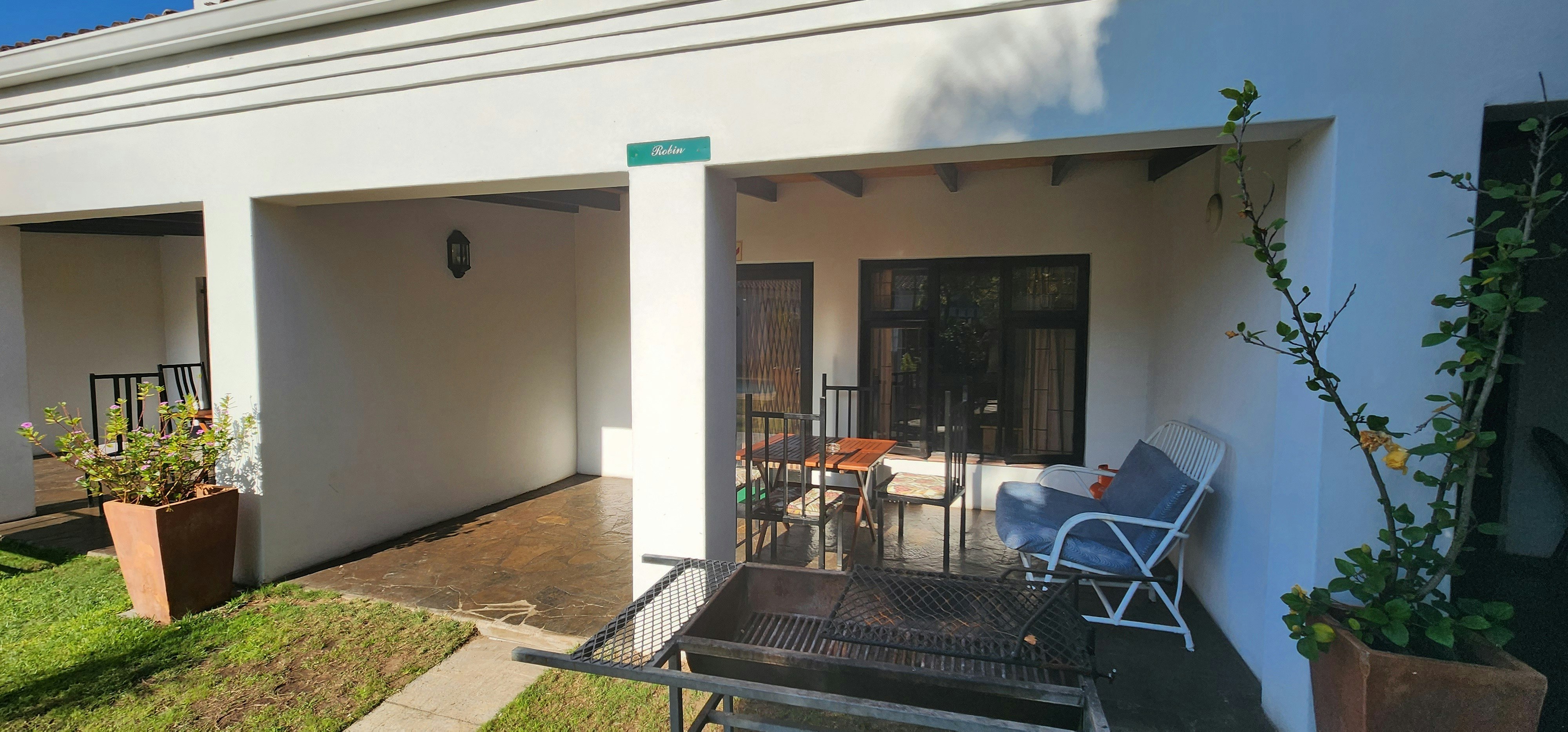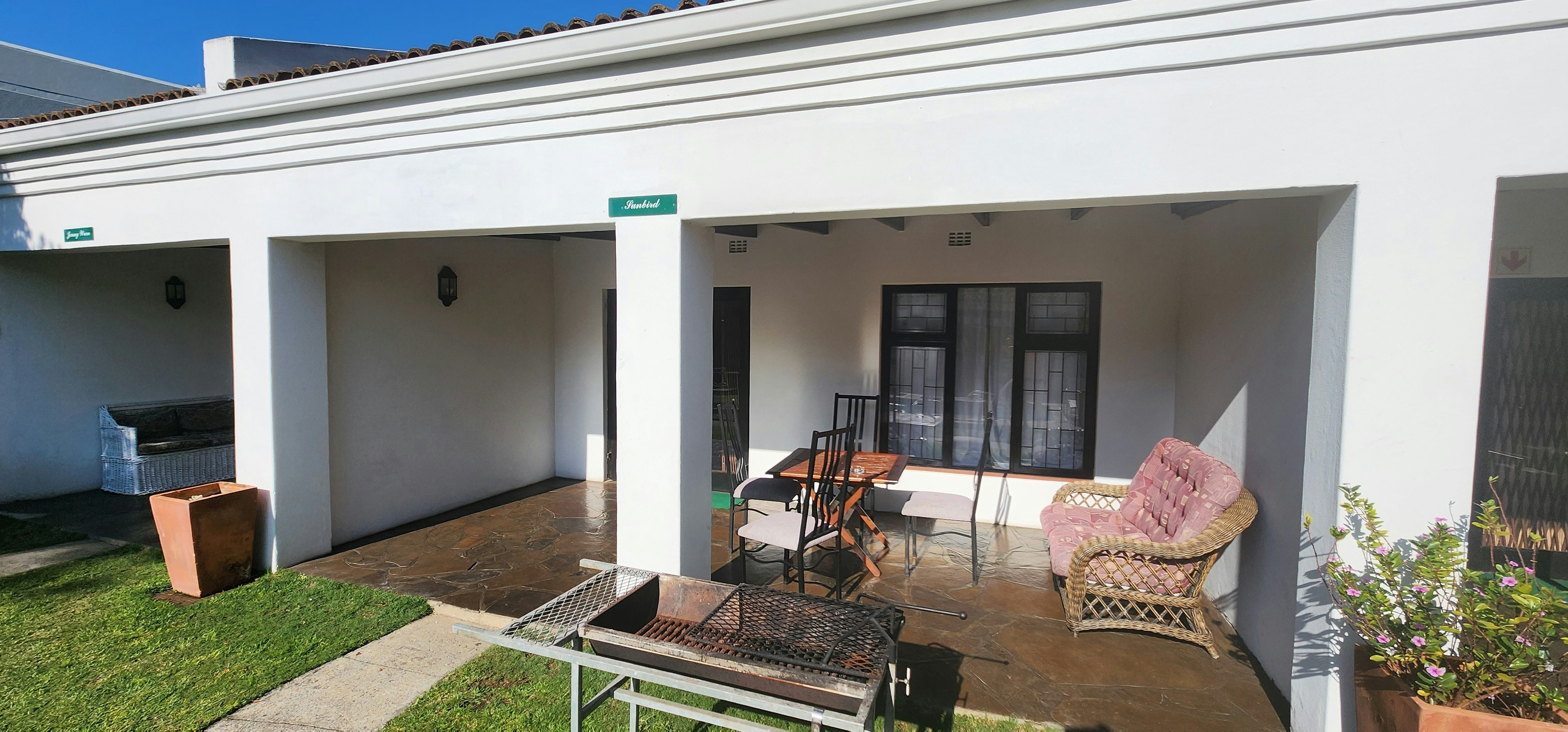 Much appreciated by our guests is that some have their own enclosed garden area with views of the lagoon through the trees, individual braai facilities, and patio furniture. Off-street parking is provided.