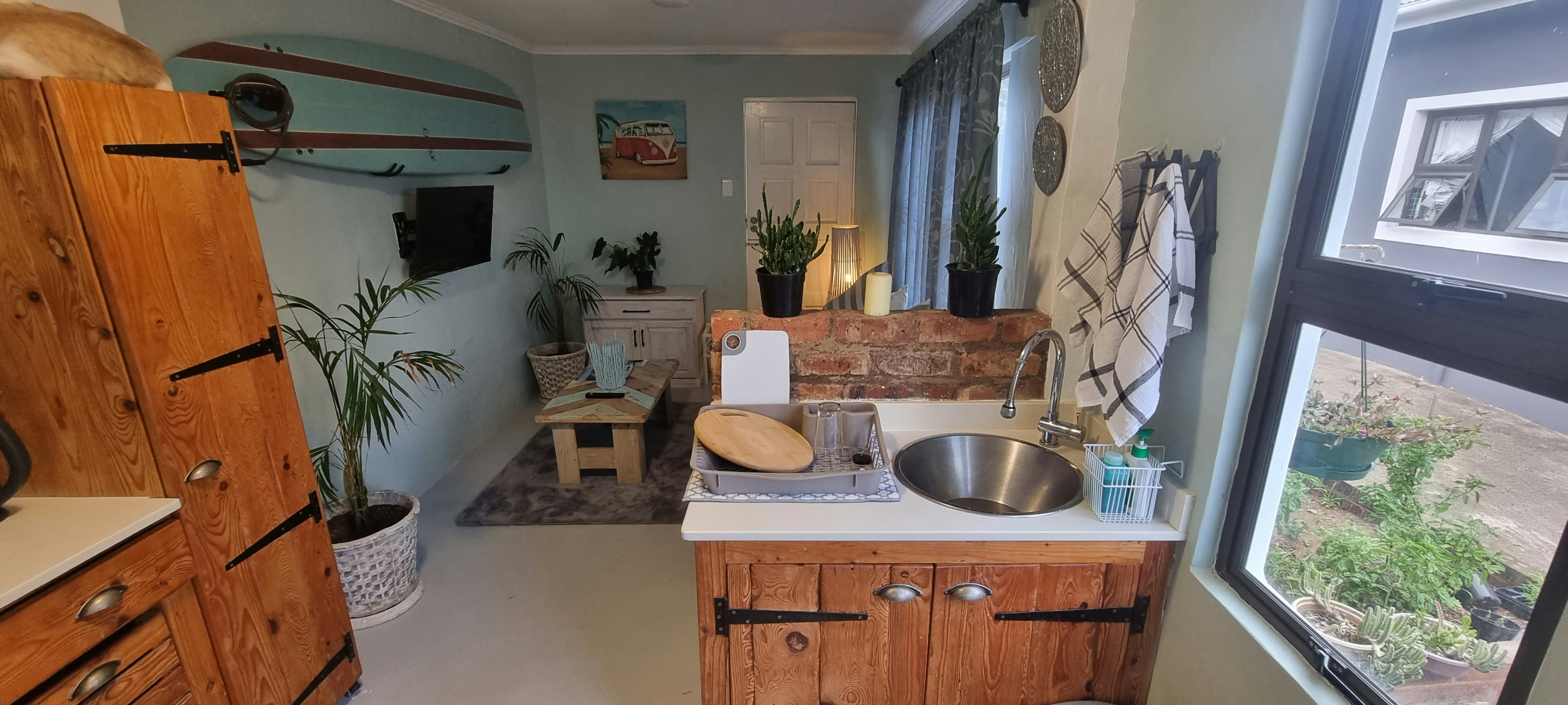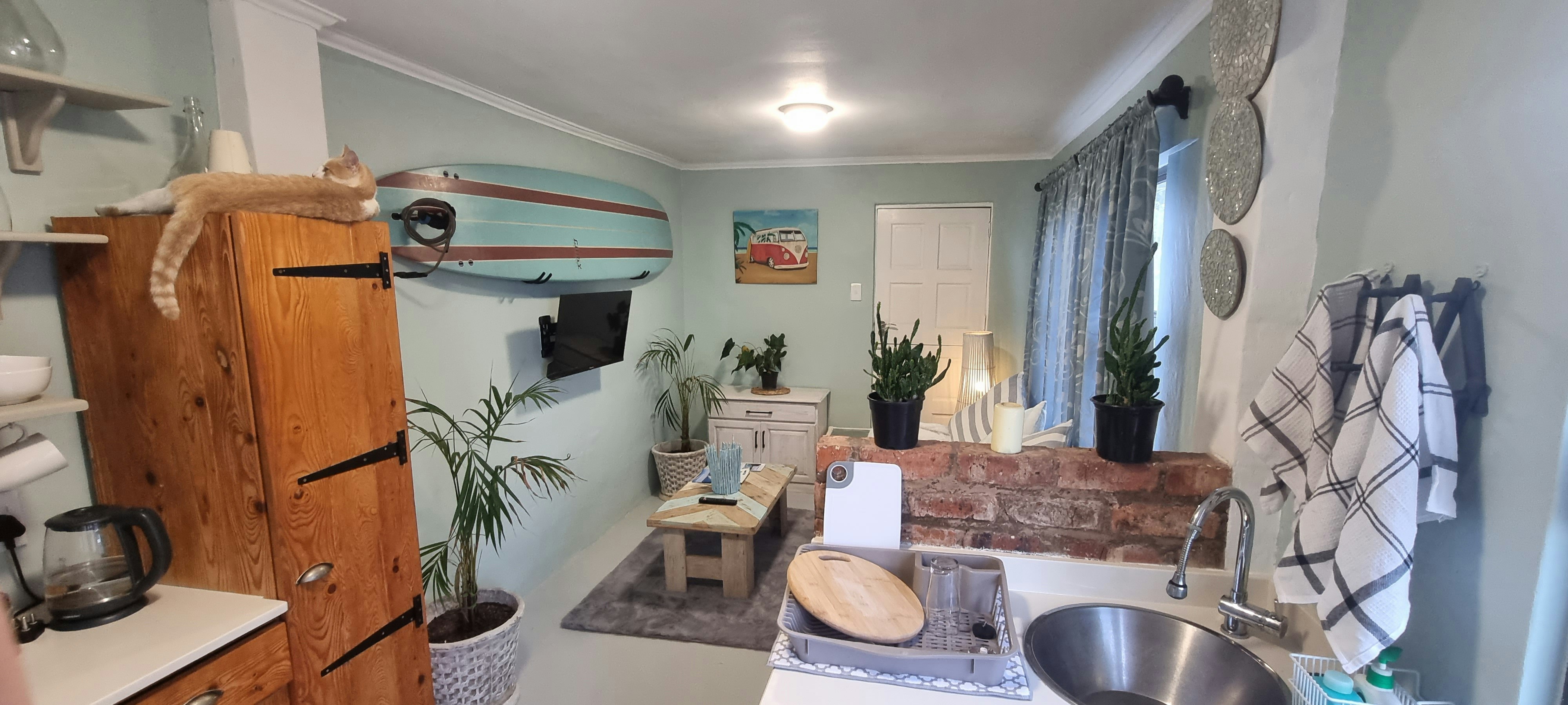 Die oopplan-leefarea beskik oor 'n kombuis wat met 'n yskas-vrieskas, mikrogolfoond, oond, gasstoof, eetgerei, breekware en koffie- en teemaakgeriewe toegerus is. Die leefarea het 'n TV en gemaklike sitplek. In die geval van kragonderbrekings is daar 'n kragopwekker.