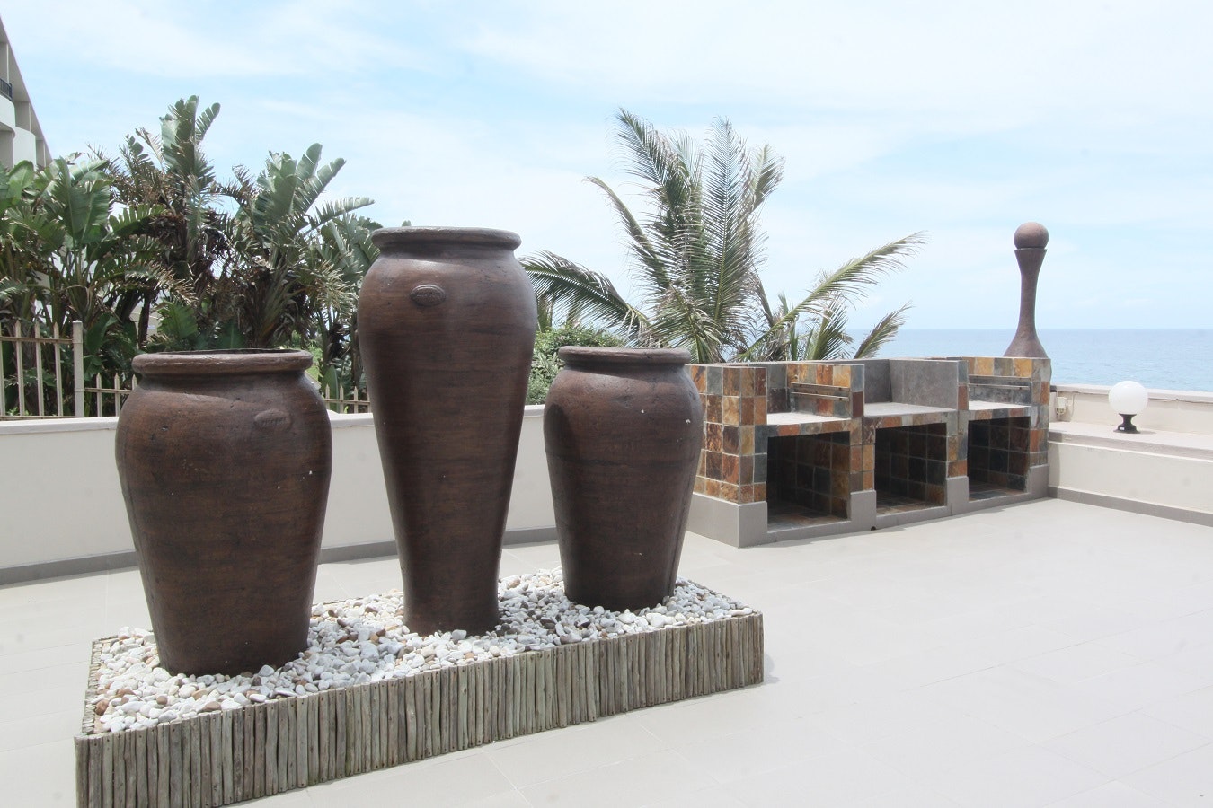 This unit can accommodate 6 guests in 3 bedrooms and has a balcony that has spectacular views of the ocean. The main bedroom contains a king-size bed and the second and third bedrooms each have a queen-size bed. Only standing fans are available in this unit. The unit has 2 bathrooms fitted with a shower, washbasin and toilet. Baby bath supplied. The unit features air conditioning.