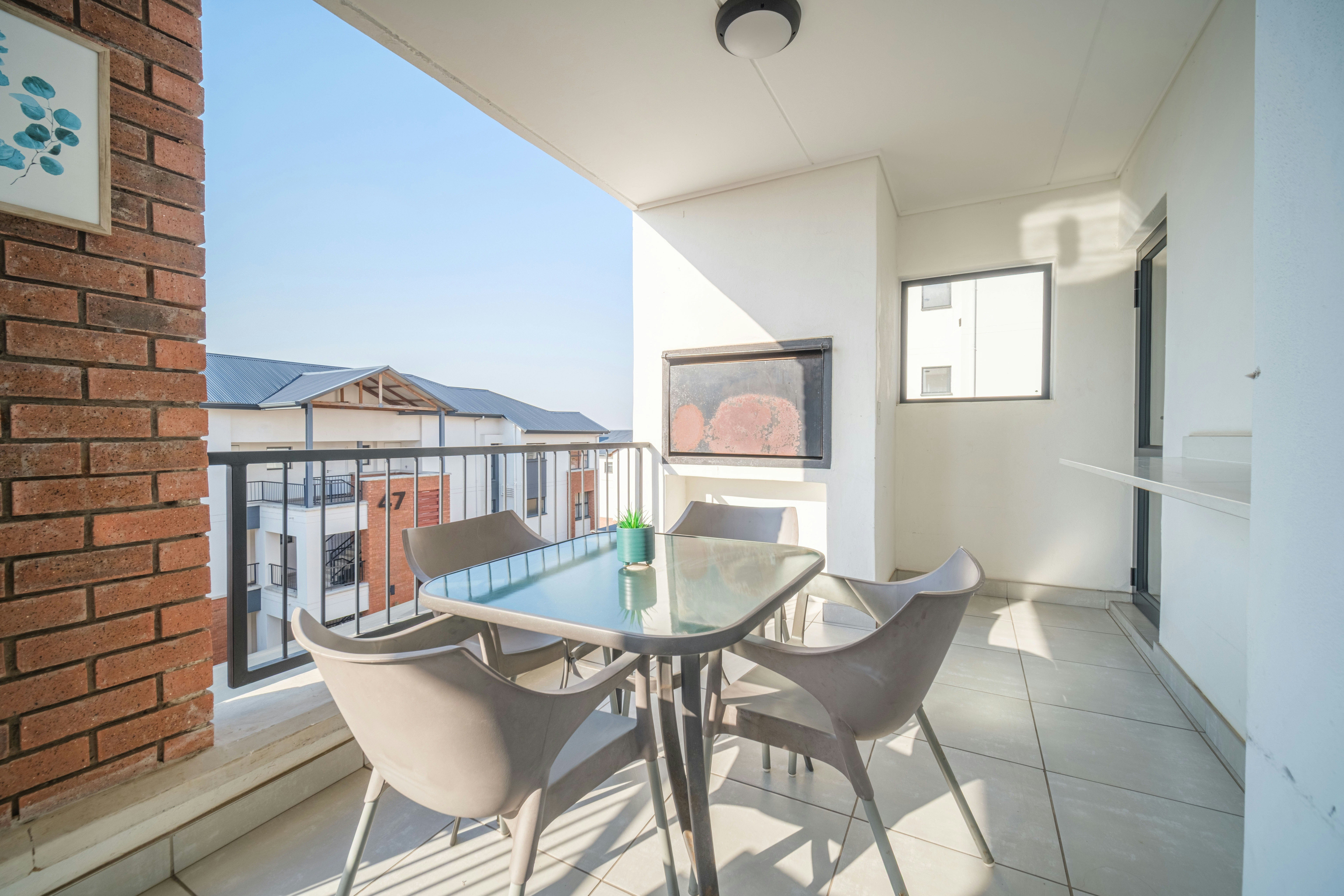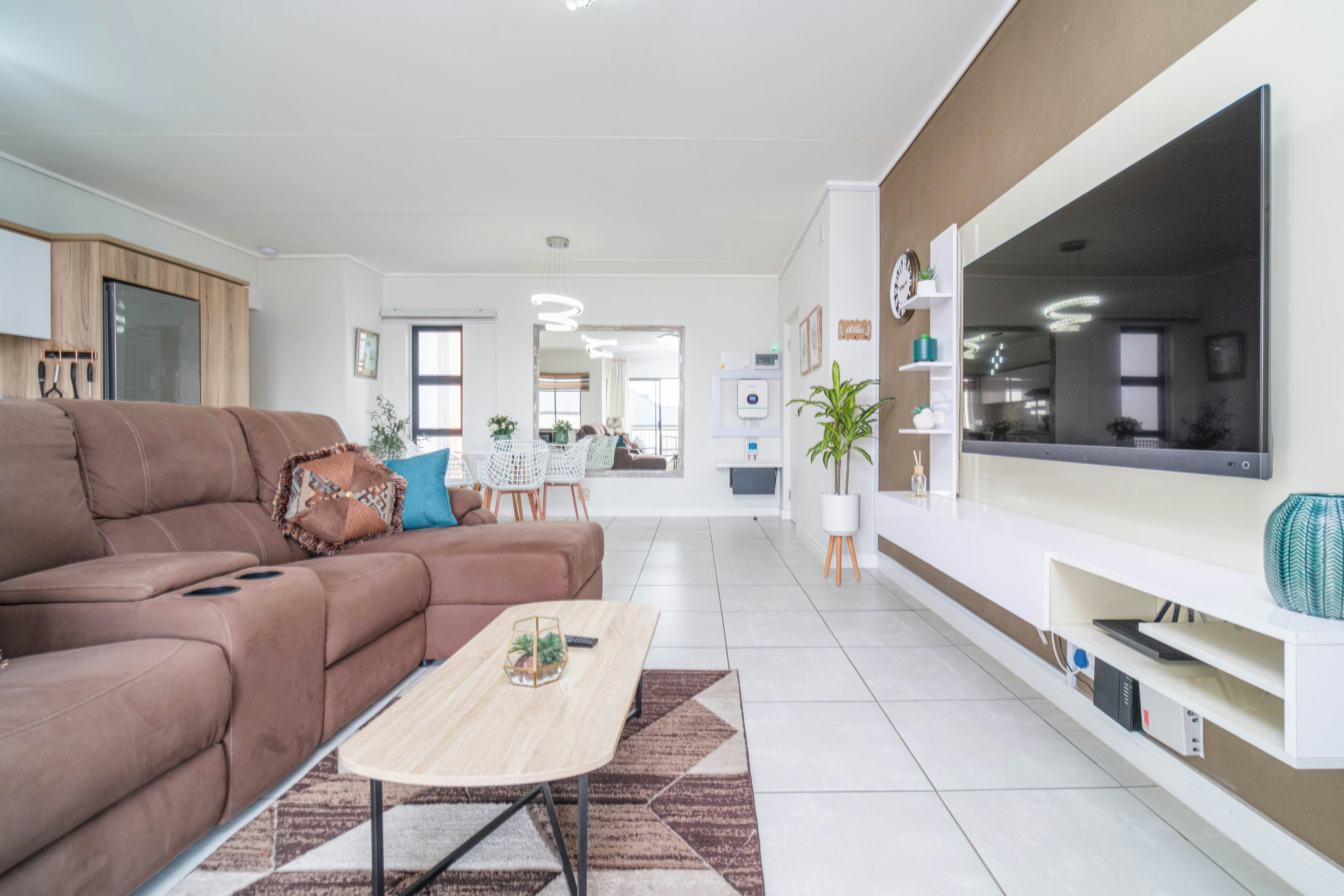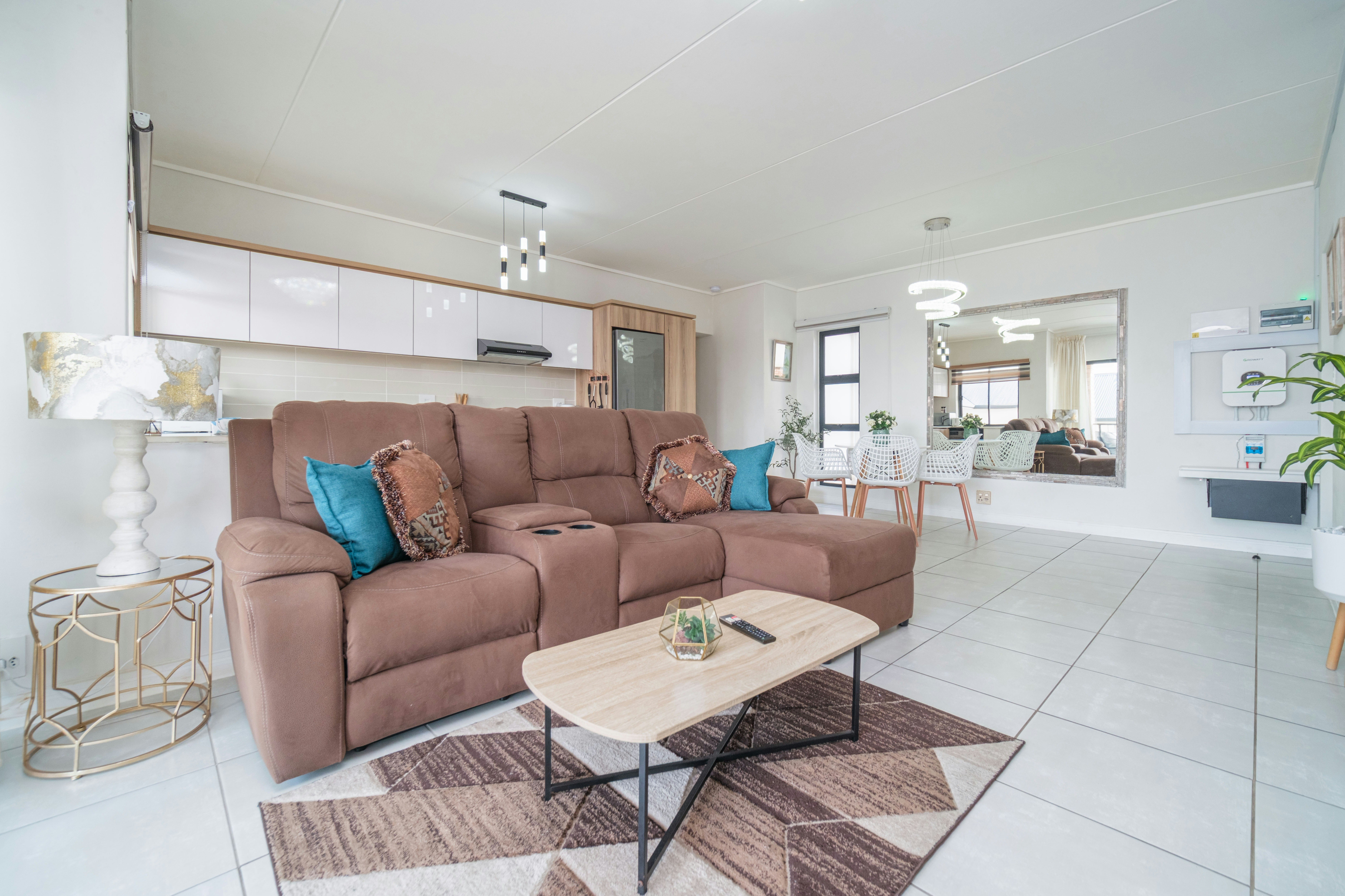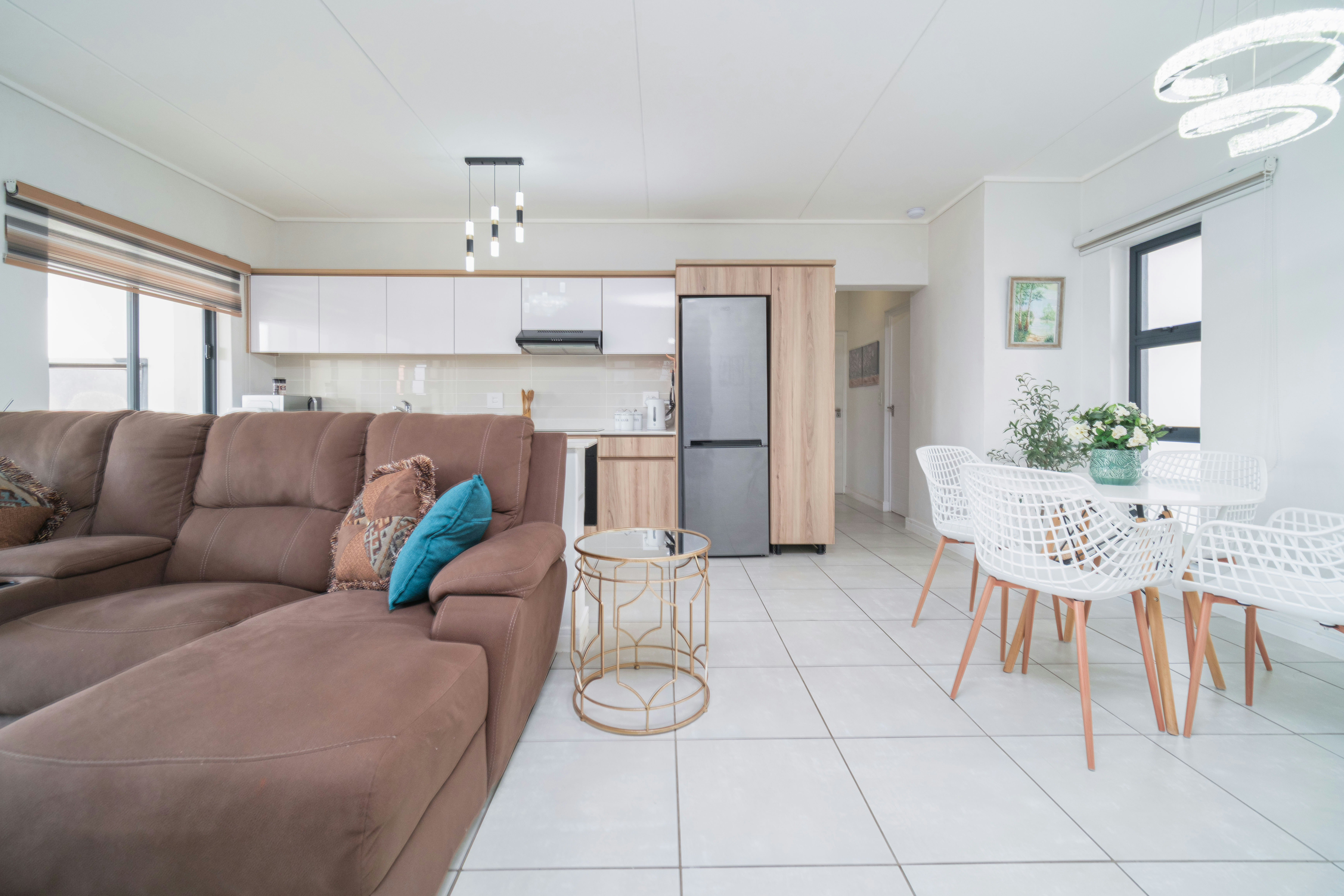 Die oopplan-leefarea beskik oor 'n eetarea en 'n sitkamer met 'n TV en 'n gemaklike rusbank. Die kombuis is volledig toegerus met 'n yskas-vrieskas, stoof, oond, mikrogolfoond, skottelgoedwasser en wasmasjien. WiFi is beskikbaar, en gaste het toegang tot hul eie privaat balkon met 'n Weber-braai.