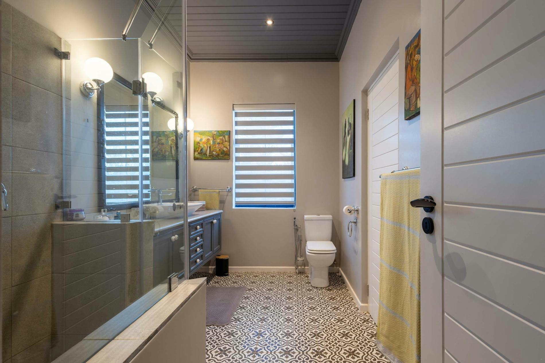 The house comprises 3 bedrooms, the main room is furnished with an extra-length king-size bed with an en-suite bathroom fitted with a shower, bath, toilet, and basin. The second and third bedrooms are each furnished with a queen-size bed, with 2 separate bathrooms fitted with a shower, toilet, and basin.