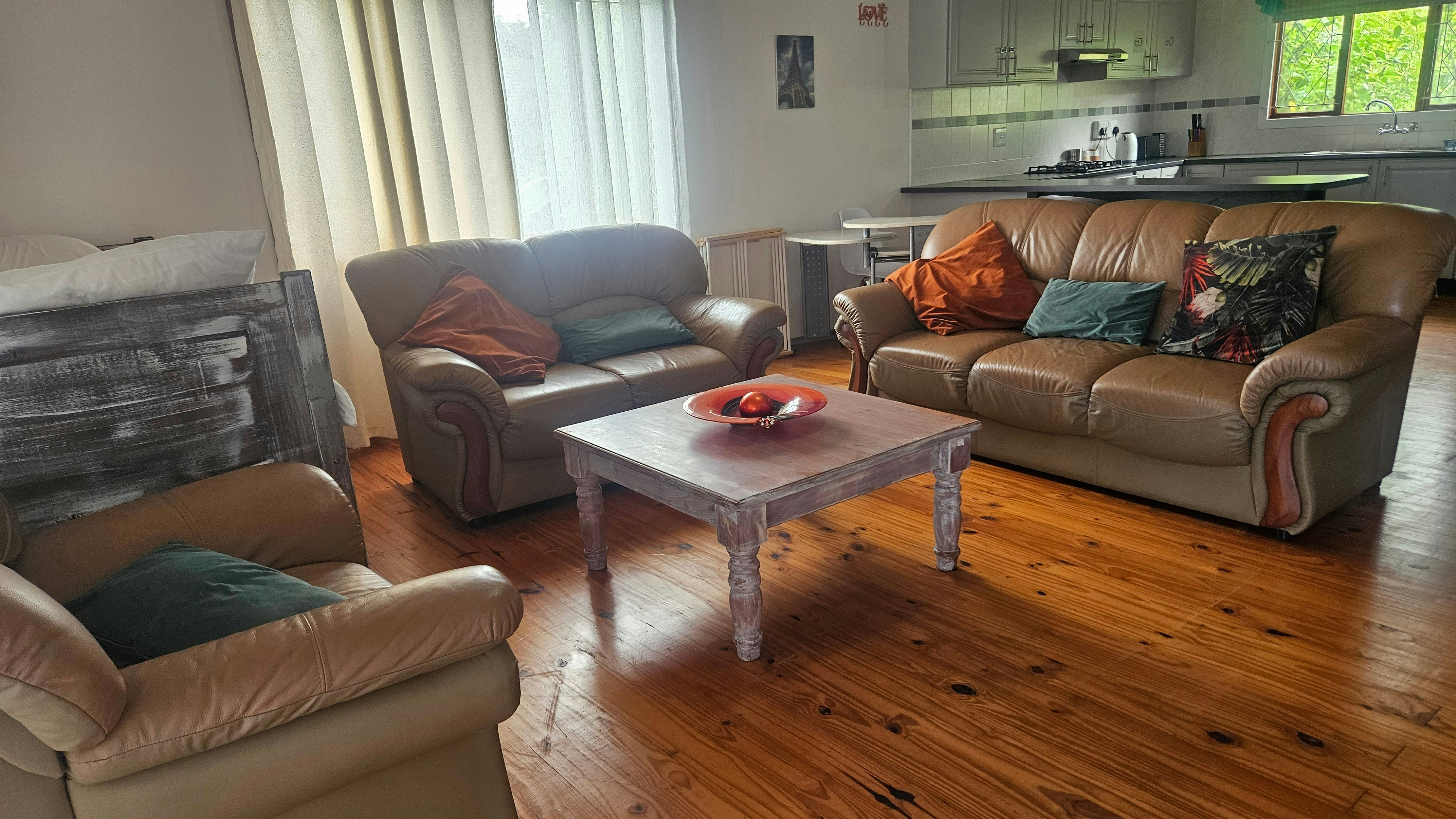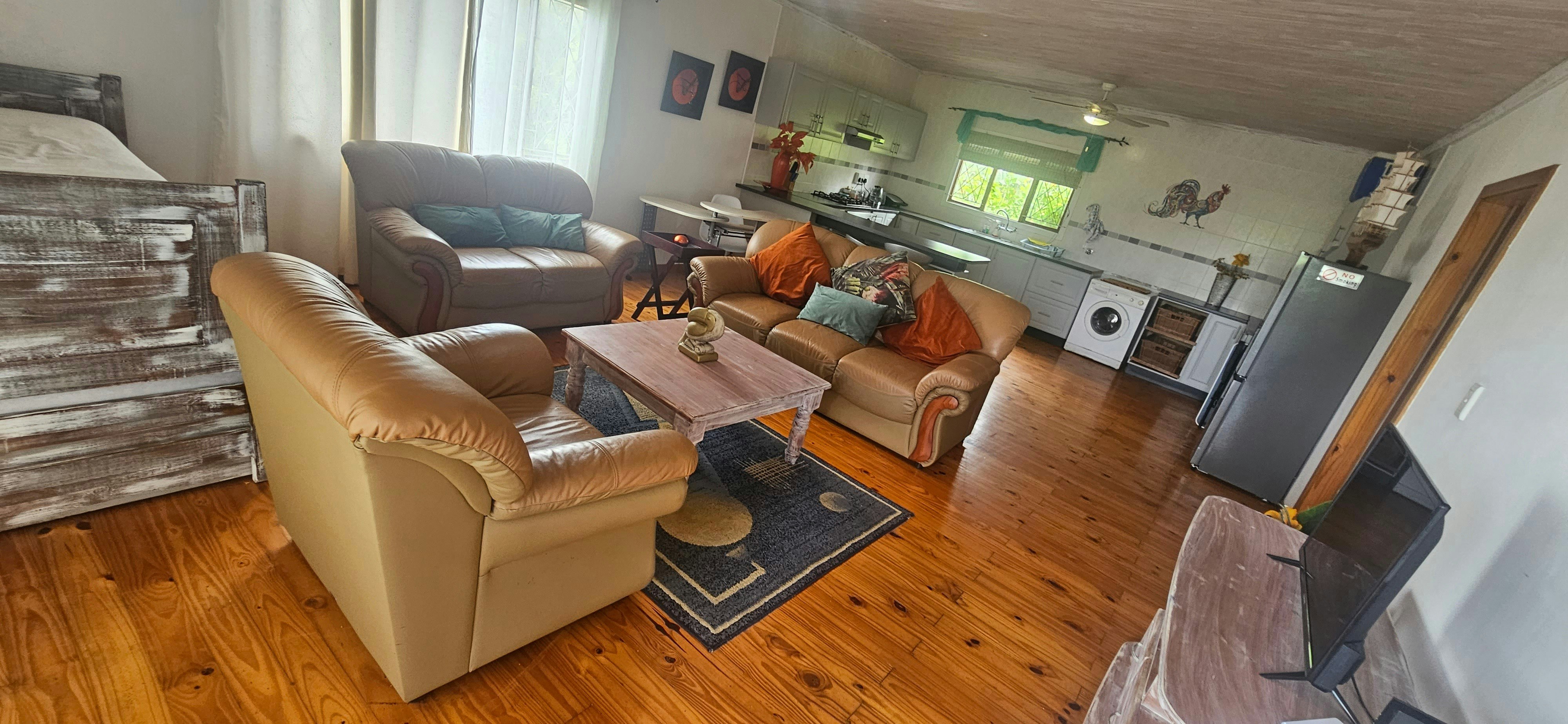 For larger groups, the downstairs cottage with its own kitchenette and en-suite shower allows everyone to gather for a braai or enjoy a peek of the ocean together. Reconnect with nature, unwind as a family, and experience the best of Ramsgate in comfort and style.