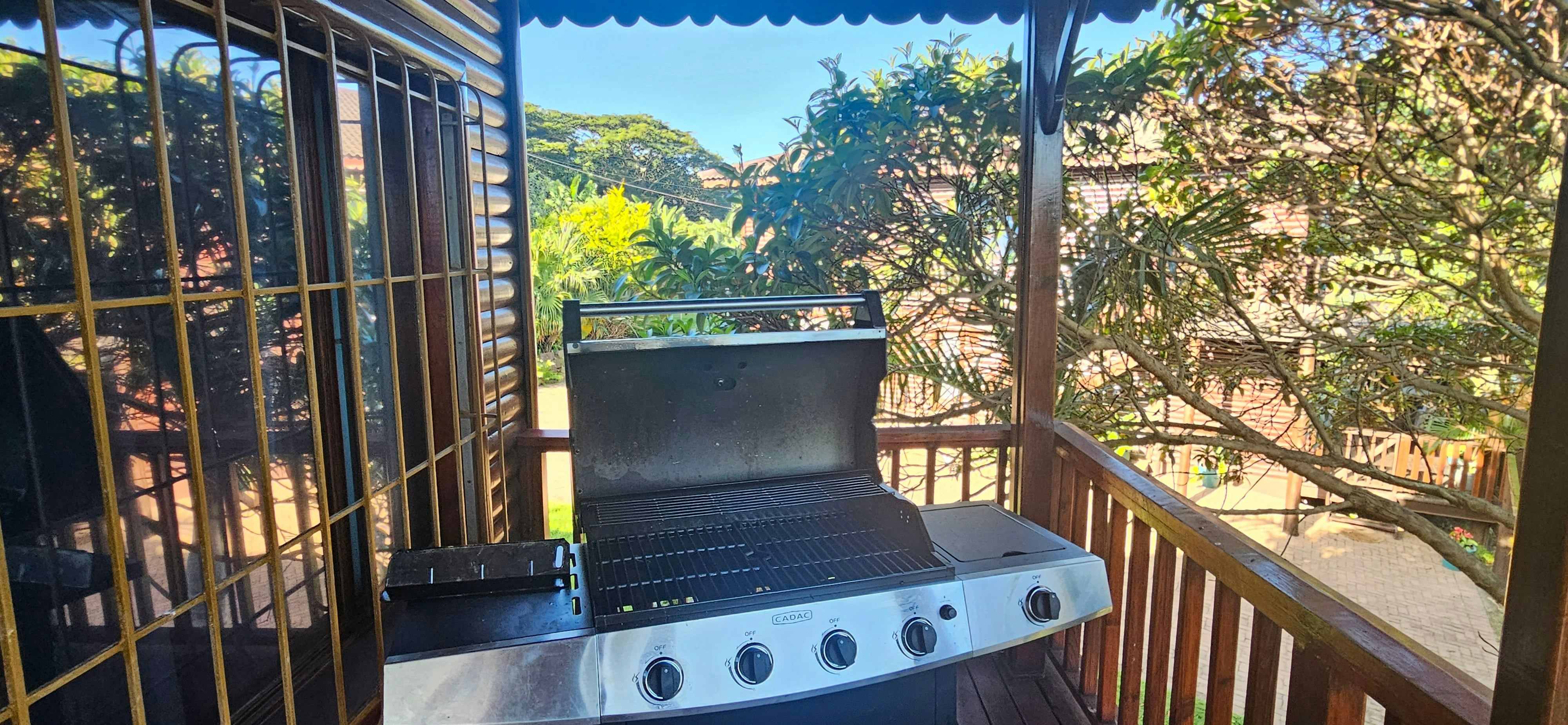 The townhouse features 2 spacious bedrooms and 1 bathroom with a bath/shower, comfortably accommodating 4 guests. Modern comforts like a gas stove, gas braai, and a JoJo tank ensure your stay is convenient, even during local water shortages. Refills and deliveries are easy, giving you peace of mind.