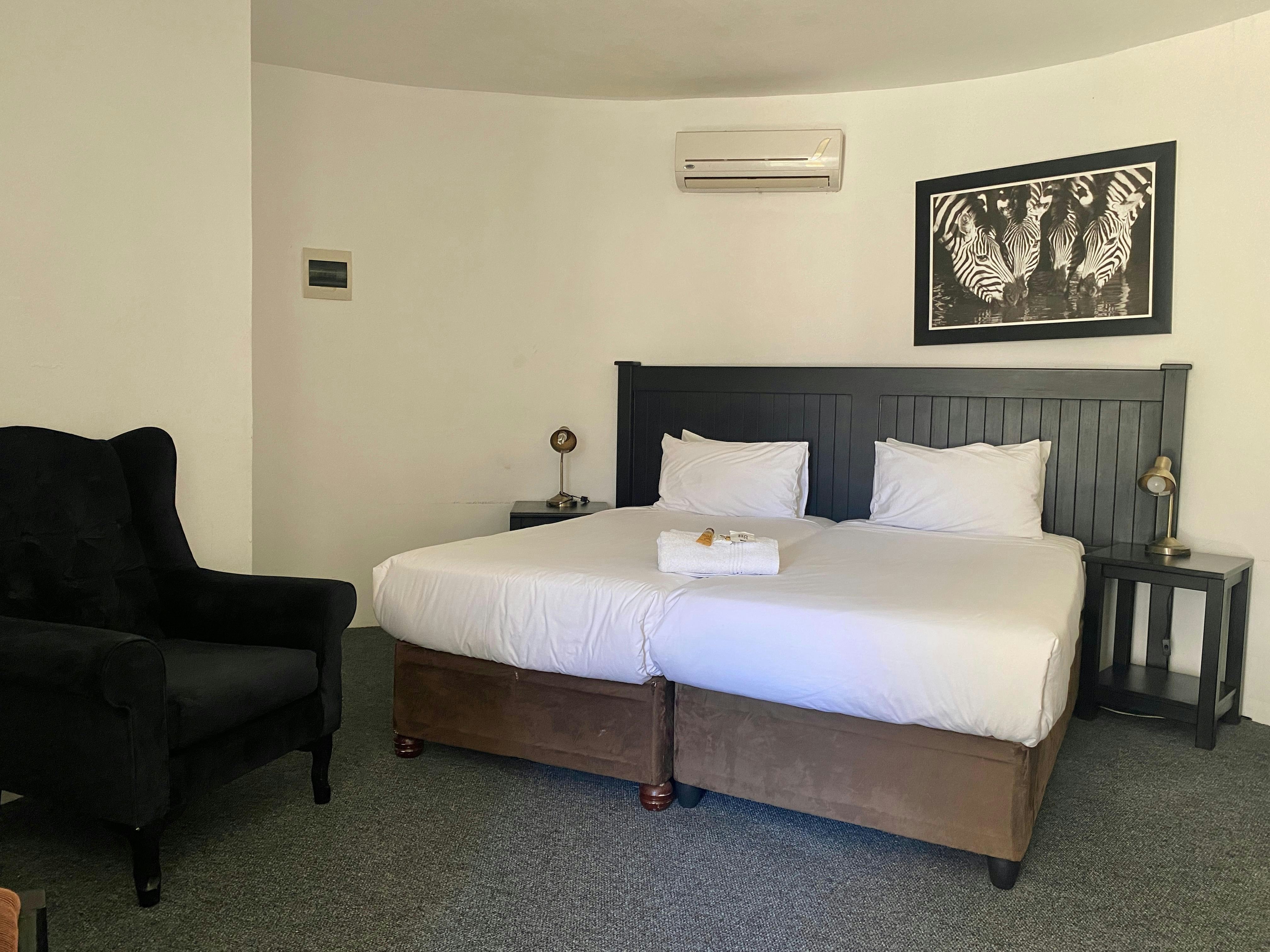 No matter where you decide to lay your head at night, Battlefields Country Lodge guests all enjoy the Lodges magnificent views, rolling lawns, tranquil dams and browsing wildlife. The diversity of accommodation means that guests are able to choose where they stay according to their individual needs and budget. All rooms are equipped with a shower or bath, air conditioner, coffee/tea station and DStv (TV channels: SABC 1, 2, 3, e-TV, M-Net and Supersport).