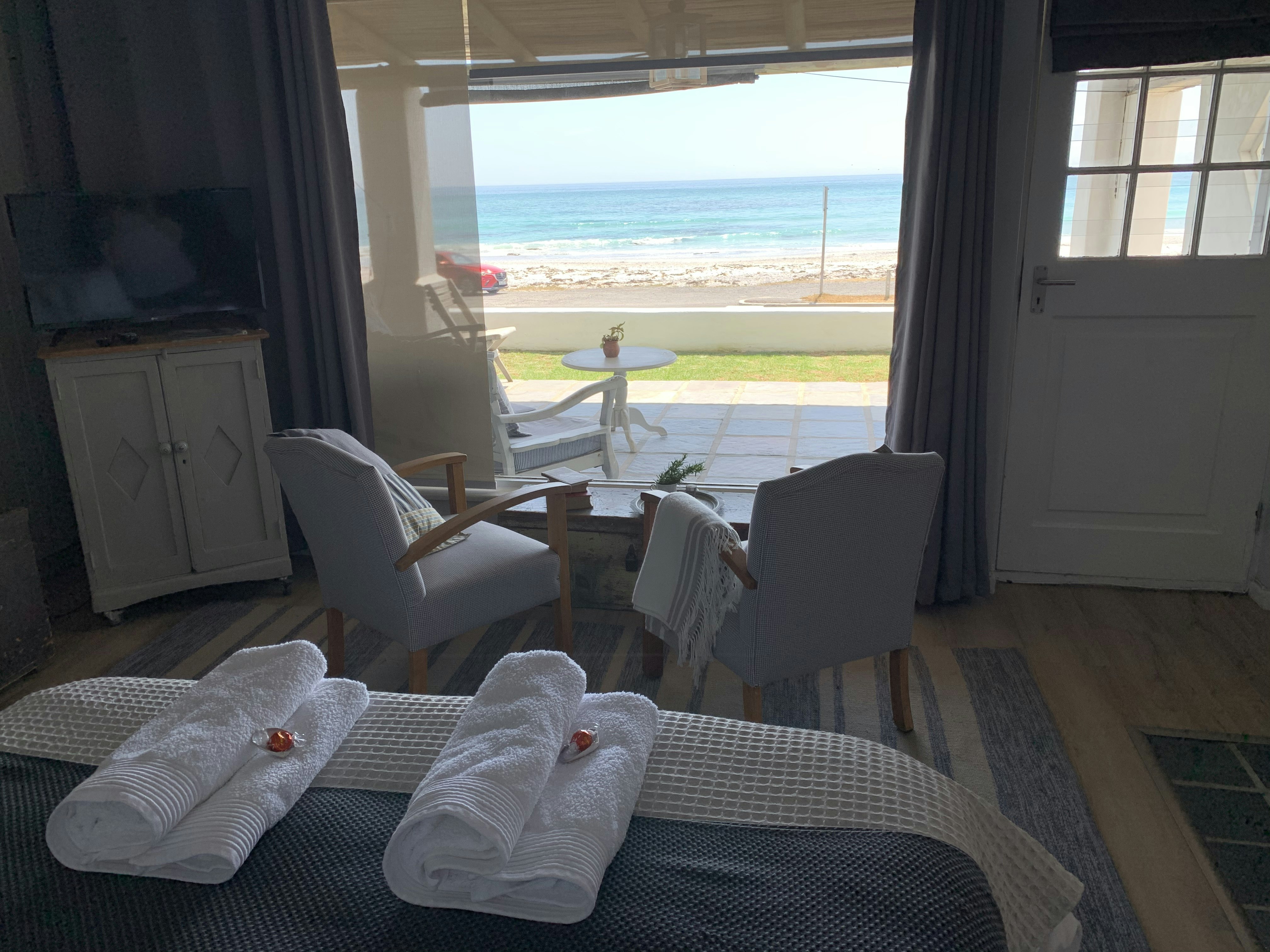 Dreamy Beach Room is a luxurious beachfront room with its own patio, private entrance and fantastic sea view. It features a queen-size bed, fireplace, and a full bathroom fitted with a shower and a bath. Egyptian linen and towels are provided. Amenities include a TV with DStv channels, free Wi-Fi Internet access, a desk, and a kitchenette equipped with a fridge, microwave, and kettle as well as cutlery and crockery. A portable braai can be provided, and the parking is public across the street, in front of the room. The Wi-Fi, TV and 1 light work during loadshedding.