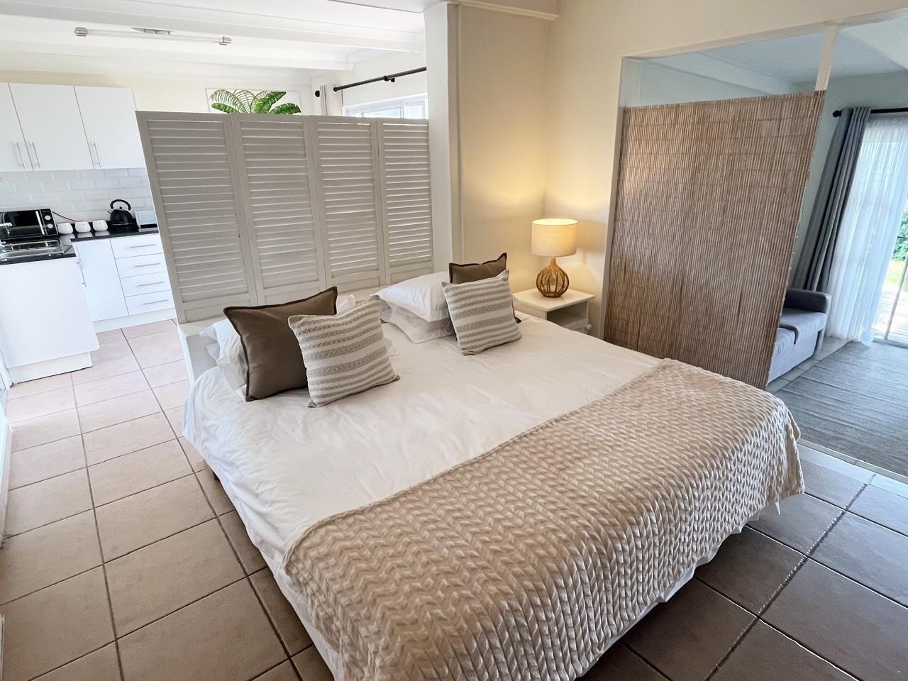 The 3 cottages are designed for comfort and convenience, each featuring an open-plan layout with a private patio. The kitchenettes are fully equipped, and toiletries, fresh linen, towels, and daily essentials are provided. Guests need only bring their beach towels for an ideal seaside escape.