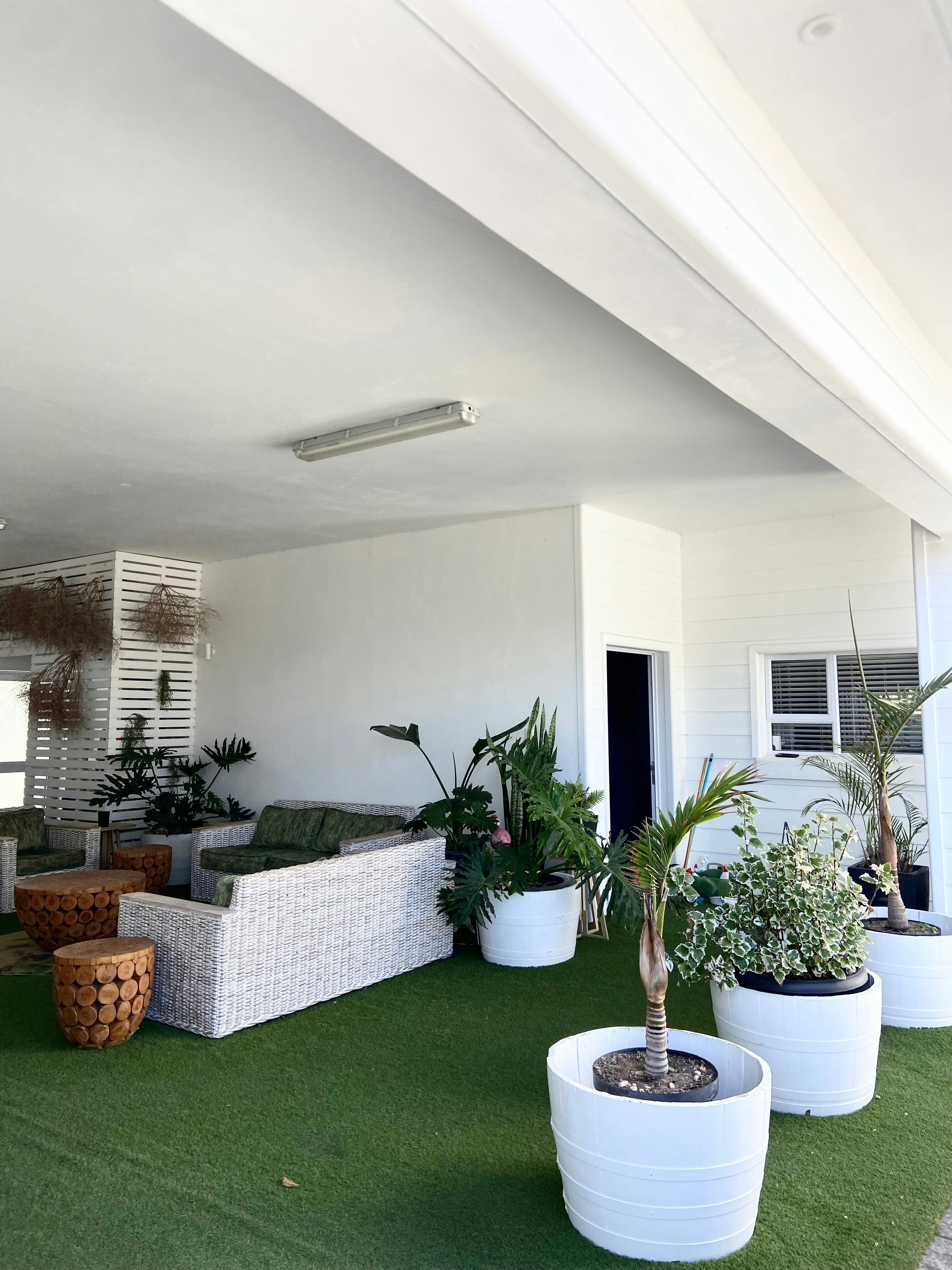 Additionally, there is an indoor braai area with comfy seating. On hotter days, there is a lovely boma area with braai facilities and an umbrella. Please note that this house has no sea view as it is hidden behind a dune. The location of this home is also close to lovely hiking trails, shops and restaurants.