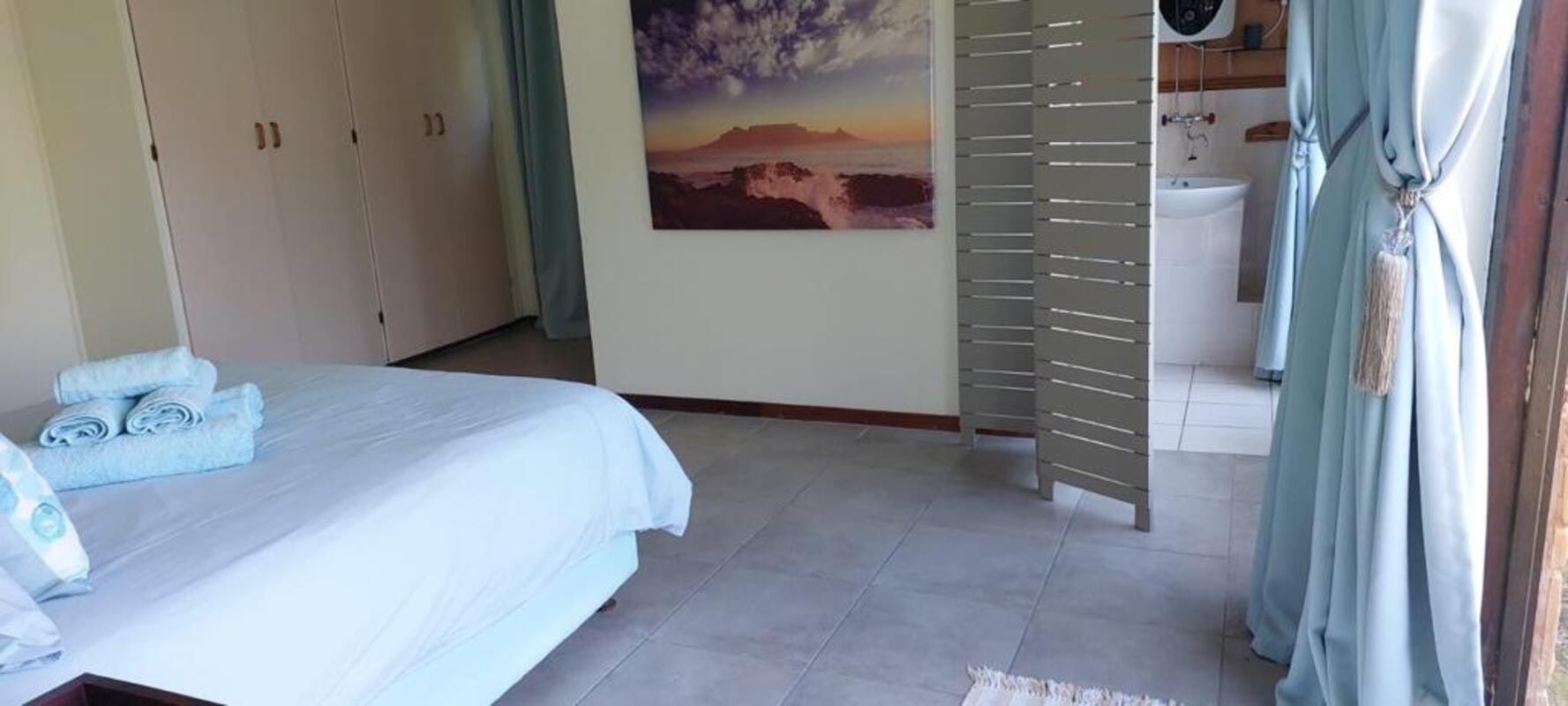 This house can accommodate up to 8 guests in 4 bedrooms and 3 bathrooms. The first, second and third bedrooms are all furnished with queen-size beds. The first and third bedrooms have en-suite bathrooms that are fitted with a shower, washbasin and toilet. The fourth bedroom is located outside and is furnished with a sleeper couch and has an en-suite bathroom fitted with a toilet and washbasin and there is a separate shower. There is a shared bathroom that is fitted with a bath, shower, washbasin and toilet.