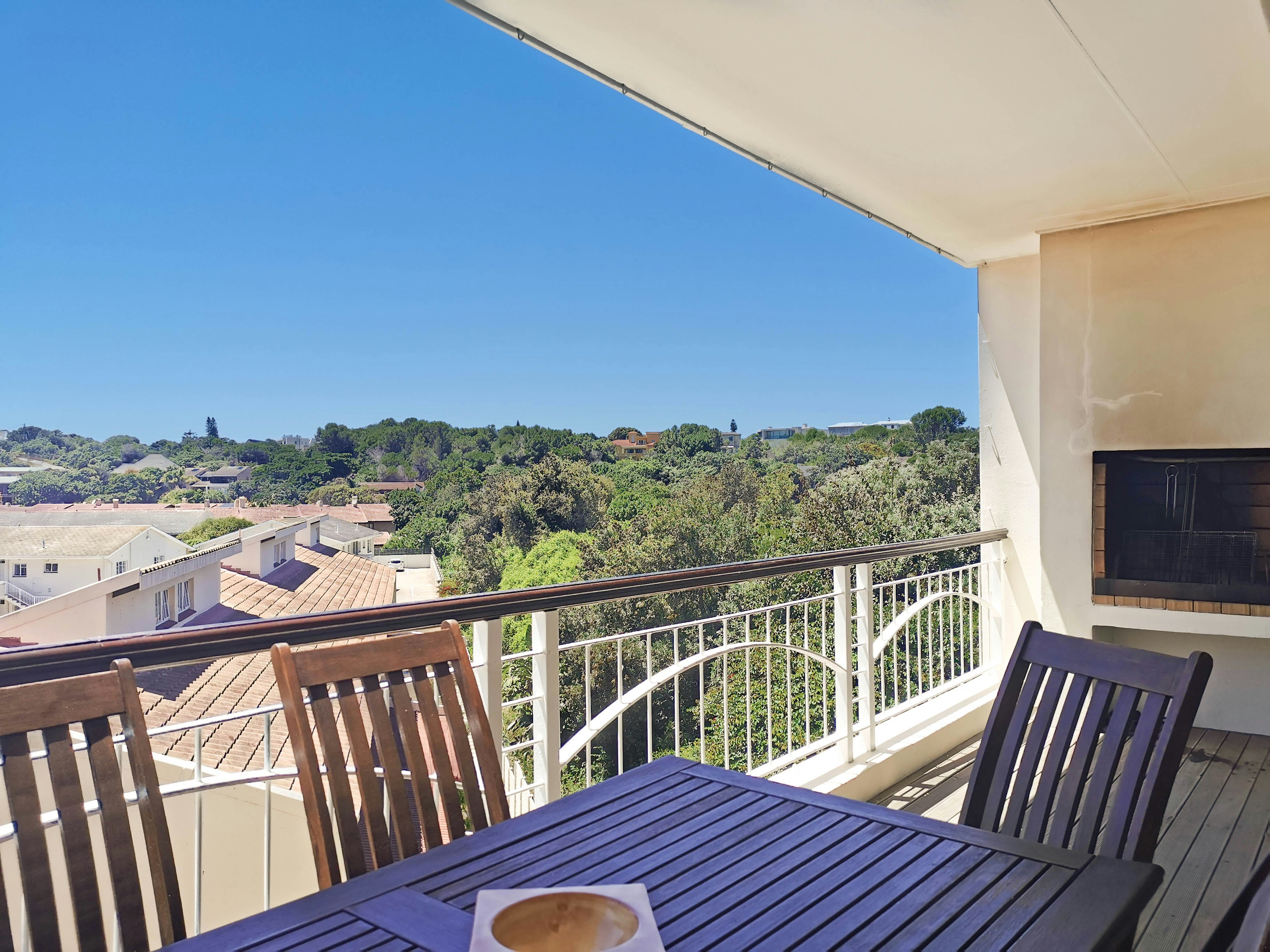 Guests have access to a balcony with outdoor dining furniture, a free-standing braai and a built-in braai. Enjoy a partial view of the distant sea. Access to parking in the communal garage is available.