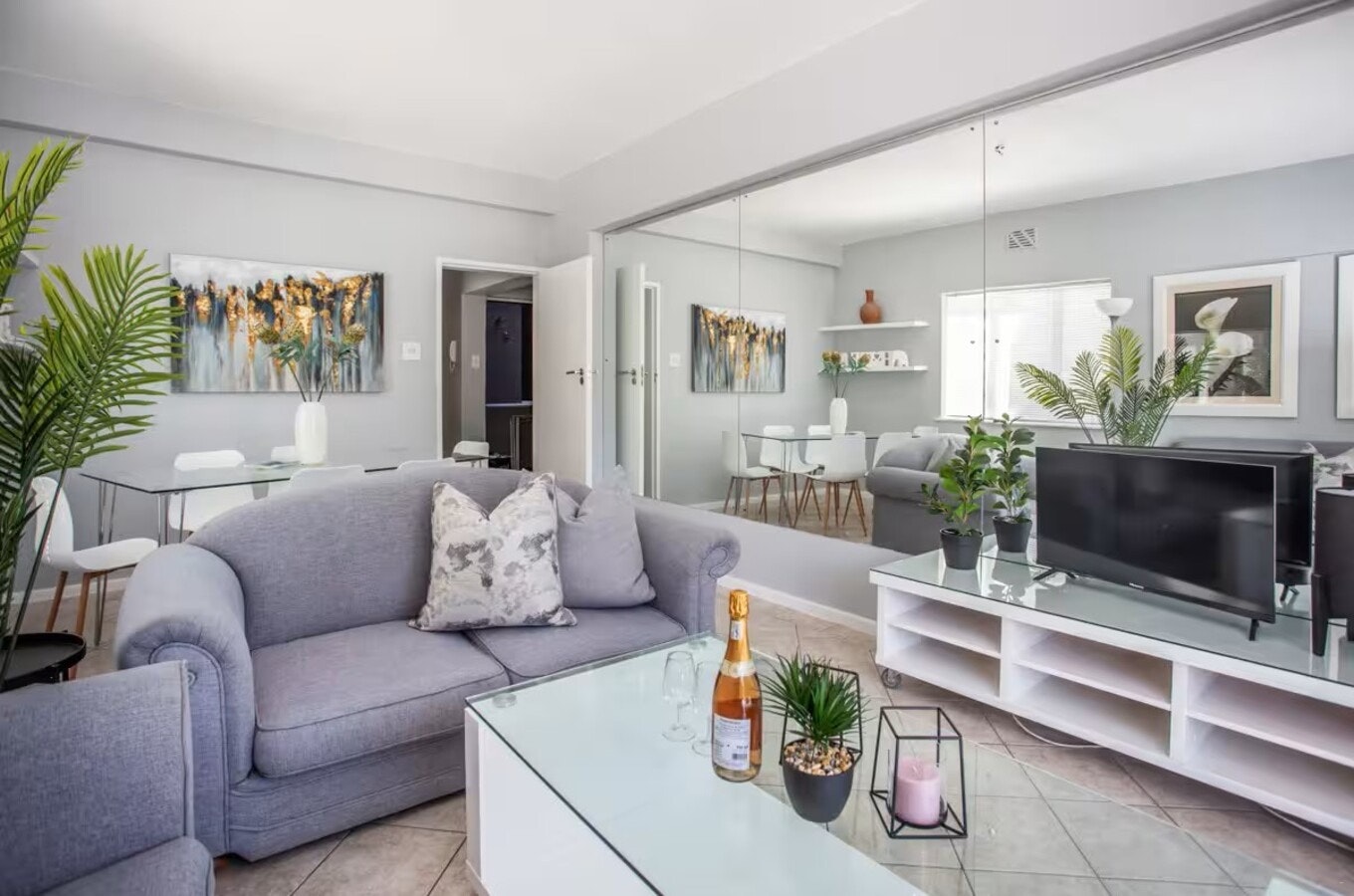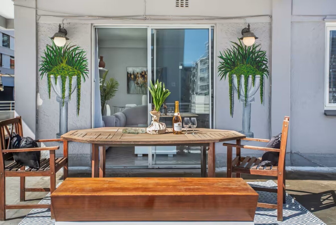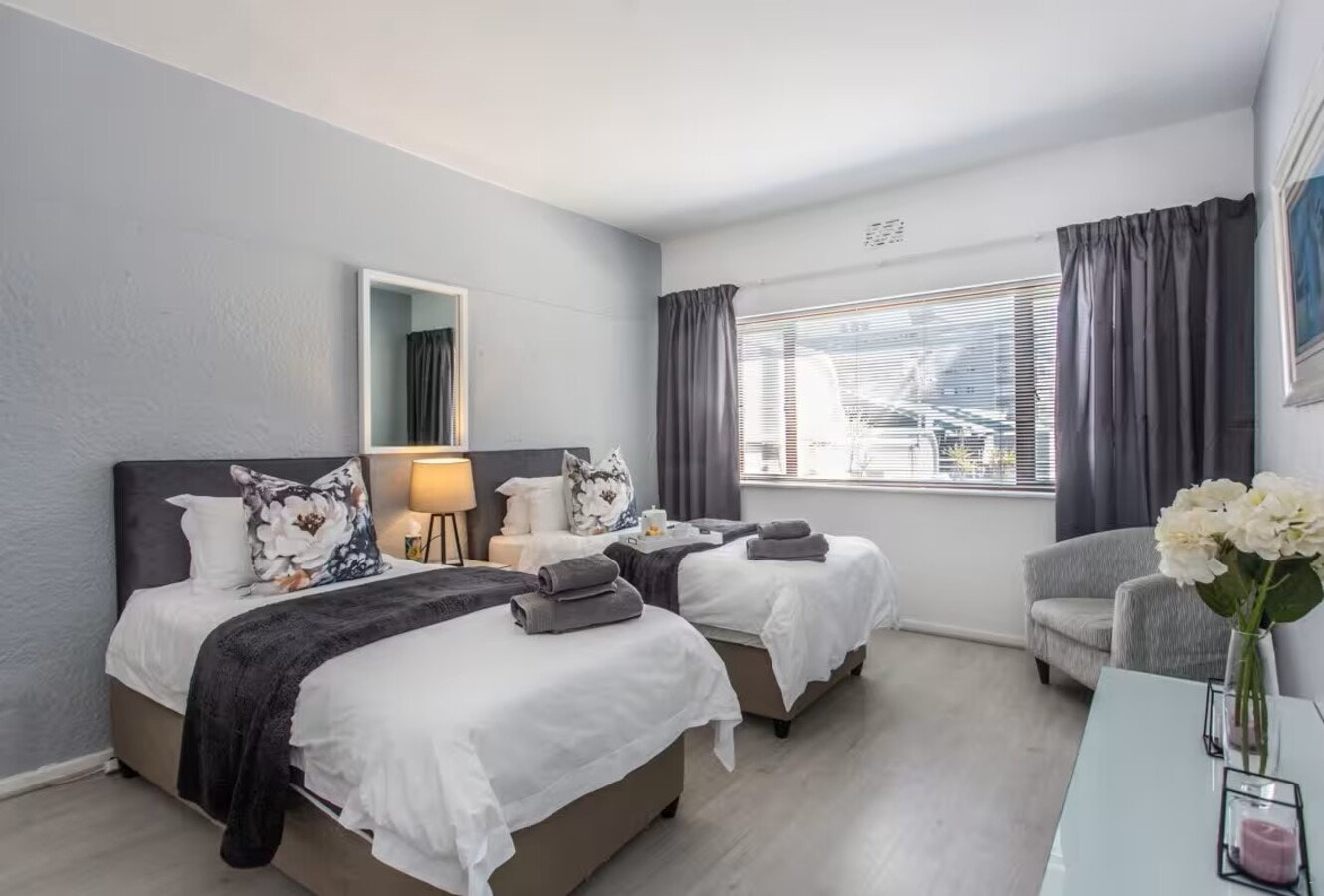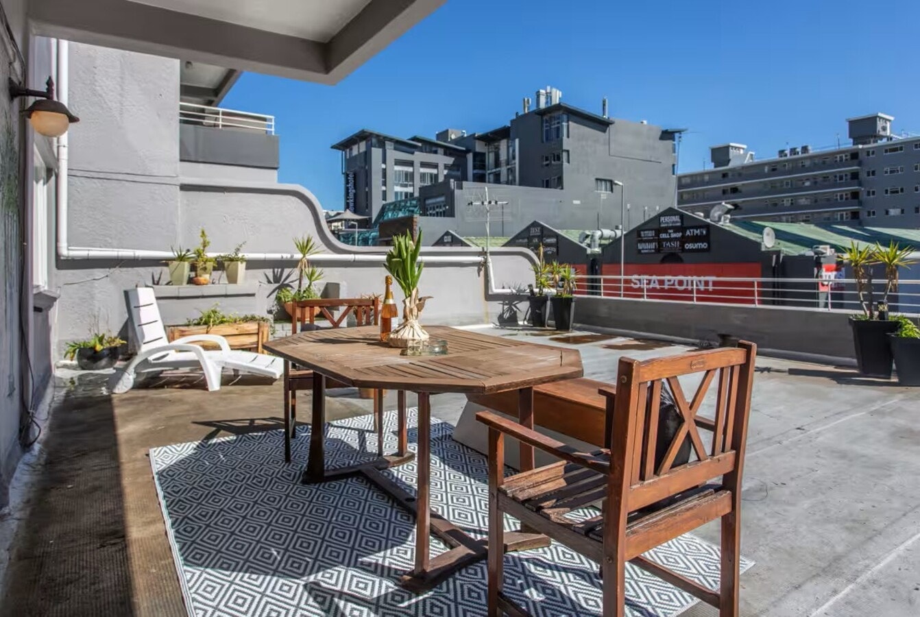 Gaste kan buite op die patio eet en toegang hê tot gratis WiFi en veilige parkering. Die woonstel is gerieflik geleë naby strande, die Seepunt-promenade, winkels en restaurante.