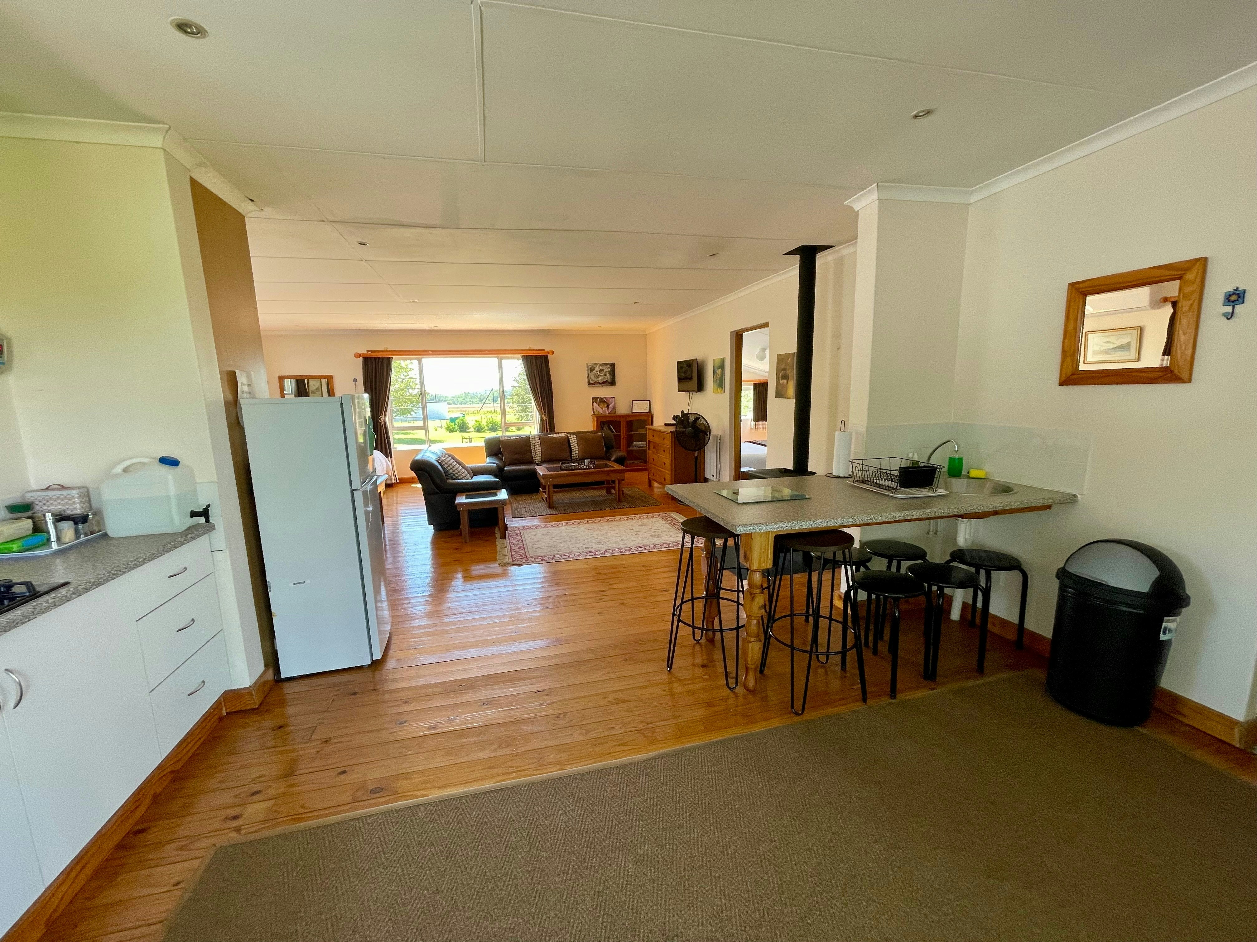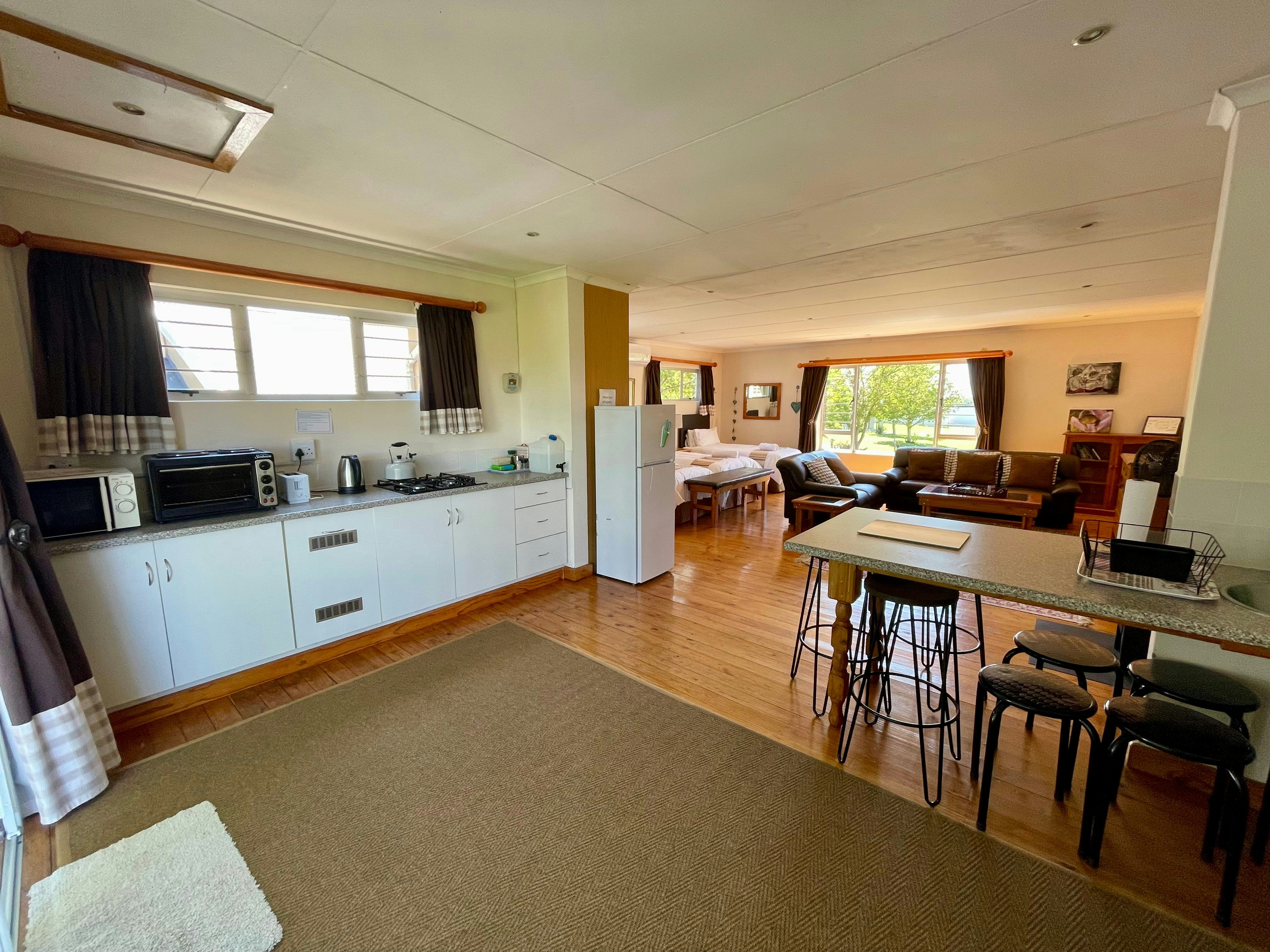 Die leefarea beskik oor 'n kombuis wat met 'n tweeplaatstoof, oondjie, mikrogolf, yskas-vrieskas, eetgerei, breekware en 'n toonbank met stoeltjies toegerus is. Die sitarea het gemaklike sitplek en 'n platskerm-TV met DStv. Gratis WiFi is beskikbaar.