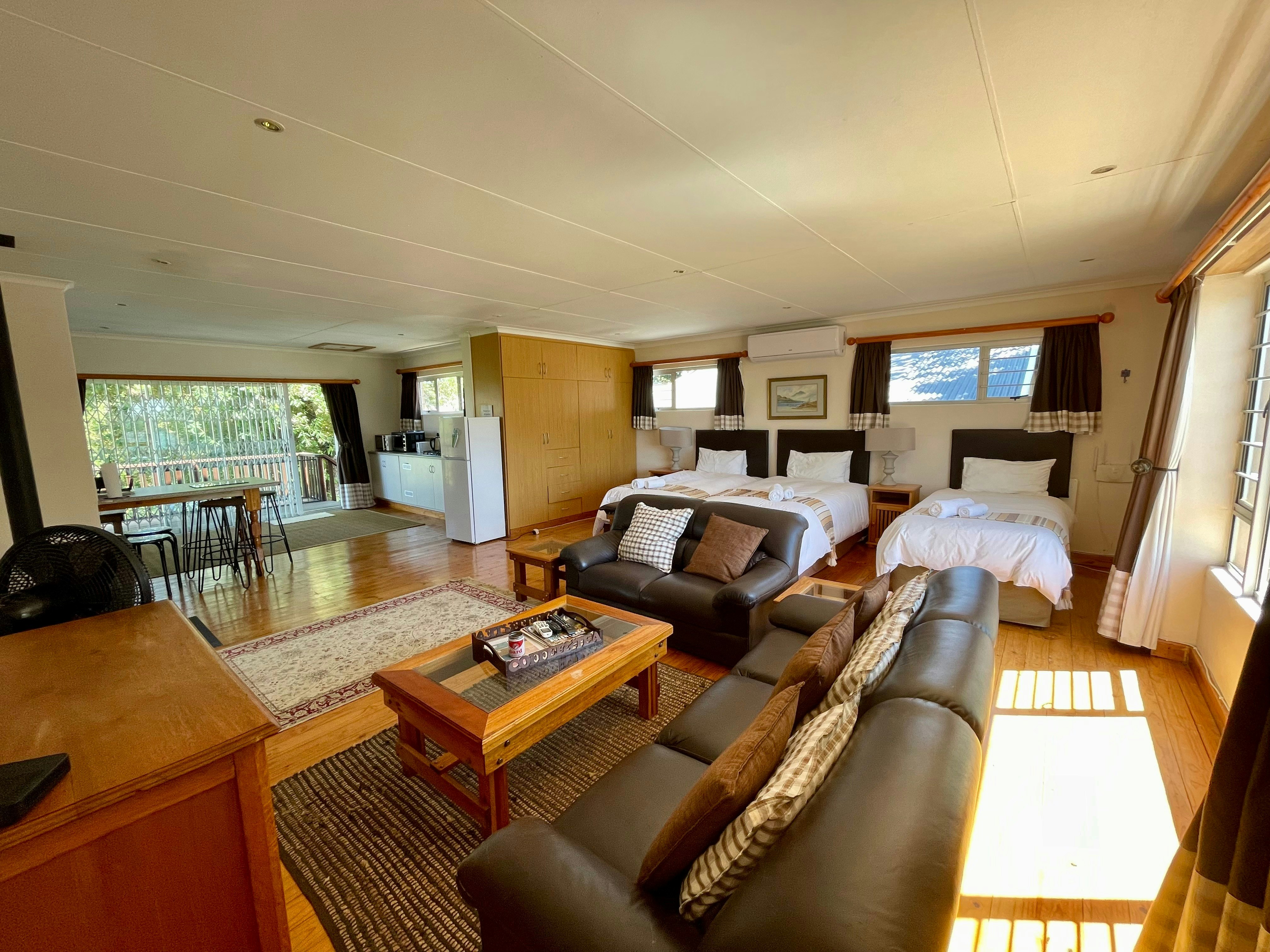Houttrappe lei na die kothuis wat op sy beurt lei na 'n houtdek met 'n pragtige uitsig oor die Drakensberge. Gedurende beurtkrag is daar 'n omsetter wat die ligte, TV en WiFi kan aandryf.
