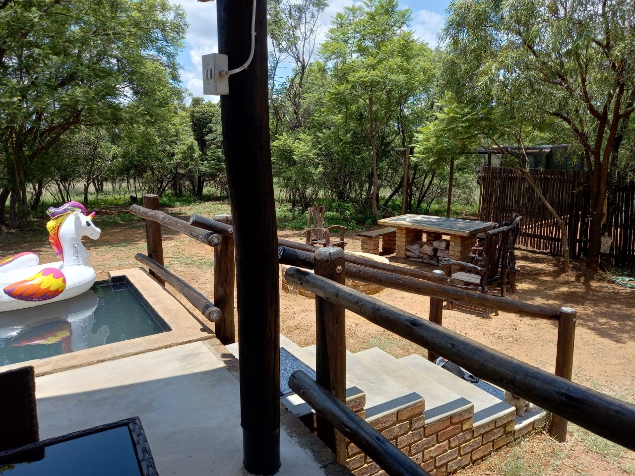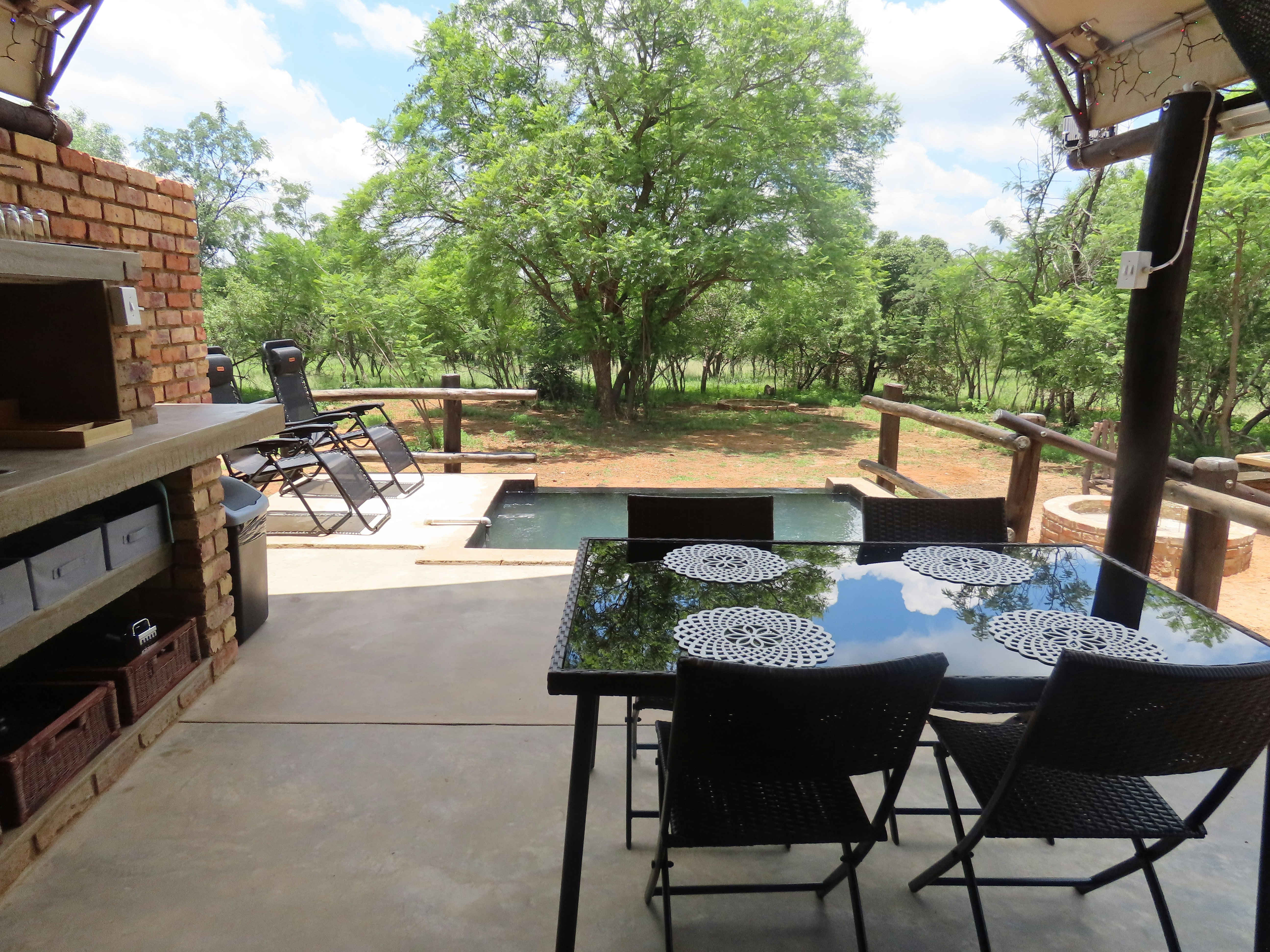Elke privaat tent het 'n privaat dek en sy eie swembadjie. Dit is perfek vir besoekers wat wil kosmaak in die buitelug. Kinders en troeteldiere word ongelukkig nie toegelaat nie. Wild loop vry rond in hierdie bosveld-omgewing en die voëllewe is volop. Beleef die vrede van die bosveld in hierdie afgesonderde toevlugsoord.