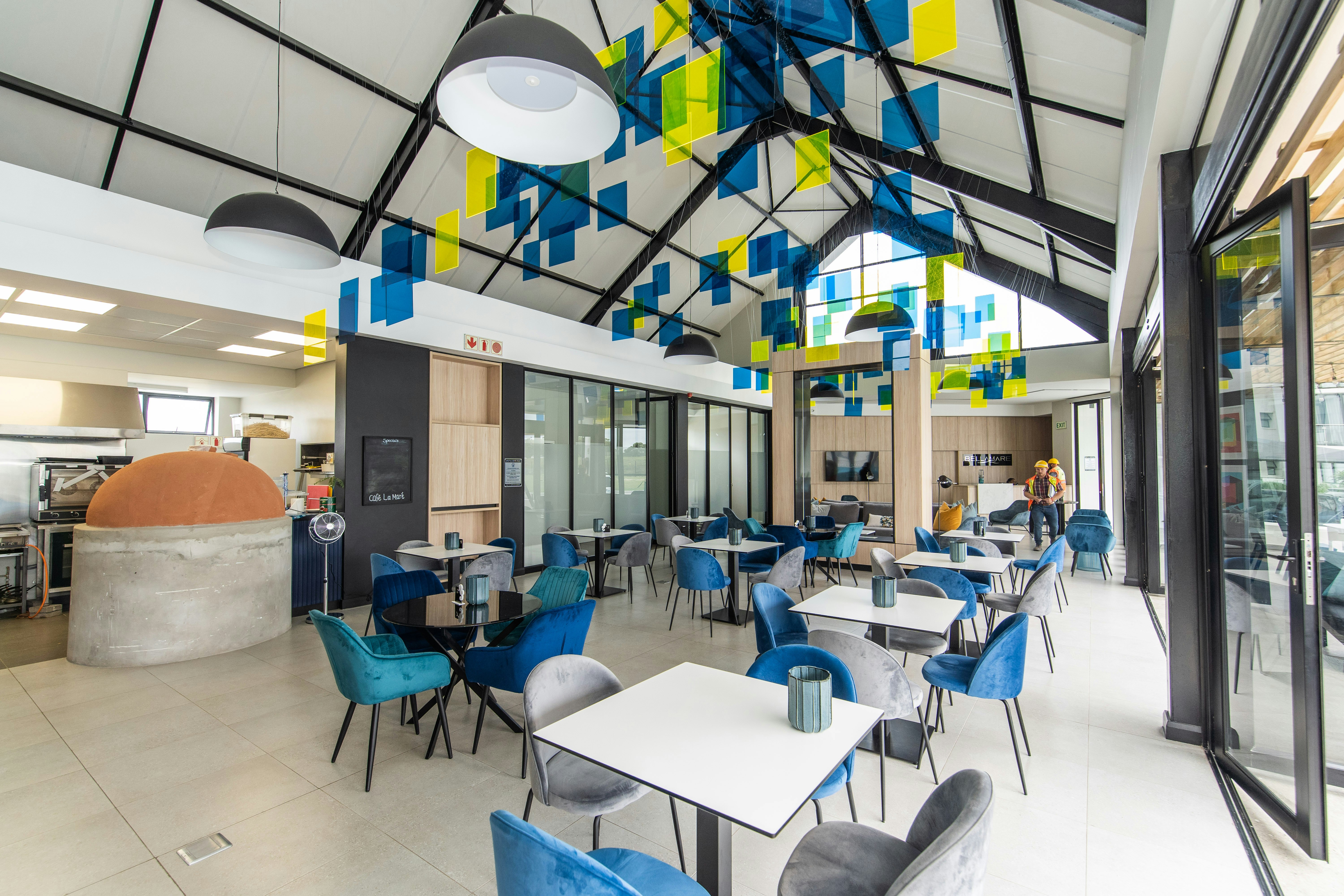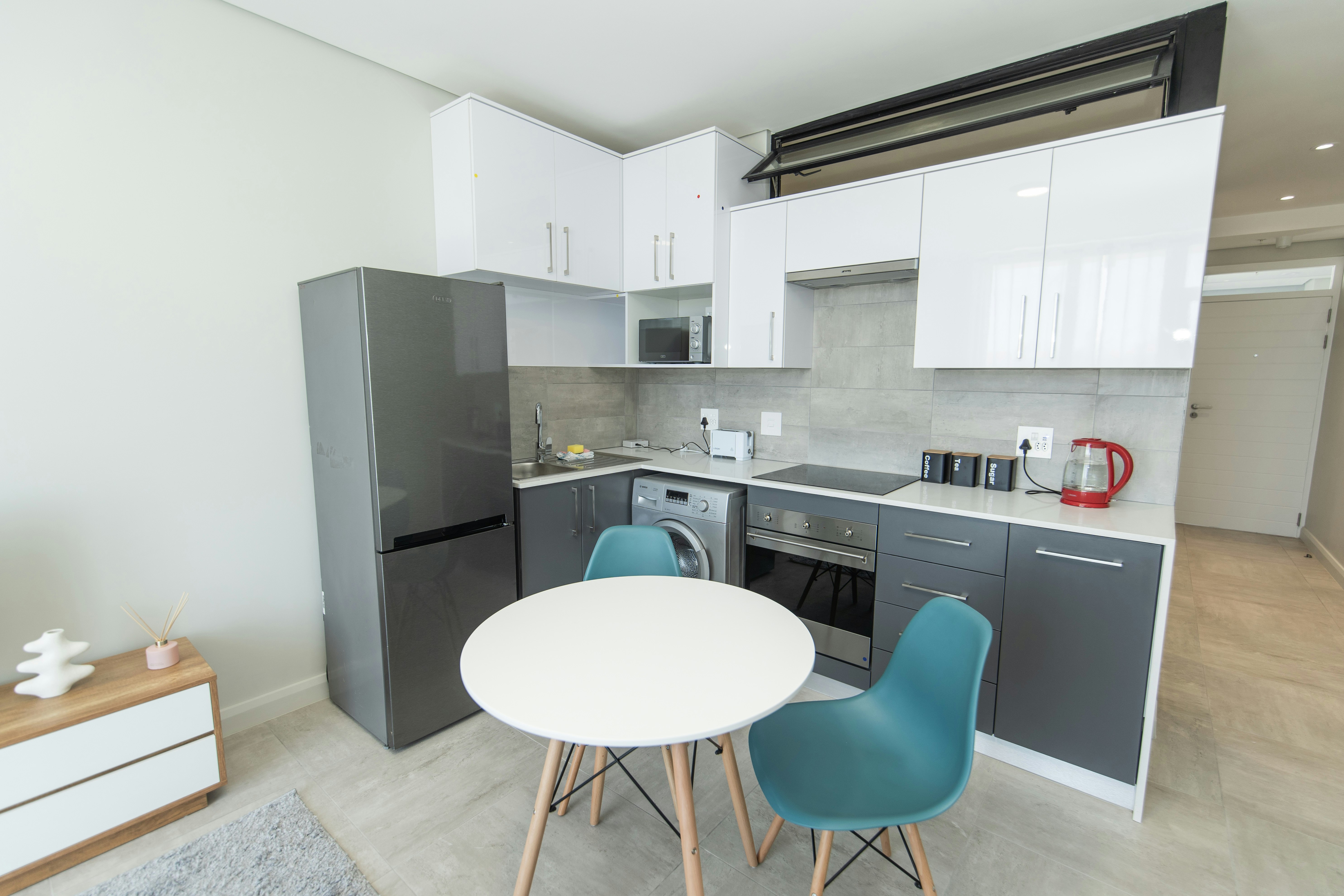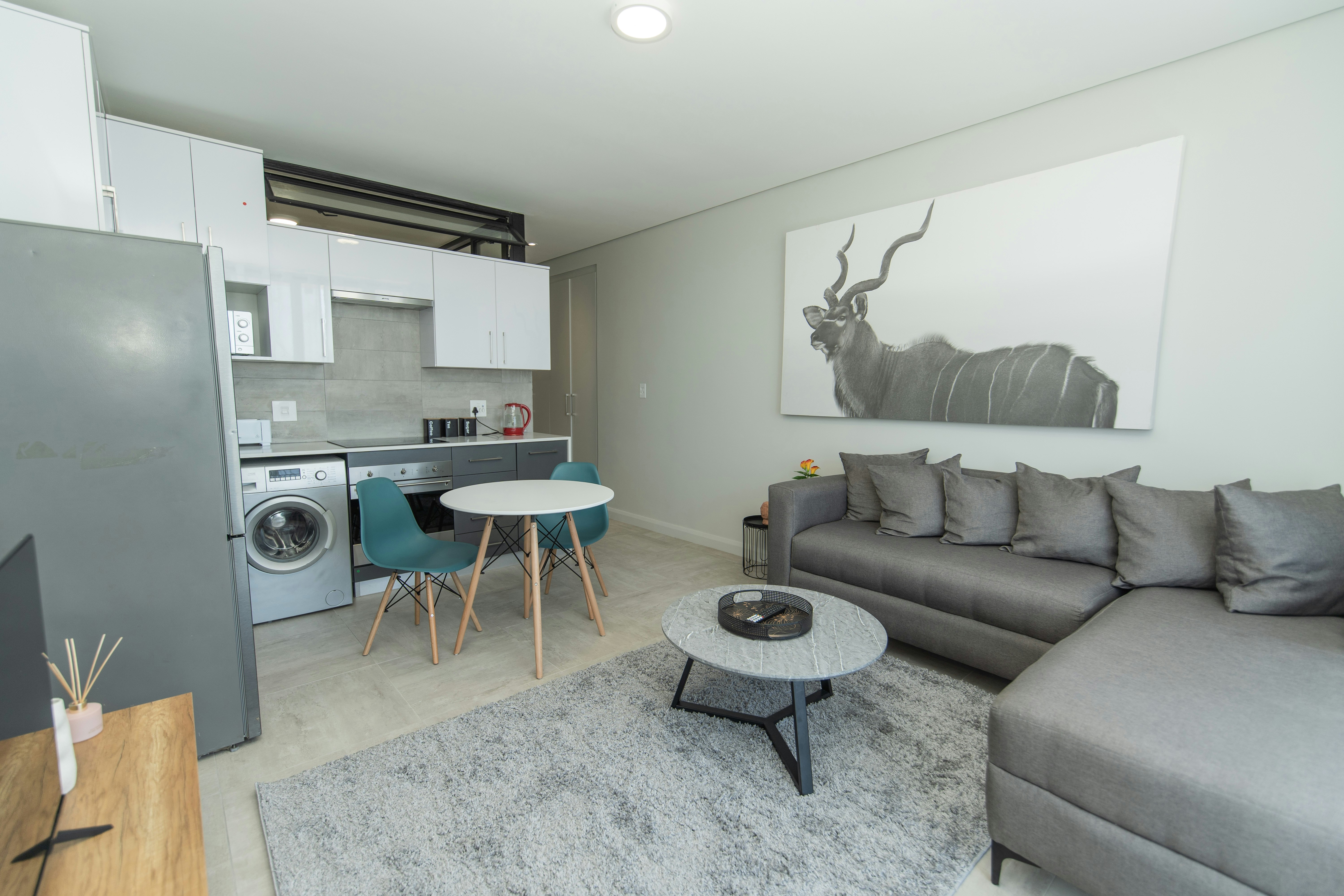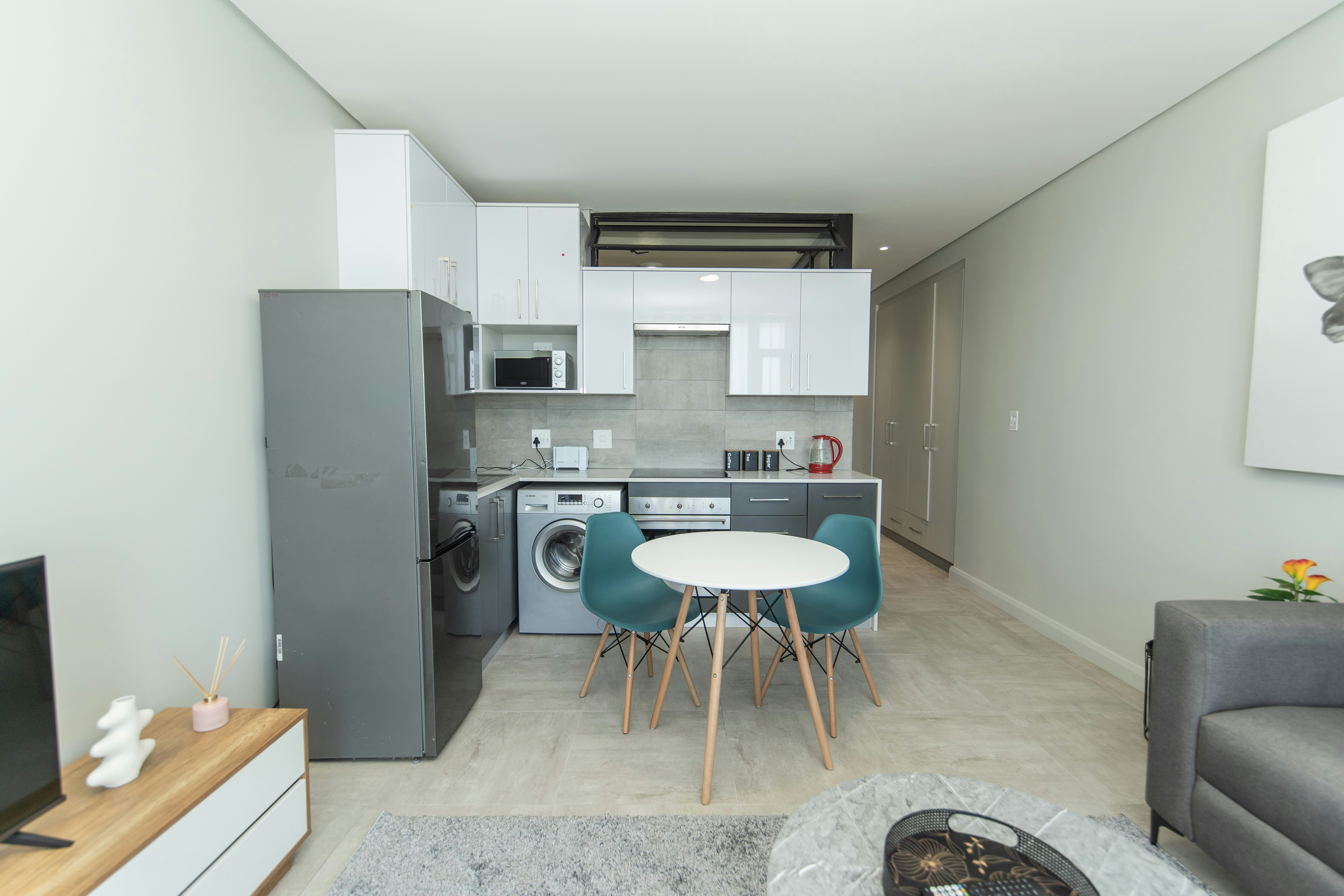 Die oopplan-leefarea beskik oor 'n kombuis wat volledig toegerus is met 'n stoof, oond, mikrogolfoond, yskas-vrieskas, eetgerei en breekware, asook tee- en koffiemaakgeriewe. 'n Wasmasjien is ook beskikbaar. Vanuit die kombuis is 'n eetkamertafel en 'n sitkamer met gemaklike sitplek en 'n TV vir vermaak. Toegang tot gratis WiFi is beskikbaar.