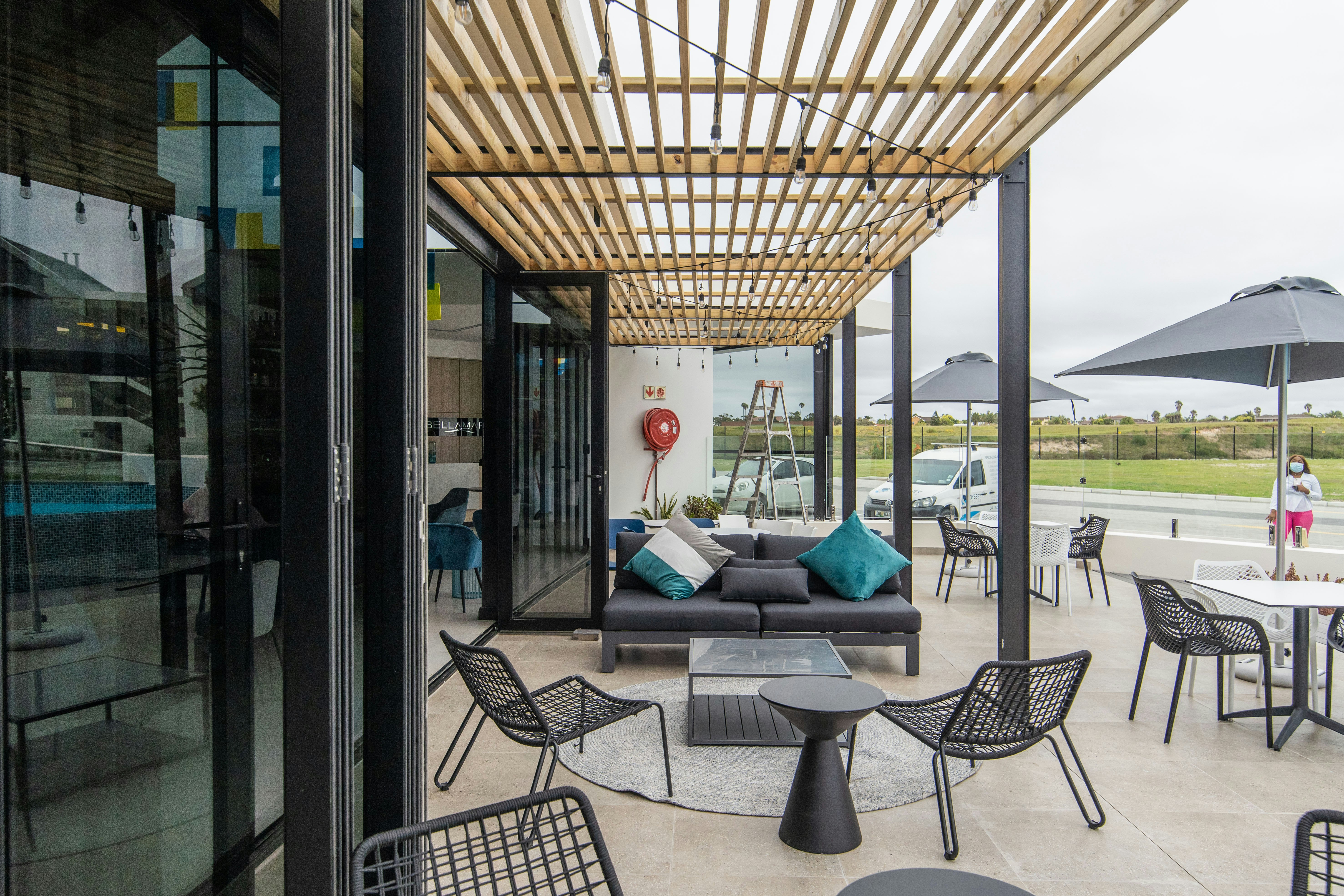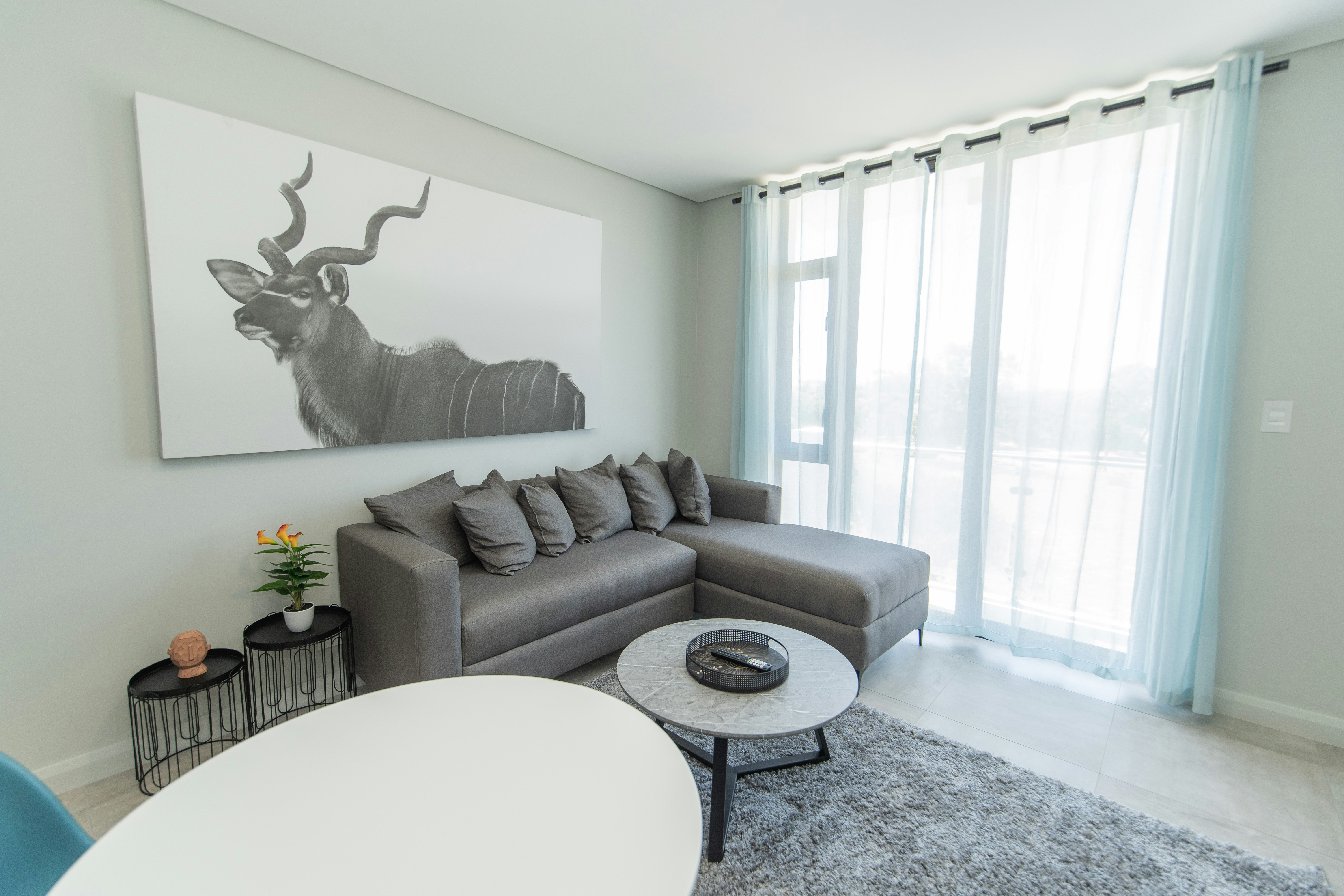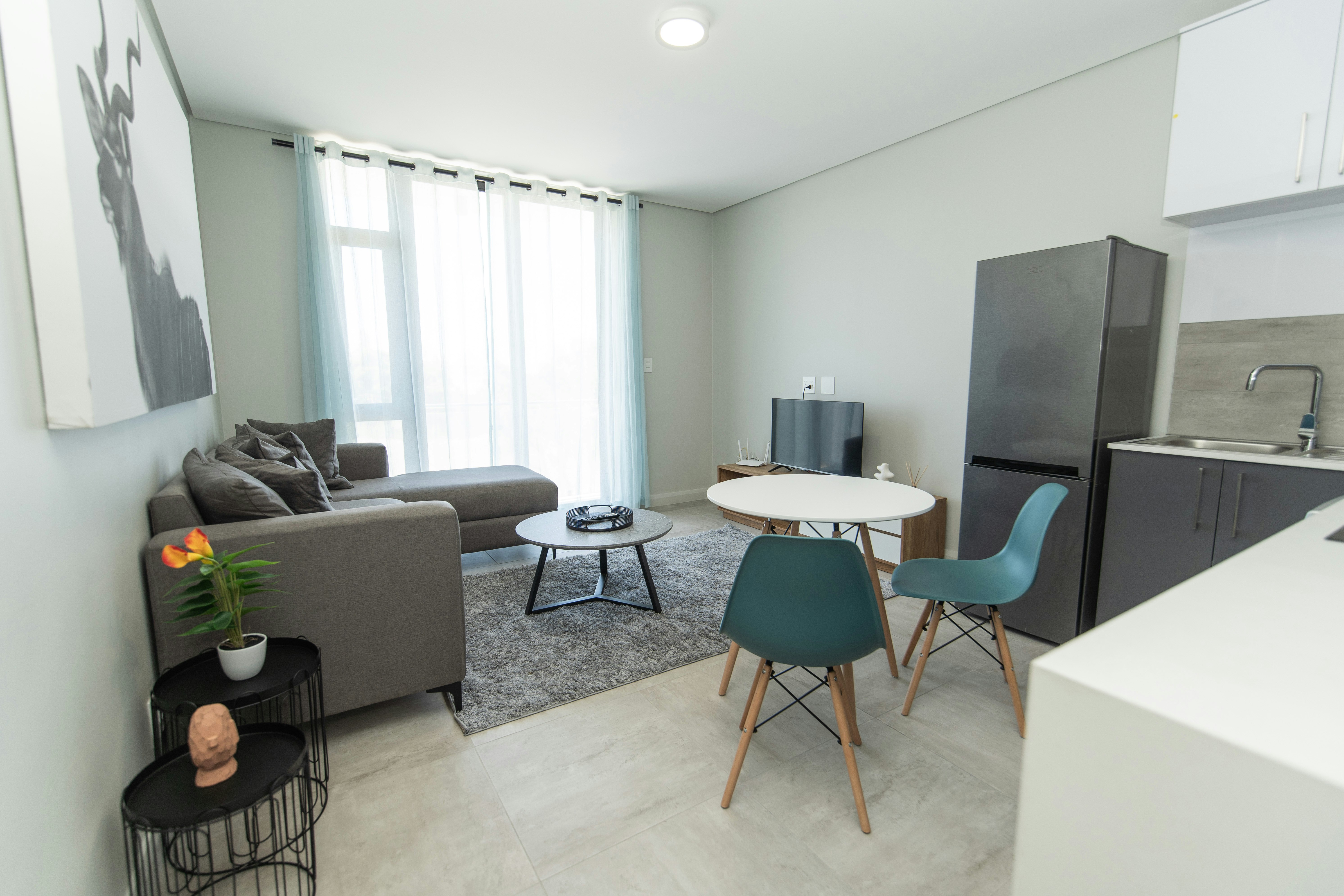 Deur die skuifdeure is 'n balkon met sitplek, en dit is 'n wonderlike plek vir 'n oggendkoffie. Die landgoed bied 'n gemeenskaplike swembad, 'n gimnasium, 'n restaurant met gratis aflewering binne die landgoed en privaat onderdakparkering.