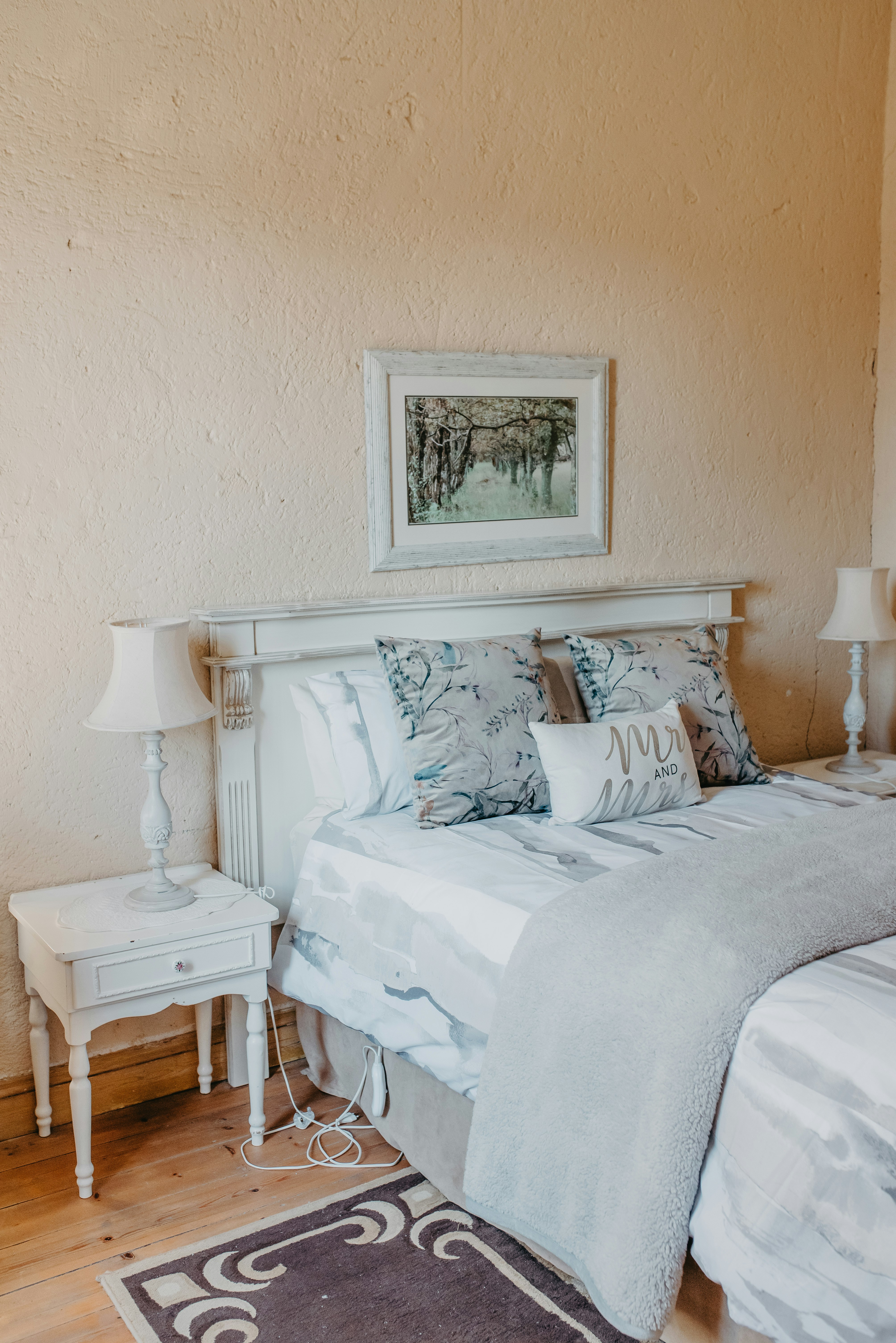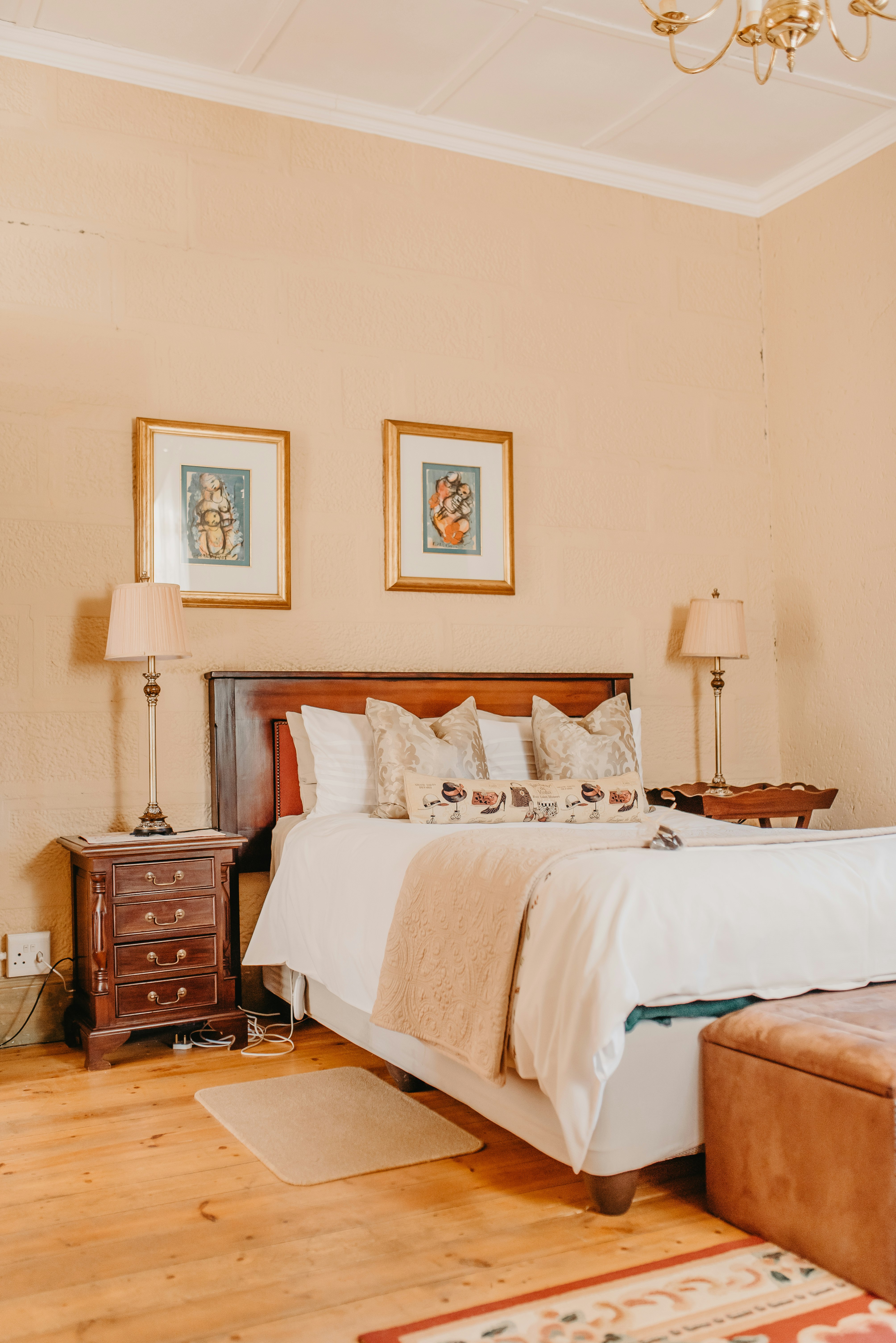 Accommodation is offered in 1 cottage, 1 main house, 8 guest rooms, and 1 honeymoon suite. The Cottage comprises 2 bedrooms, 1 bathroom, an open-plan kitchenette and living area, and braai facilities. The Main Guest House comprises 6 bedrooms, 3 bathrooms, an open-plan living area and kitchenette, and braai facilities. The guest rooms are furnished with either a queen- or a king-size bed, an en-suite bathroom with a shower, and tea- and coffee-making facilities. The Honeymoon Suite is equipped with a bar fridge, microwave, and tea- and coffee-making facilities.