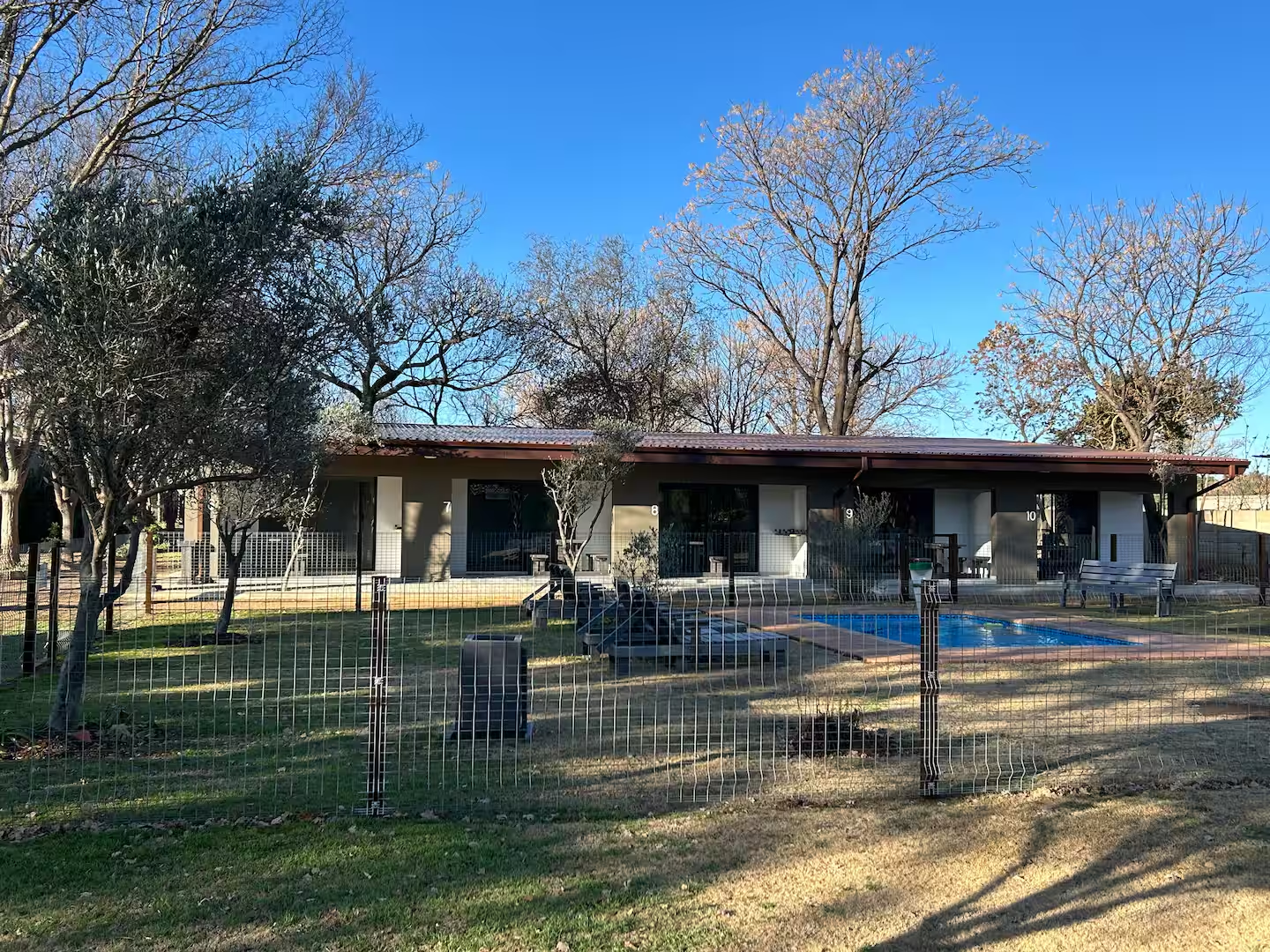 The property offers a communal swimming pool and braai facilities. The braai area has ample seating space and picnic tables where guests can enjoy alfresco meals.