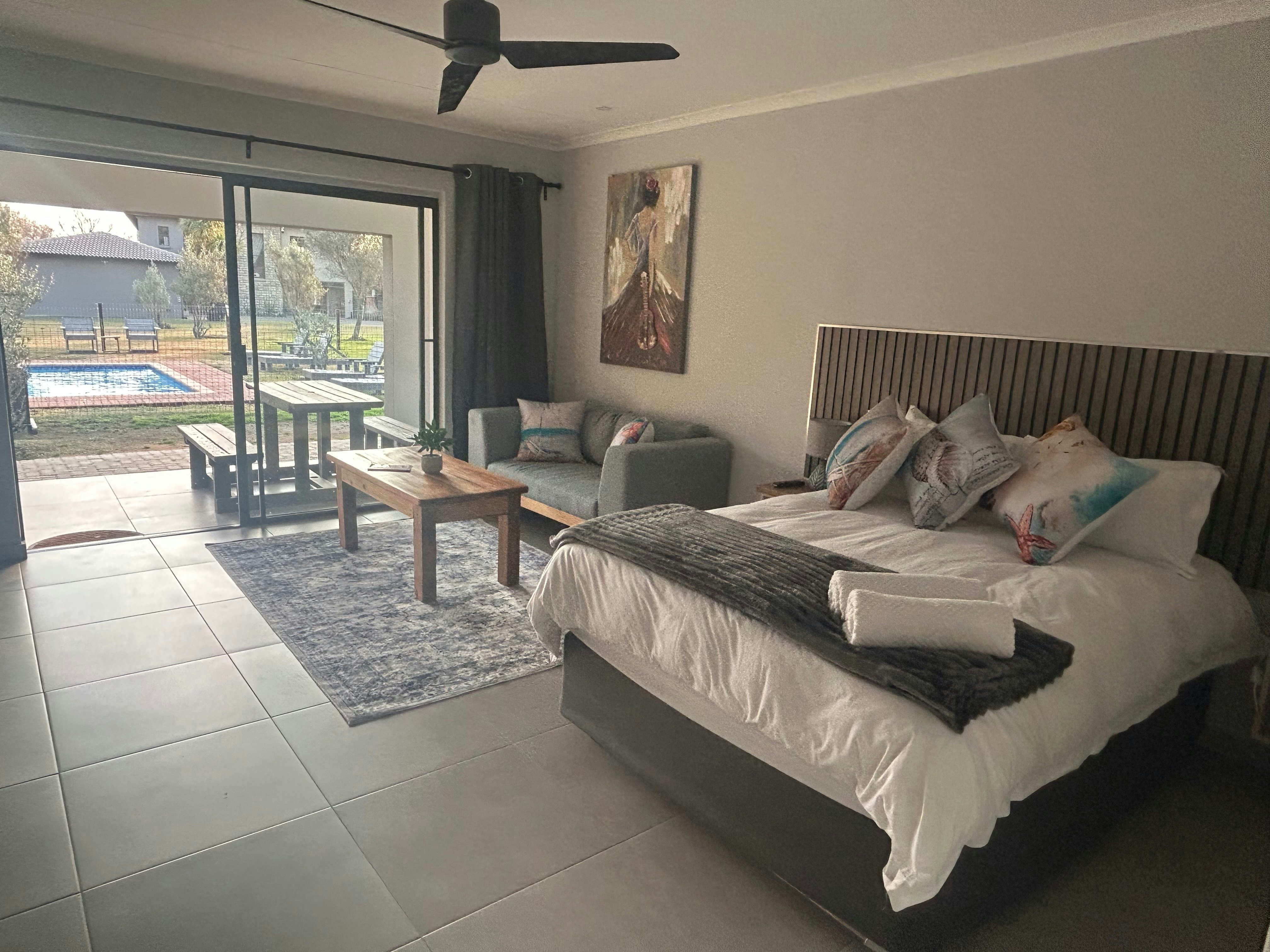 Accommodation is offered in a choice between the River View House or a 4-bedroom cottage. The River View House accommodates 8 guests and features 4 bedrooms, 3 bathrooms, a spacious kitchen, a dining area, a lounge, and a playroom for children. The cottage sleeps 8 guests and has 4 bedrooms, a kitchenette, and a cosy lounge. Unit No 5 sleeps 4 guests and is an open-plan unit with a lounge and kitchenette.