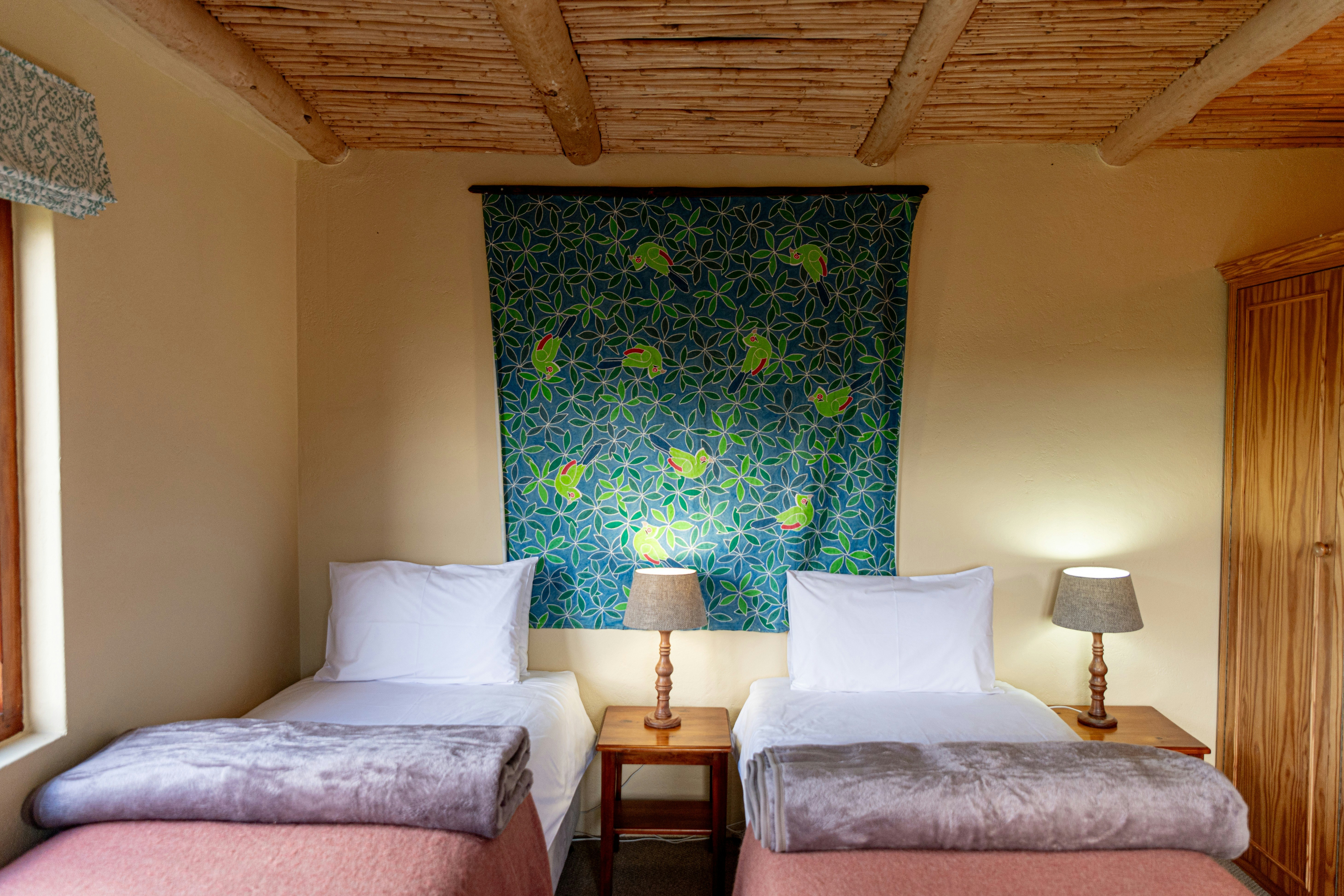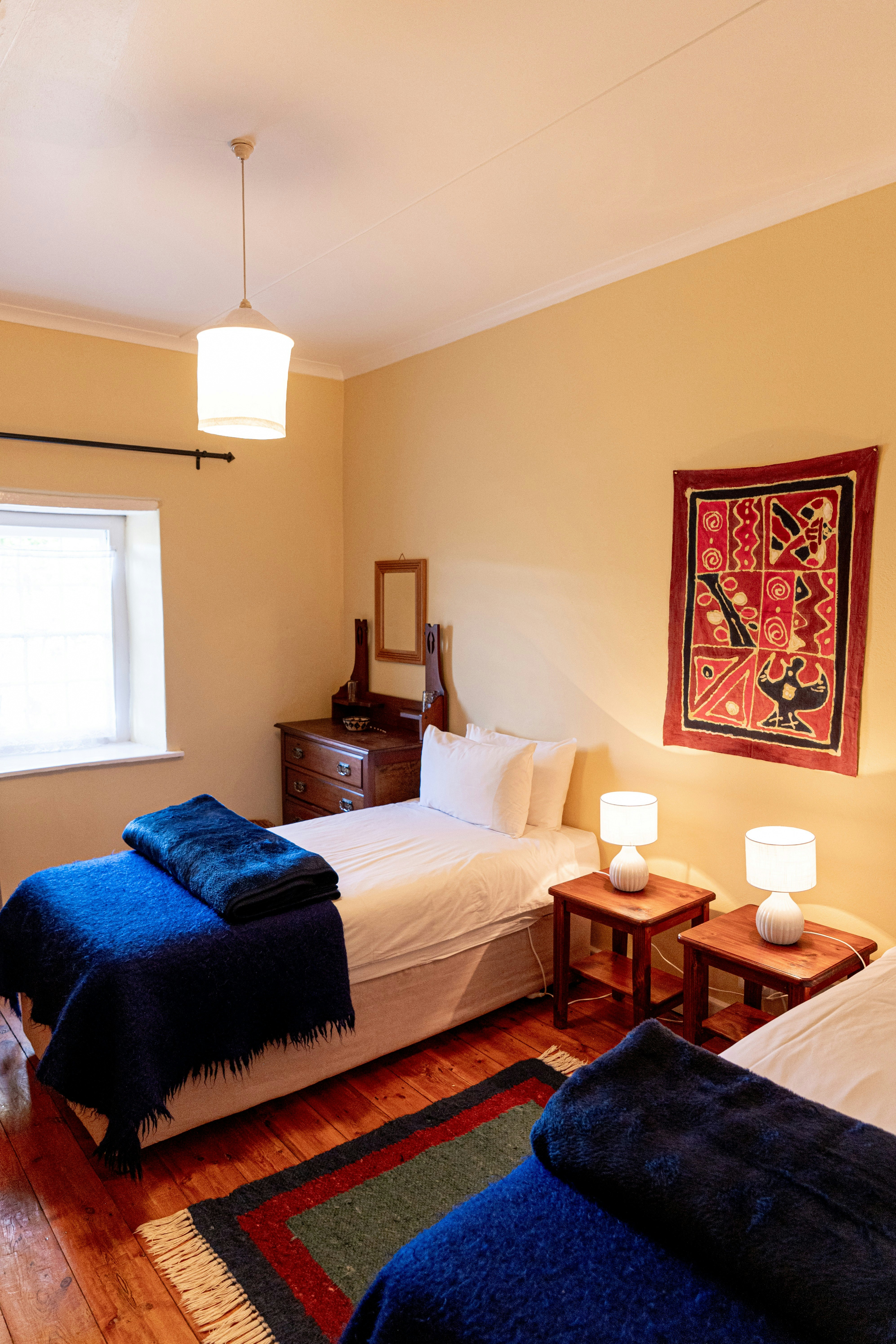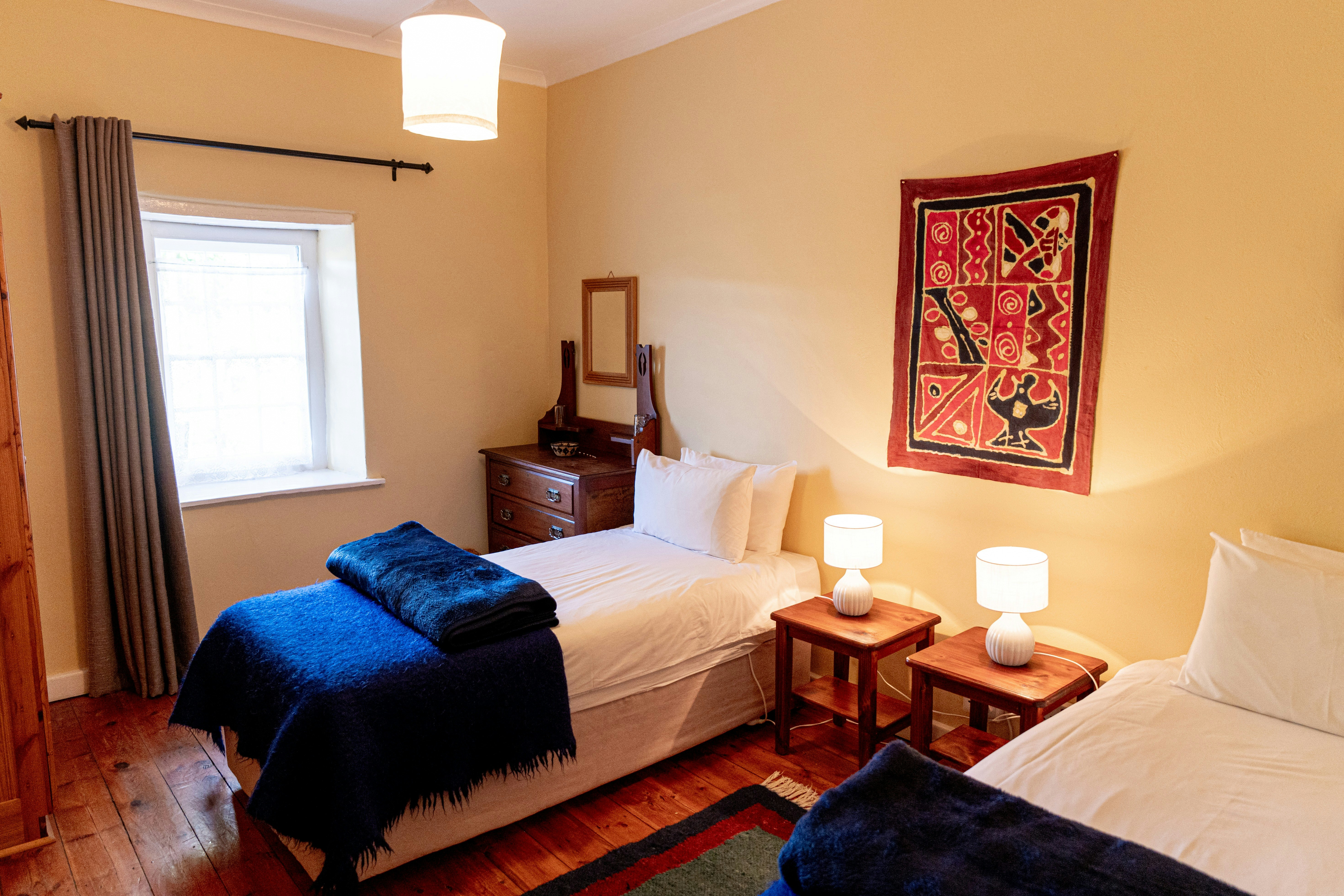 Accommodation is offered in a 6-bedroom self-catering guest house, that can accommodate up to 12 guests, and is only rented out to 1 group at a time. In addition, there is a cozy 1-bedroom self-catering cottage, which can accommodate up to 3 guests. Both the guest house and the cottage have their own kitchen facilities, dining and living areas.