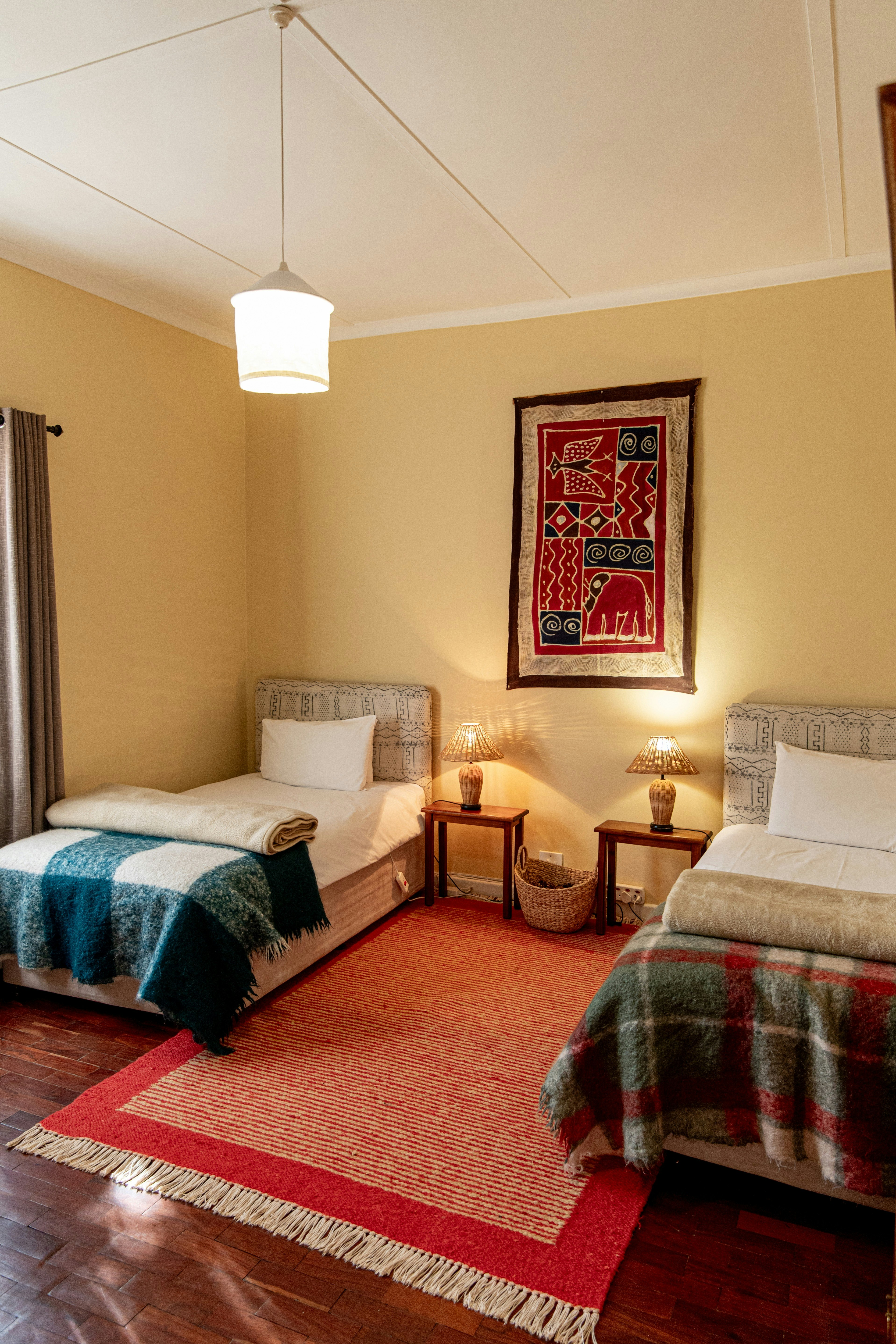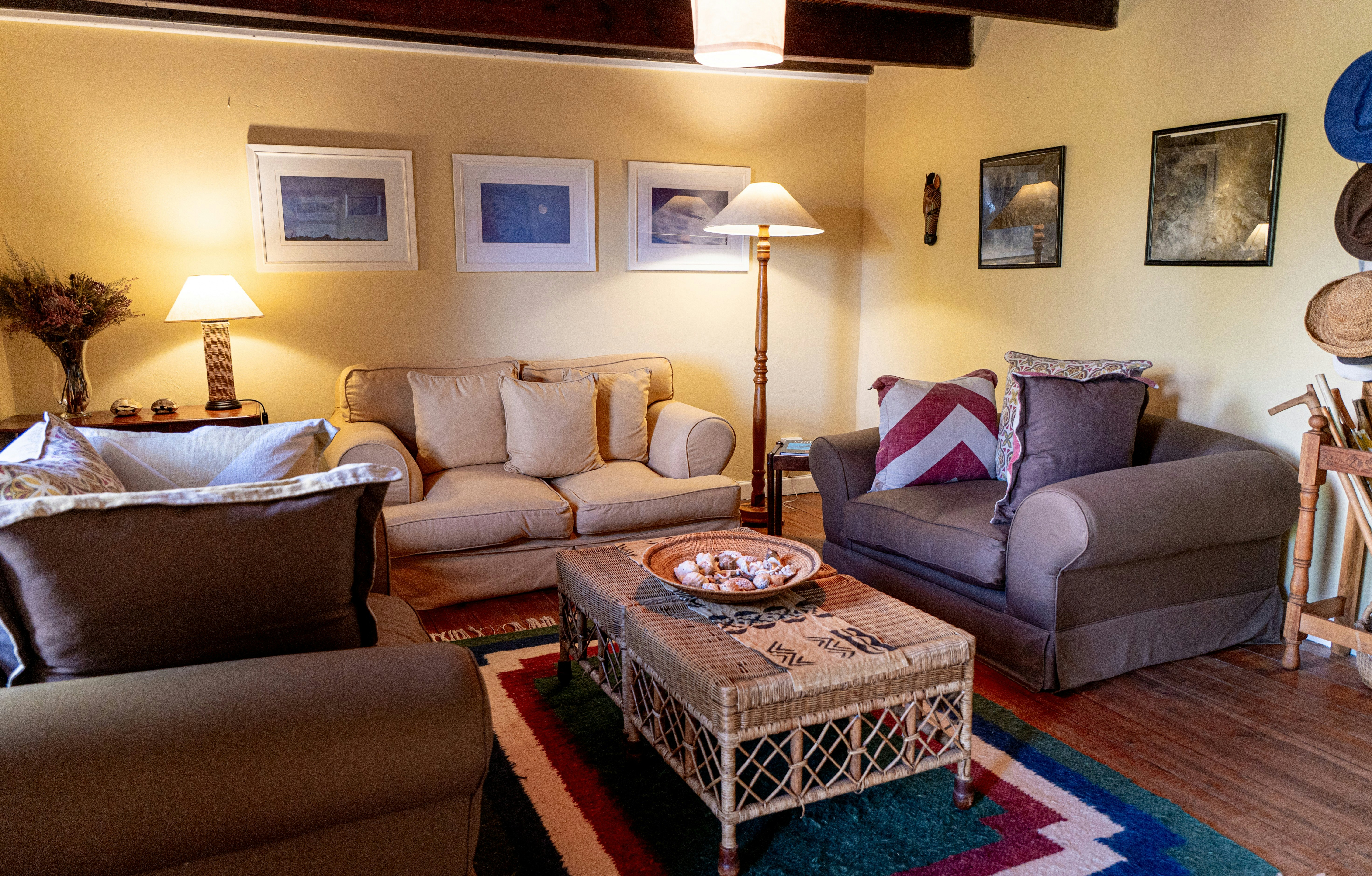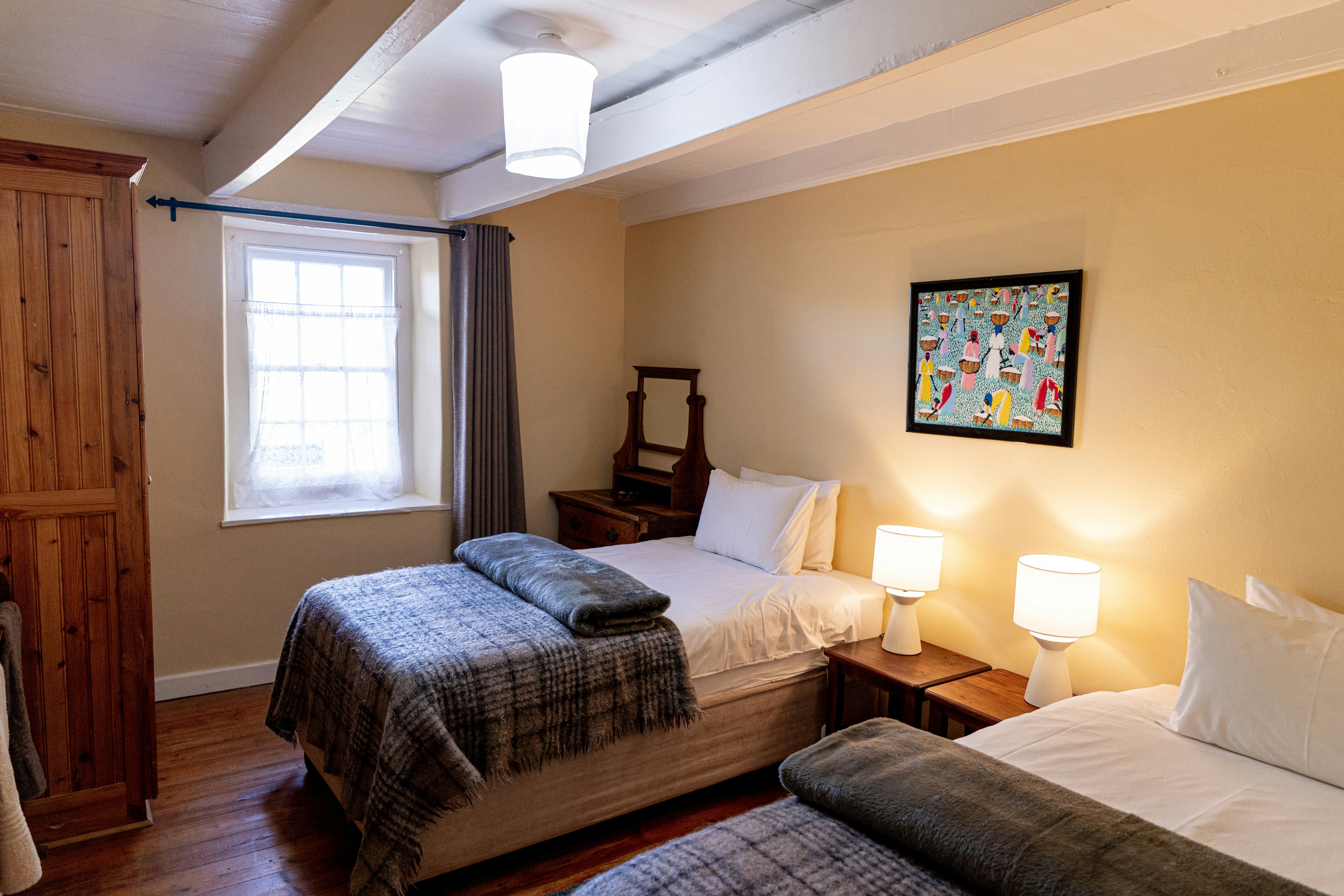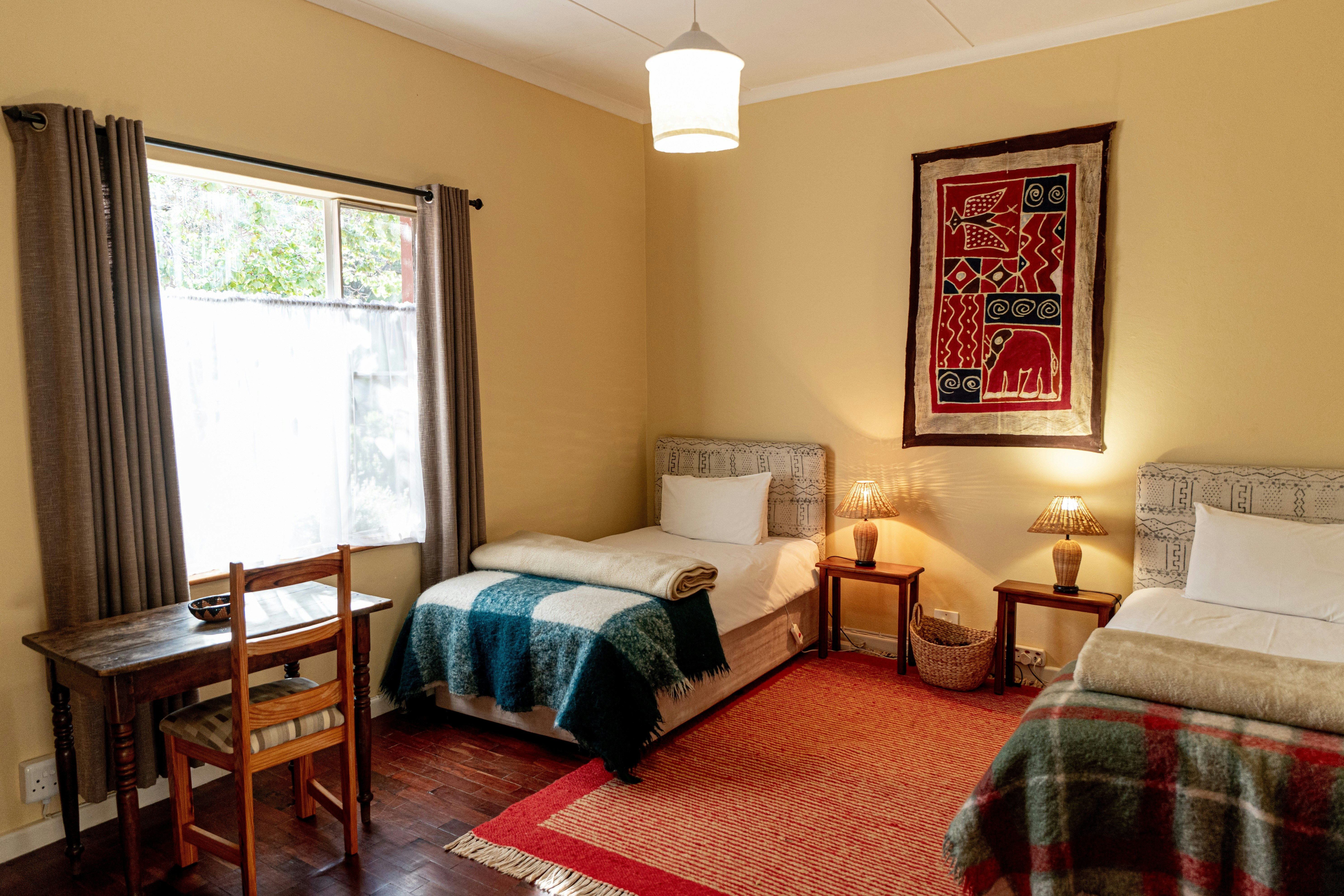 Accommodation is offered in a 6-bedroom self-catering guest house, that can accommodate up to 12 guests, and is only rented out to 1 group at a time. In addition, there is a cozy 1-bedroom self-catering cottage, which can accommodate up to 3 guests. Both the guest house and the cottage have their own kitchen facilities, dining and living areas.
