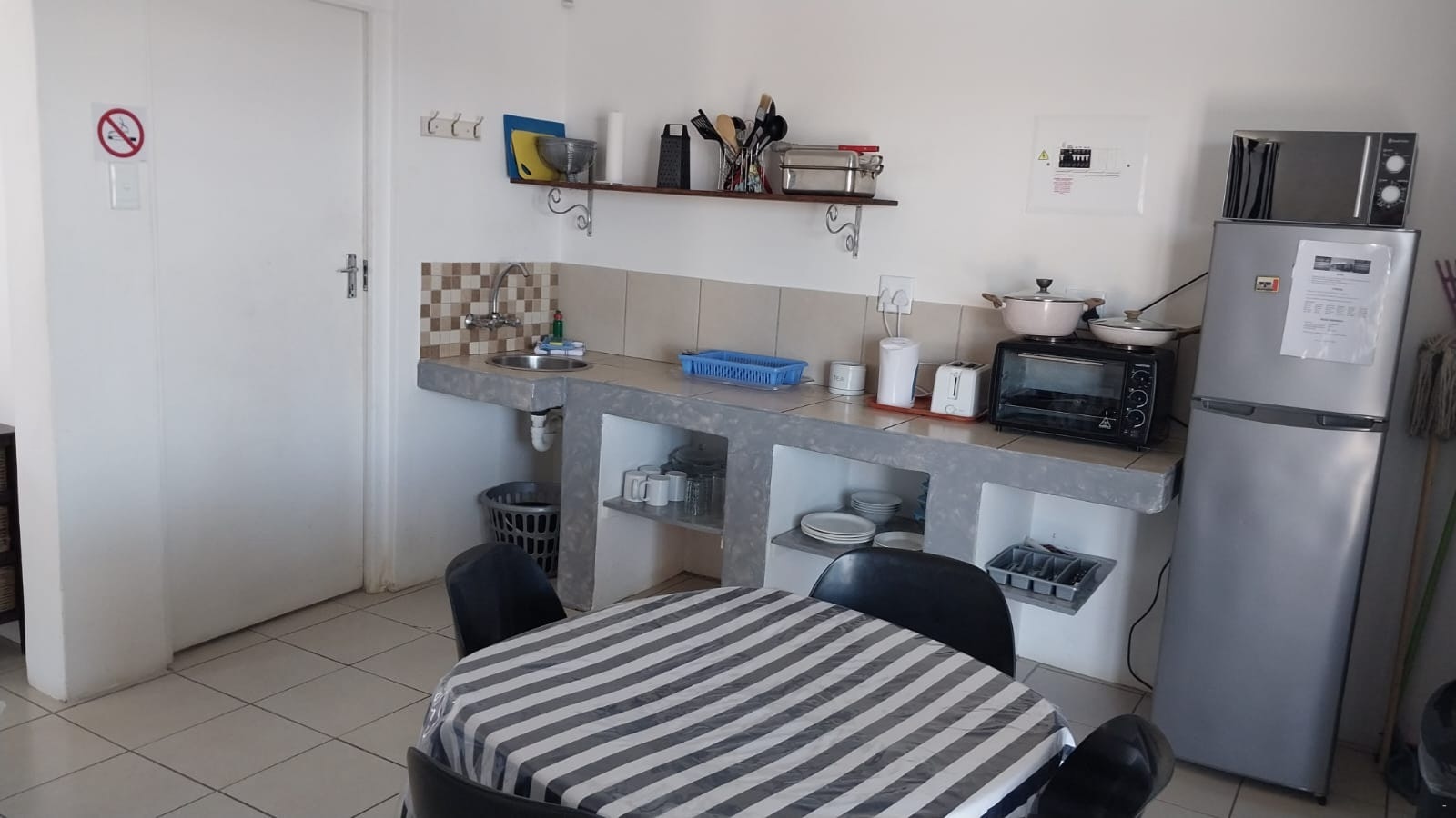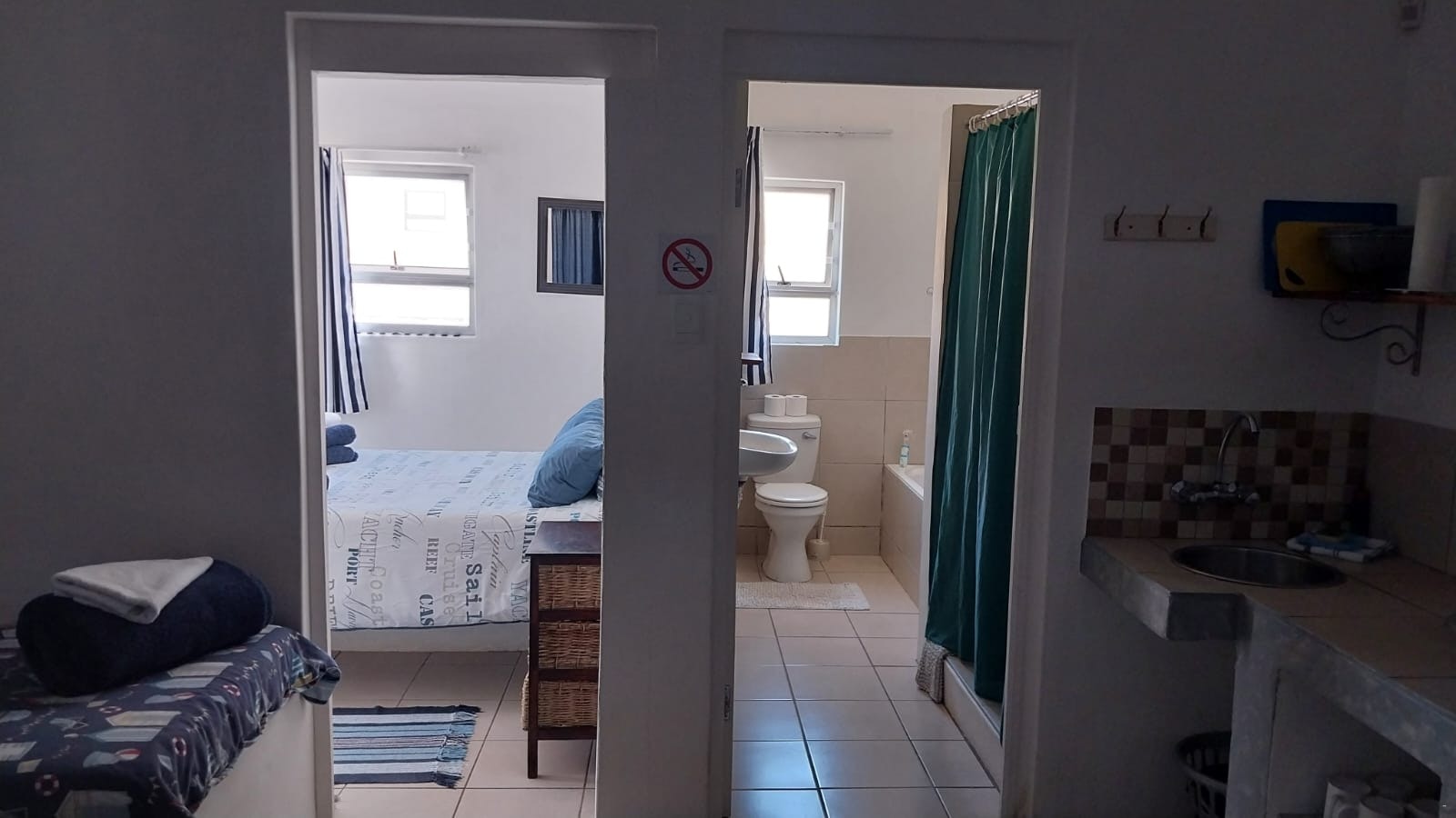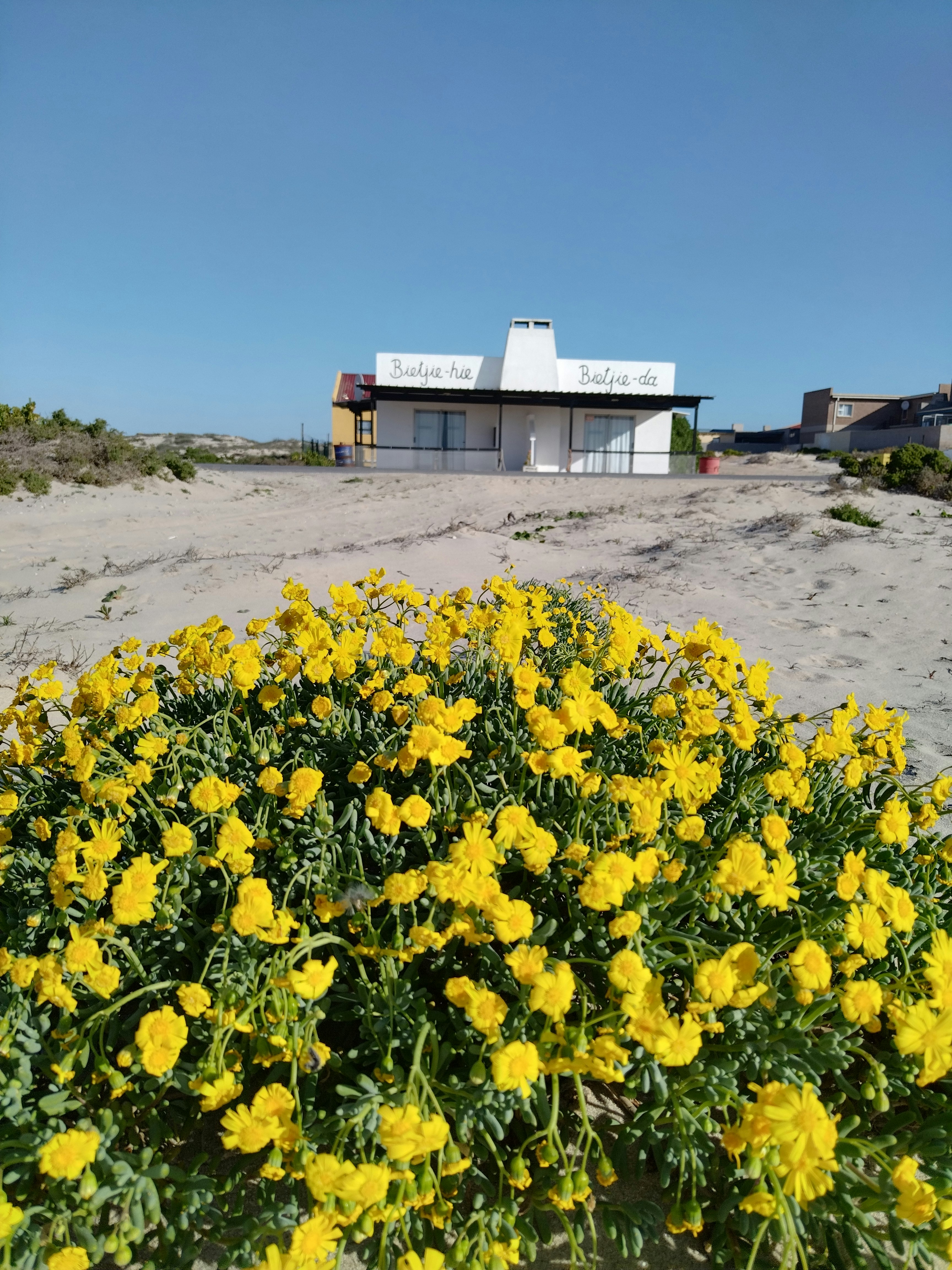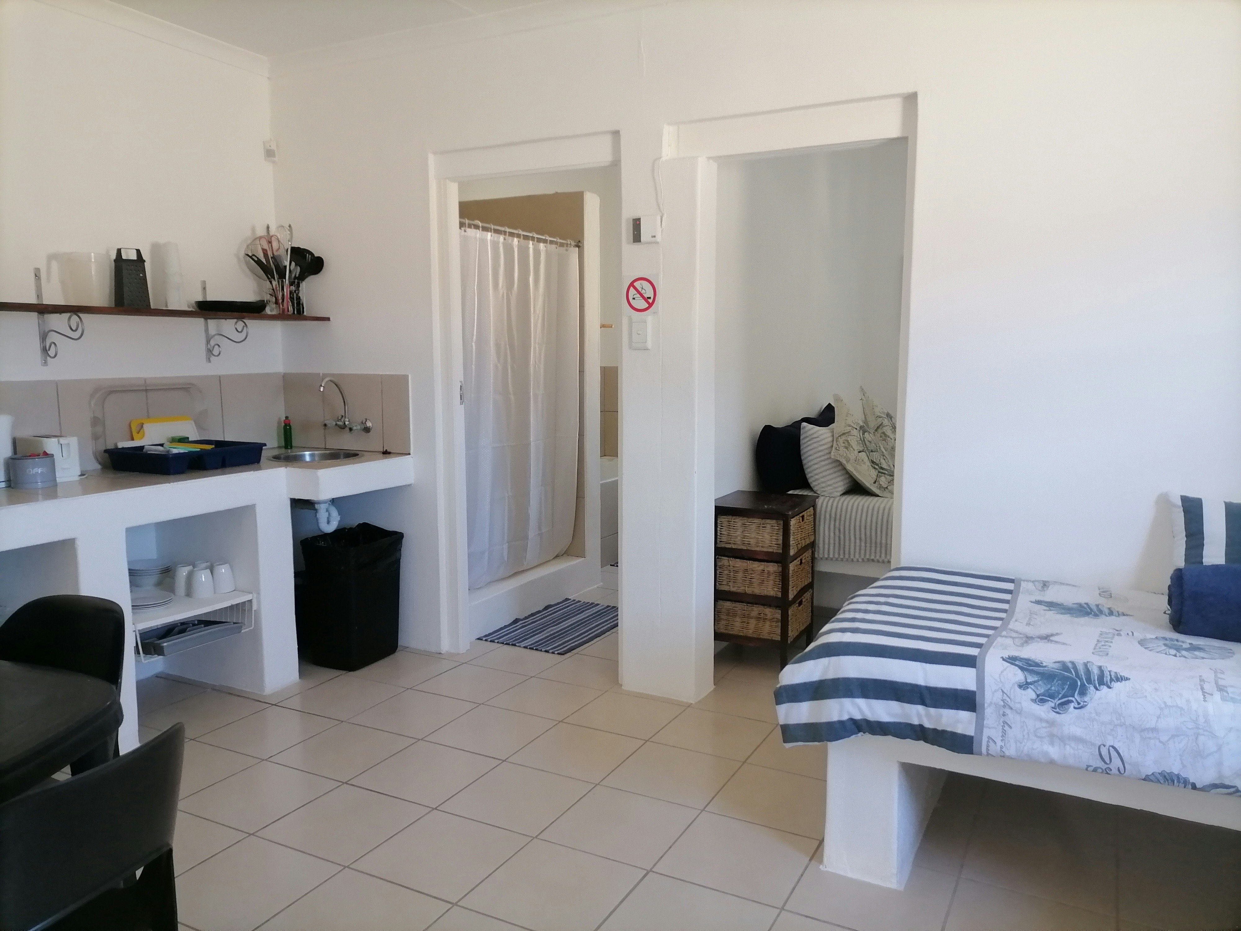 Bietjie Da can accommodate 4 guests, and comprises 1 double bed and 2 single beds, and a bathroom containing a shower, bath, toilet, and basin. A TV with DStv is provided in the lounge, guests do need to bring their own DStv smart card and DStv decoder if they need more channels. The kitchenette is equipped with a fridge, microwave, small stove, and crockery and cutlery. Indoor braai facilities are available to guests. Bietjie Da is within walking distance to a nearby beach but does not offer sea views.