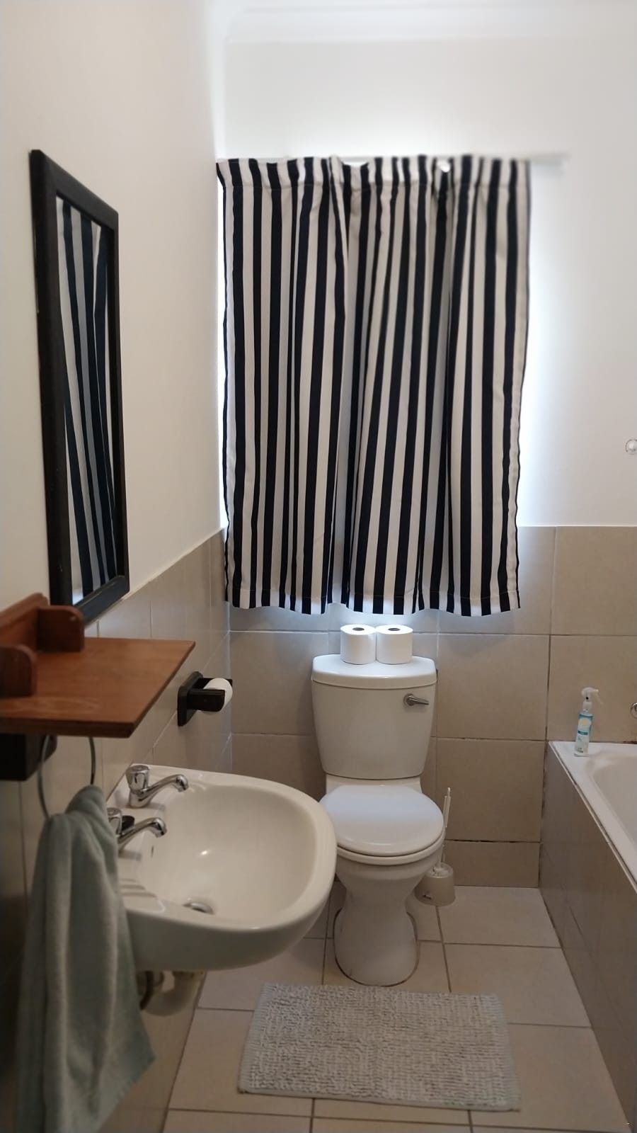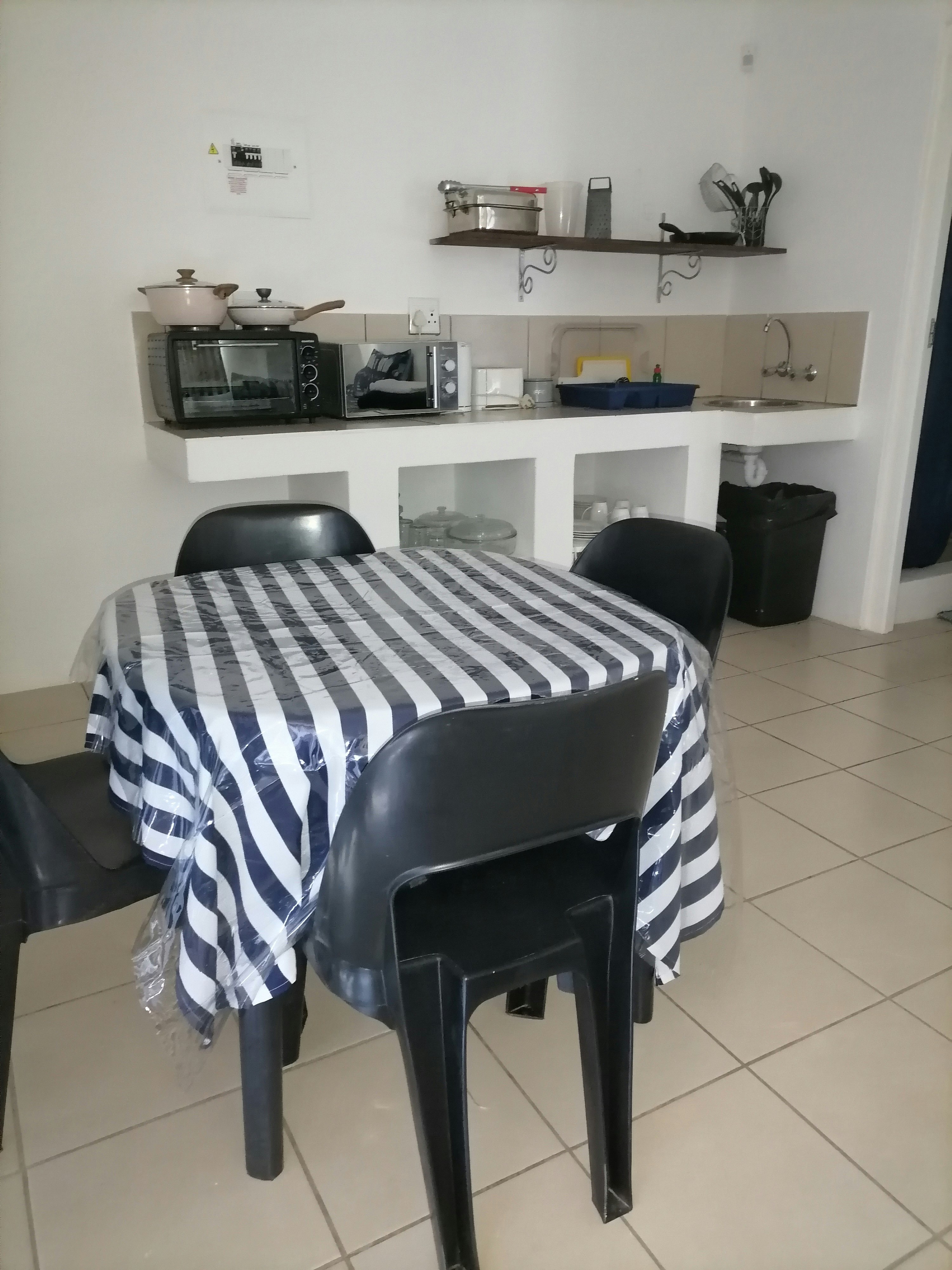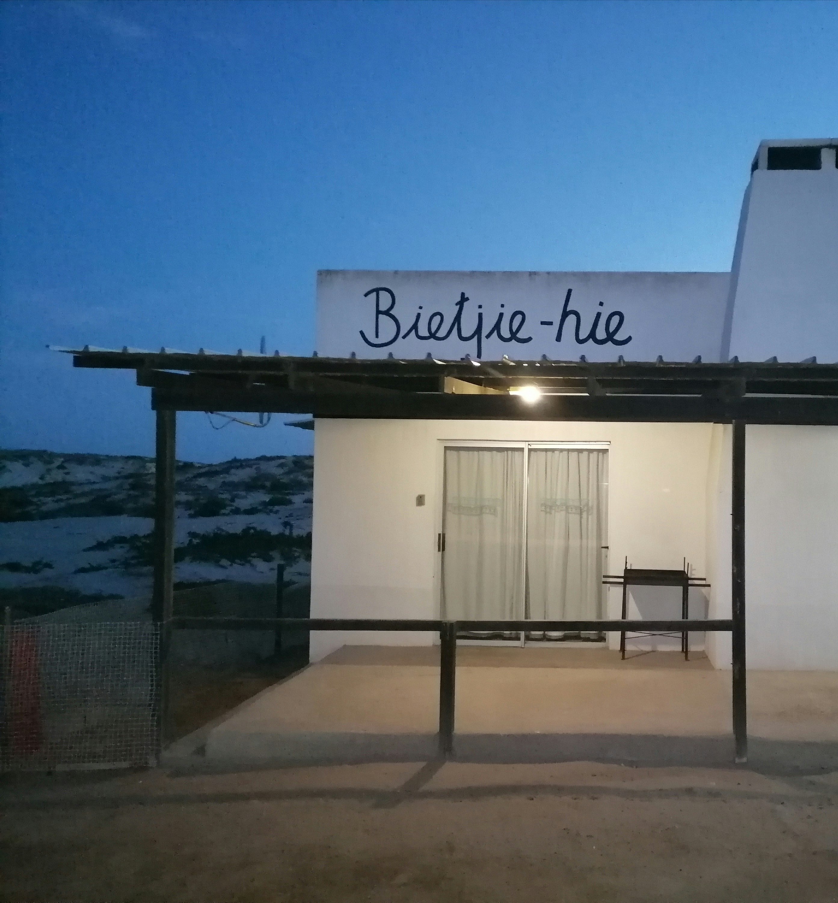 Bietjie Hie can accommodate 4 guests, and comprises 1 double bed and 2 single beds, and a bathroom containing a shower, bath, toilet, and basin. A TV with DStv EasyView is provided in the lounge, guests do need to bring their own DStv smart card and DStv decoder if they need more channels. The kitchenette is equipped with a fridge, microwave, small stove, and crockery and cutlery. Indoor braai facilities are available to guests. Bietjie Hie is within walking distance to a nearby beach but does not offer sea views.