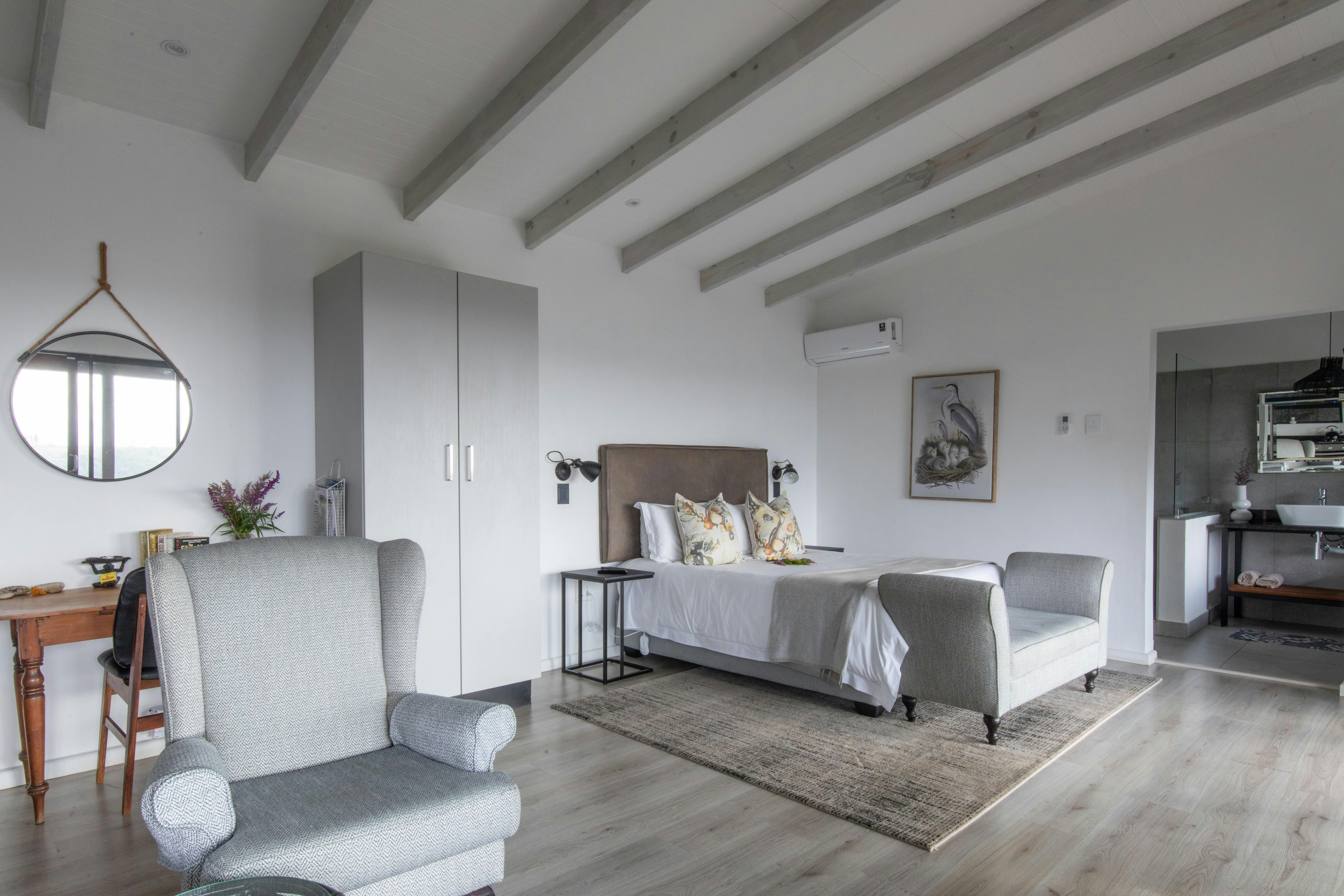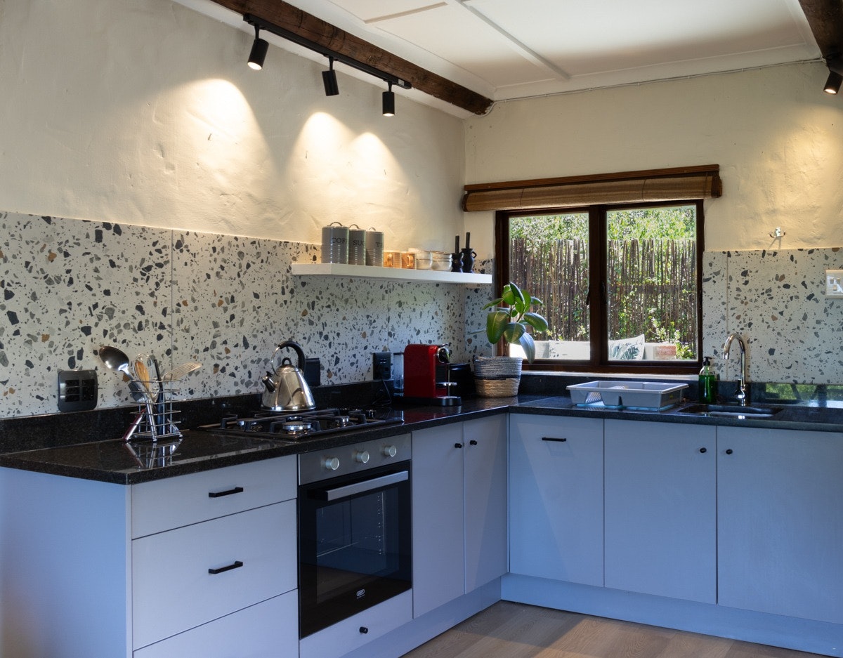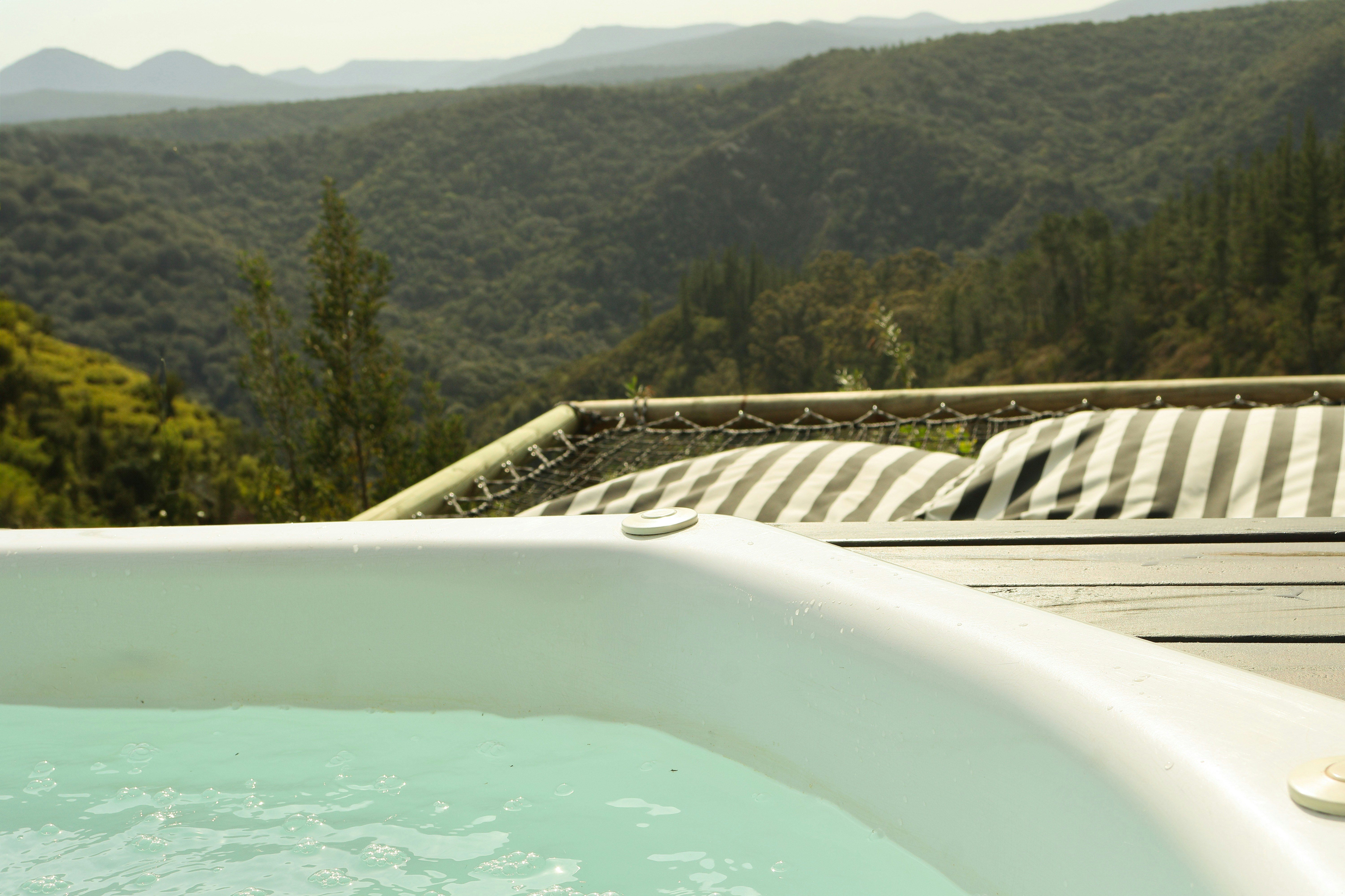 Outside, guests can enjoy the enclosed balcony with additional outdoor seating as well as a wood Braai, a jetted spa bath with breathtaking views of the surrounding mountains.
