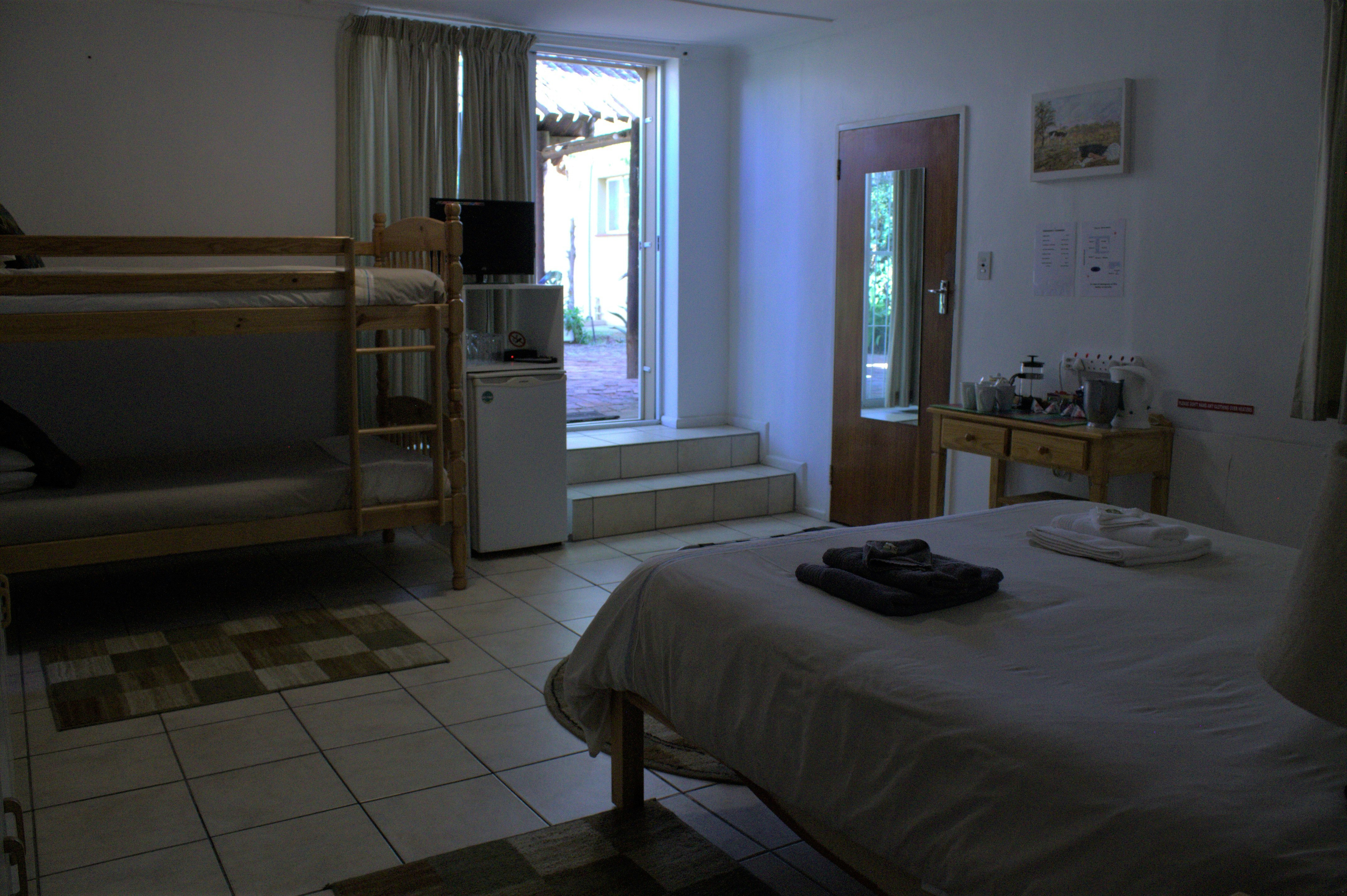 Set in the large colonial house, this large room has a queen-sized bed, a day couch and an en-suite bathroom with shower only. In-room amenities include a ceiling fan, wall- mounted heater, bar fridge, TV with selected DStv channels, tea- and coffee-making facilities and toiletries. This room can accommodate 2 adults and 1 child under the age of 12 years.