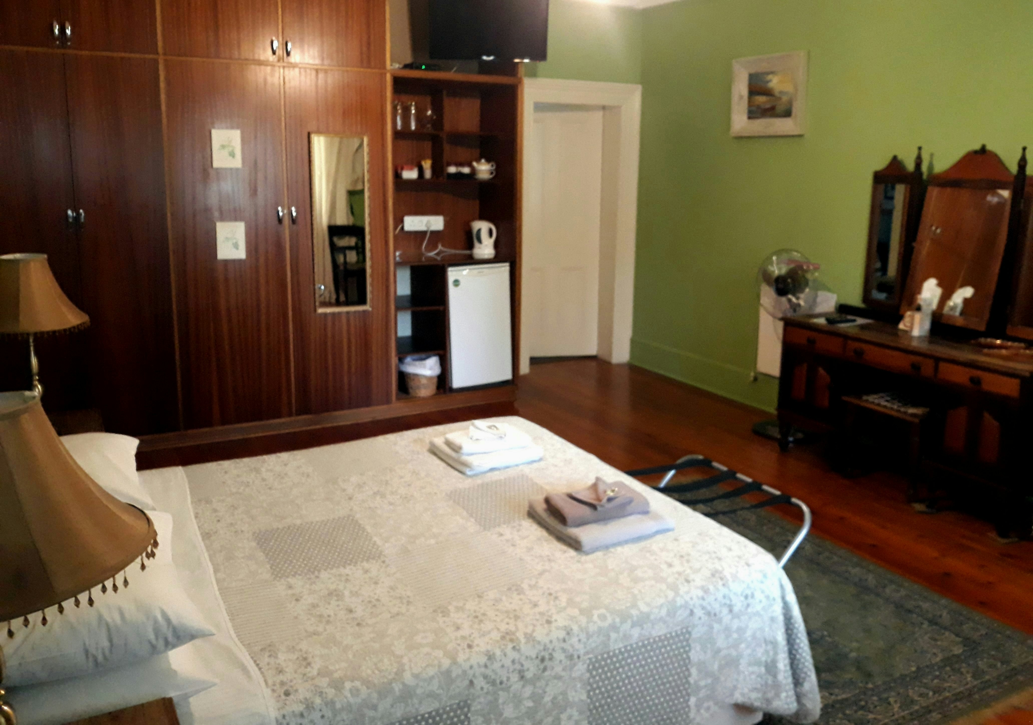 Set in the large colonial house, this very large sized room has one king-sized bed with a shower/bath combination. It has a ceiling fan, electric oil heater, bar fridge, TV, tea/coffee facilities and toiletries.