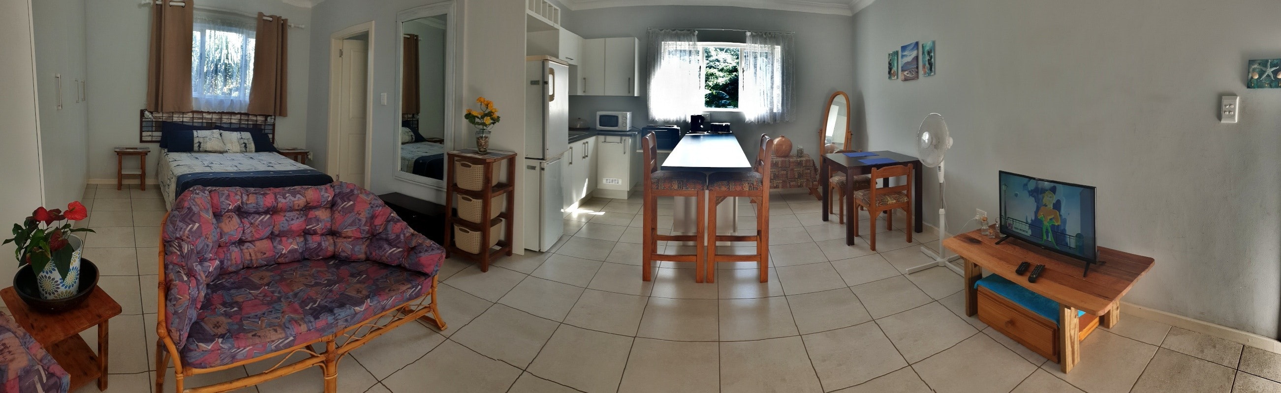Bly plek was skoon en netjies met 'n rustige atmosfeer. Verblyf was baie lekker, met pragtige uitsig op die see en baie vriendelike gasheer.