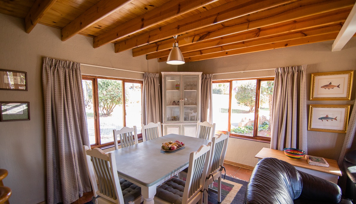 There is a comfortable lounge on the ground floor with a TV with full DStv and a wonderful fireplace. It also features a dining room with a six-seater dining table where guests can enjoy their meals together.