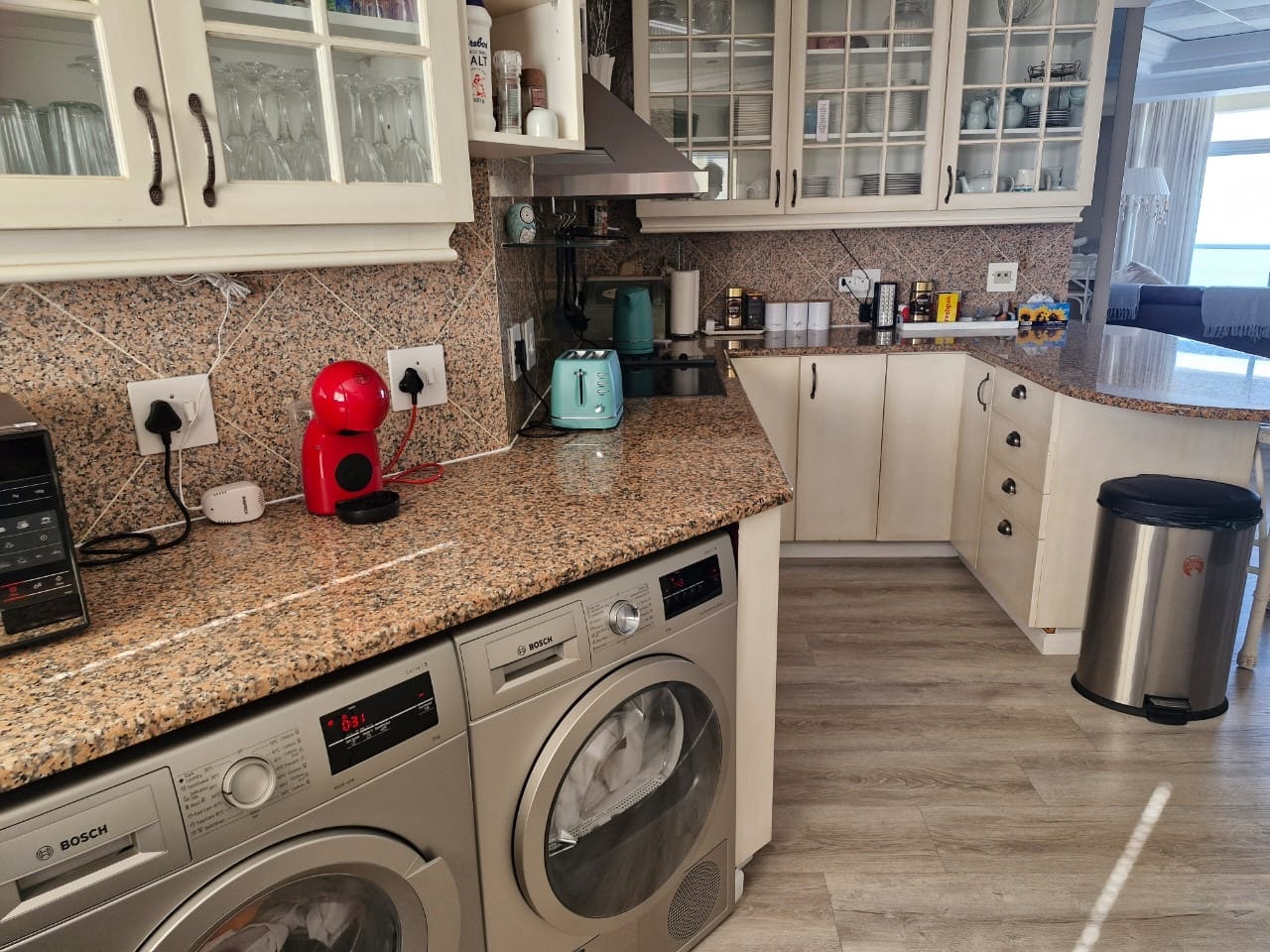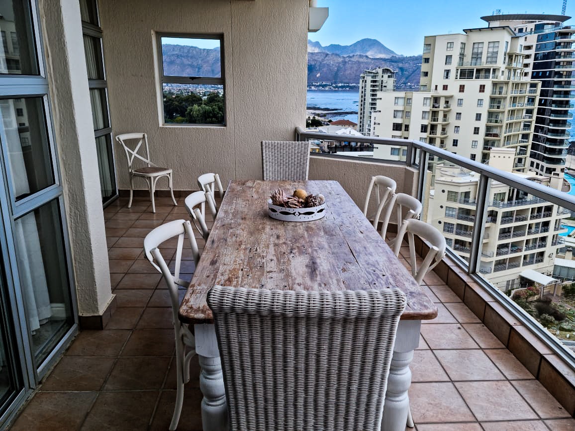 The penthouse is located on the 11th floor with uninterrupted views of False Bay. The spacious apartment comprises 3 bedrooms, 2 bathrooms, a kitchen, a dining area, and a lounge that opens onto the balcony.
