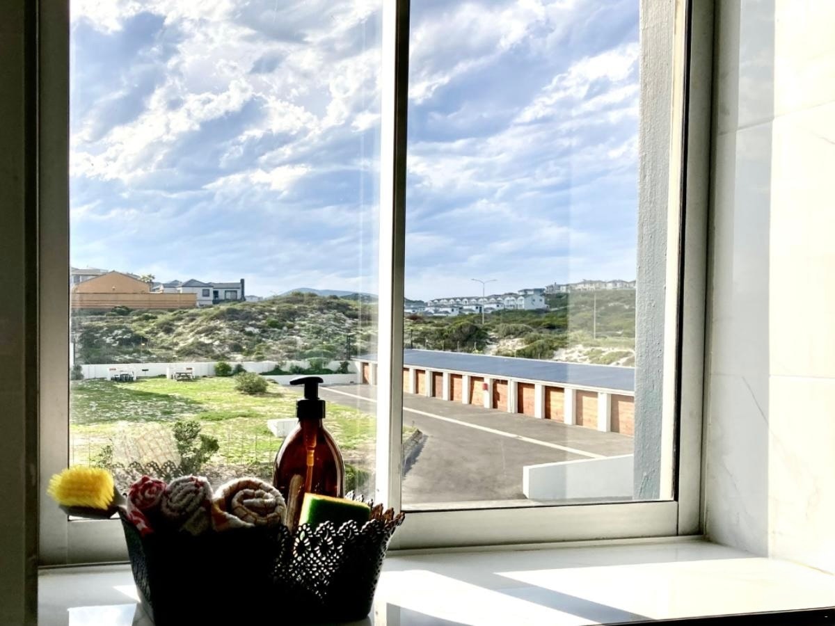 The kitchen is fully equipped with a fridge-freezer, stove, oven, microwave, cutlery and crockery, as well as tea- and coffee-making facilities. A washing machine is also available for added convenience. The apartment also features a breakfast nook that becomes a sundowner spot later in the day, offering priceless views of Table Mountain, Robben Island, the West Coast Fynbos, and the Atlantic Ocean. Guests can also relax in the open-plan dining area and lounge that is furnished with comfortable cinema-style seating and a TV with a full DSTV bouquet. Fast Wi-Fi is available throughout the apartment, and power backup is provided during load shedding.