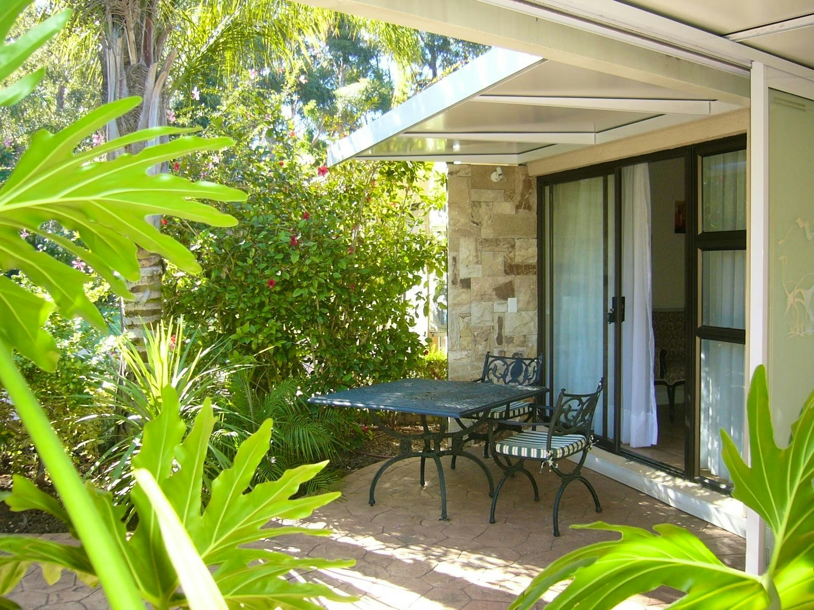 The guest rooms also have comfortable seating, and their own private garden patio with a table and chairs, offering guests an exclusive outdoor living area. There are demarcated smoking areas, as smoking inside the rooms is strictly forbidden.