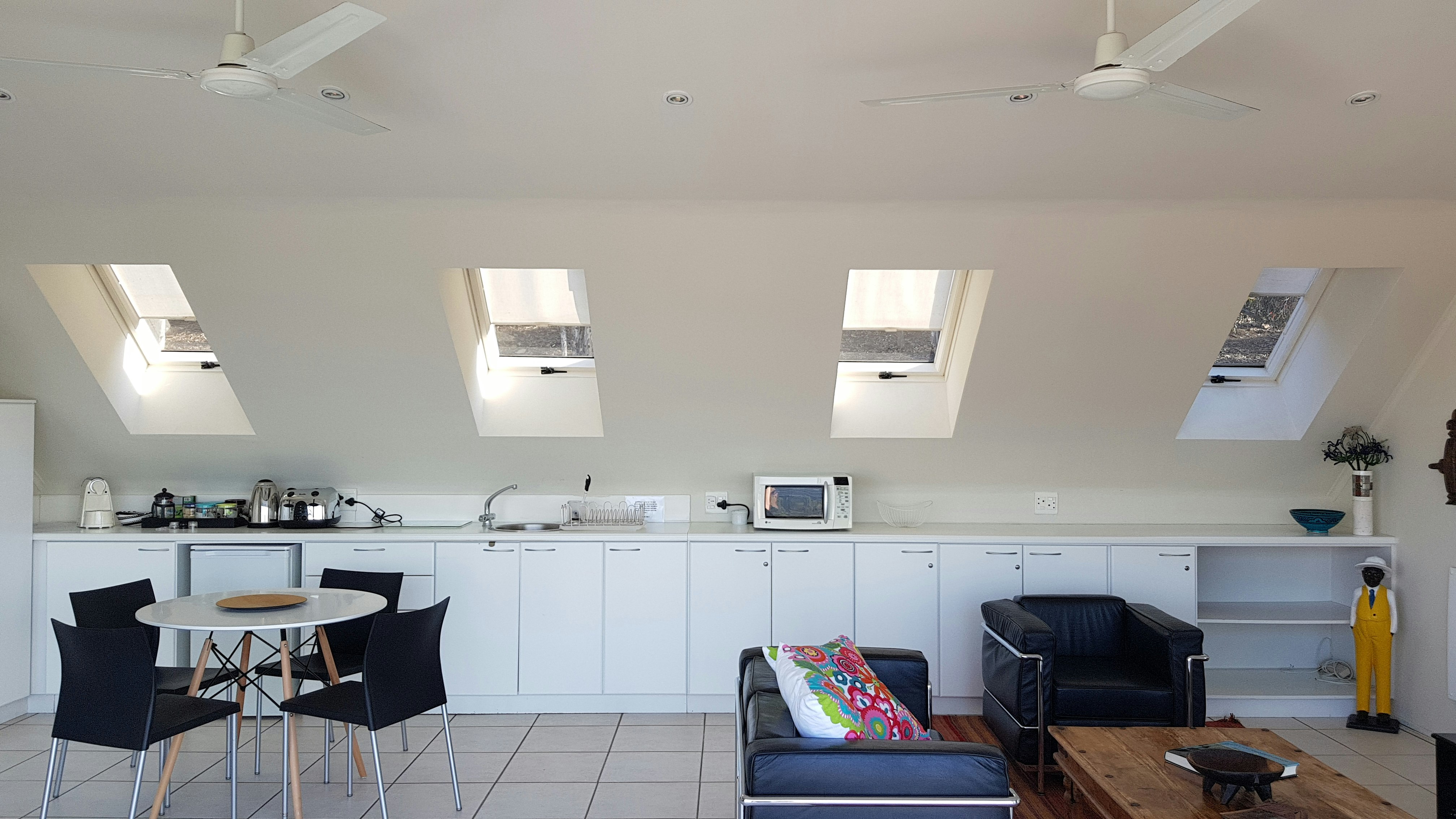 The upstairs lounge is a cosy, communal space where guests can relax after an exciting day sight-seeing and chat with other guests from all over the world who are also enjoying the wonders of Cape Town. The lounge downstairs opens out to the pool deck and has an honesty bar where guests may purchase drinks and snacks. Guests can also enjoy panoramic views from a large balcony upstairs.