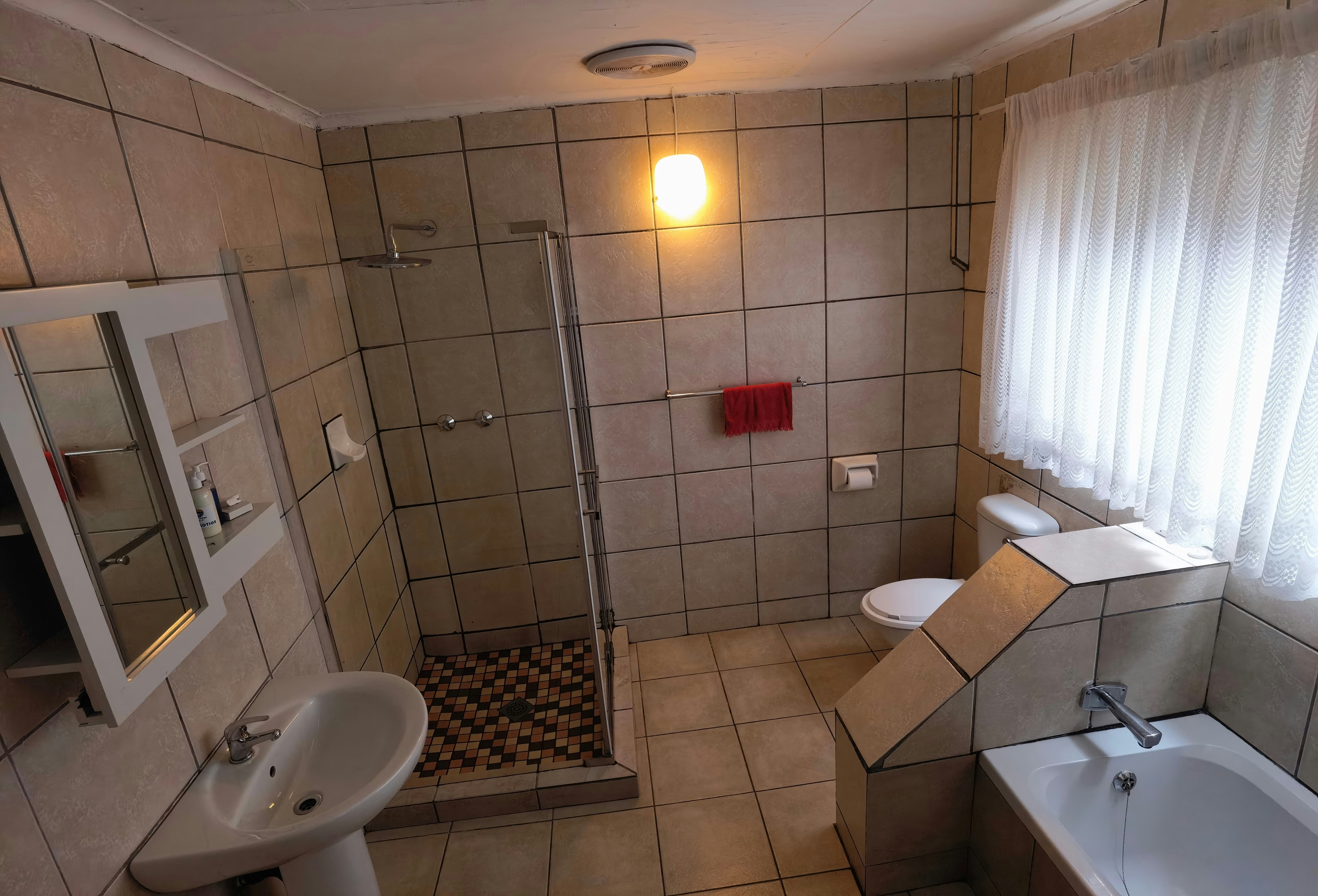 Kamer nie sleg nie maar geen warm water. Parkeerarea nie na wense, hekke word gesluit met slot so geen vrye beweging ek sal nie weer daar bly nie. Die bad in badkamer swak.