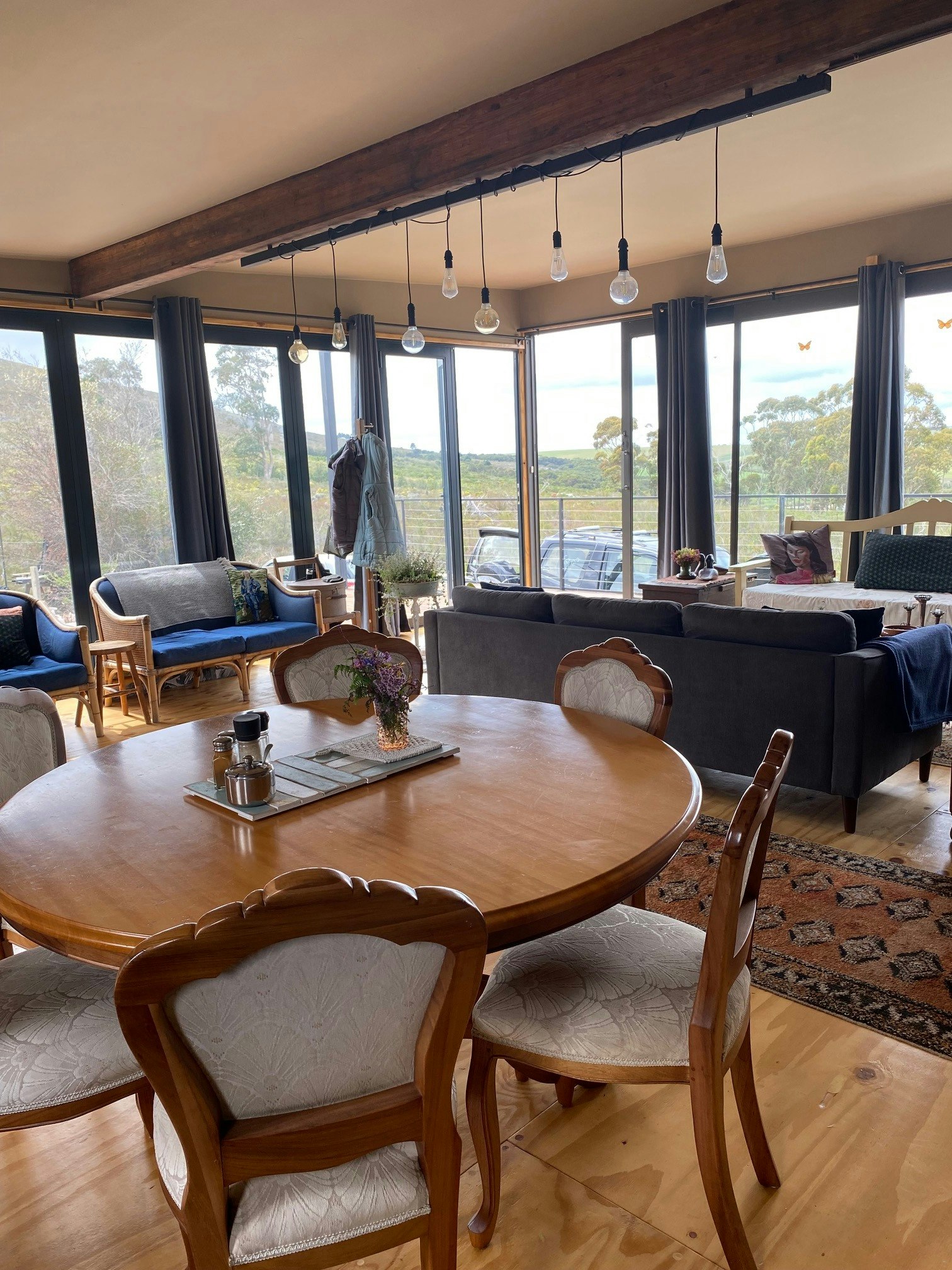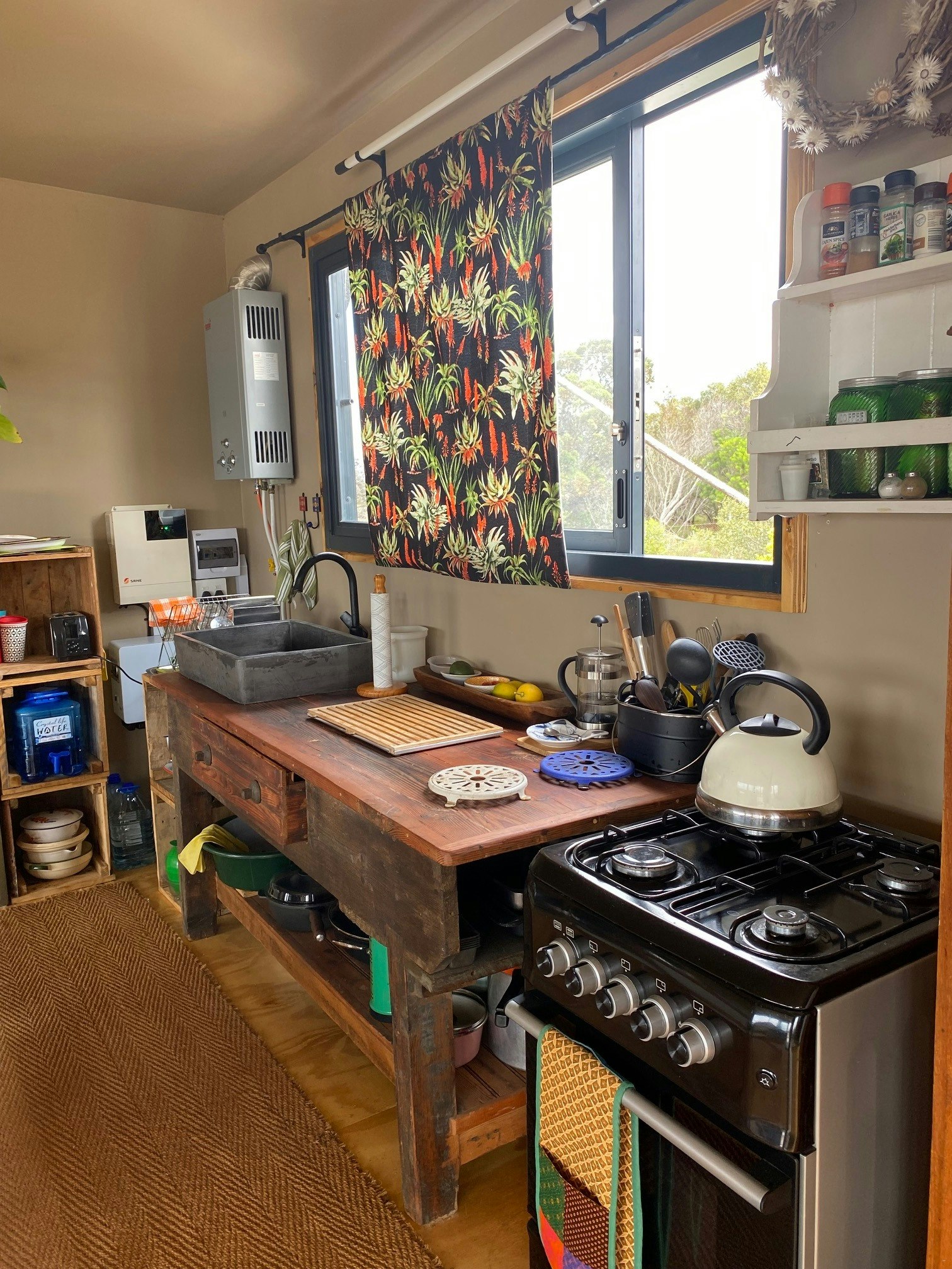 Die oopplan-kombuis is met 'n yskas, gasstoof, oond, eetgerei, breekware, tee- en koffiemaakgeriewe en 'n sentrale etenstafel met stoele toegerus. 'n Wasmasjien is ook beskikbaar. Verder het die verblyf sonkrag en 'n gasgeiser. Die kombuis lei na die sitarea met gemaklike sitplek met 'n binnebraai en 'n Dover-kaggel. Gratis WiFi is beskikbaar.