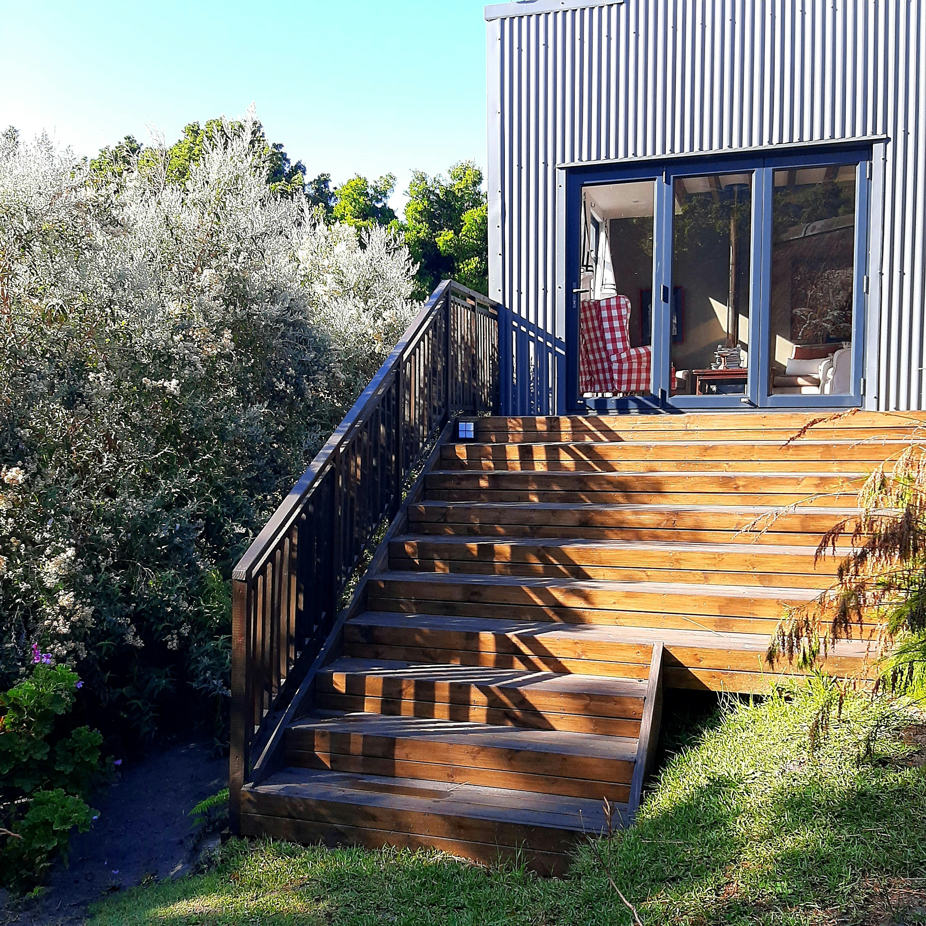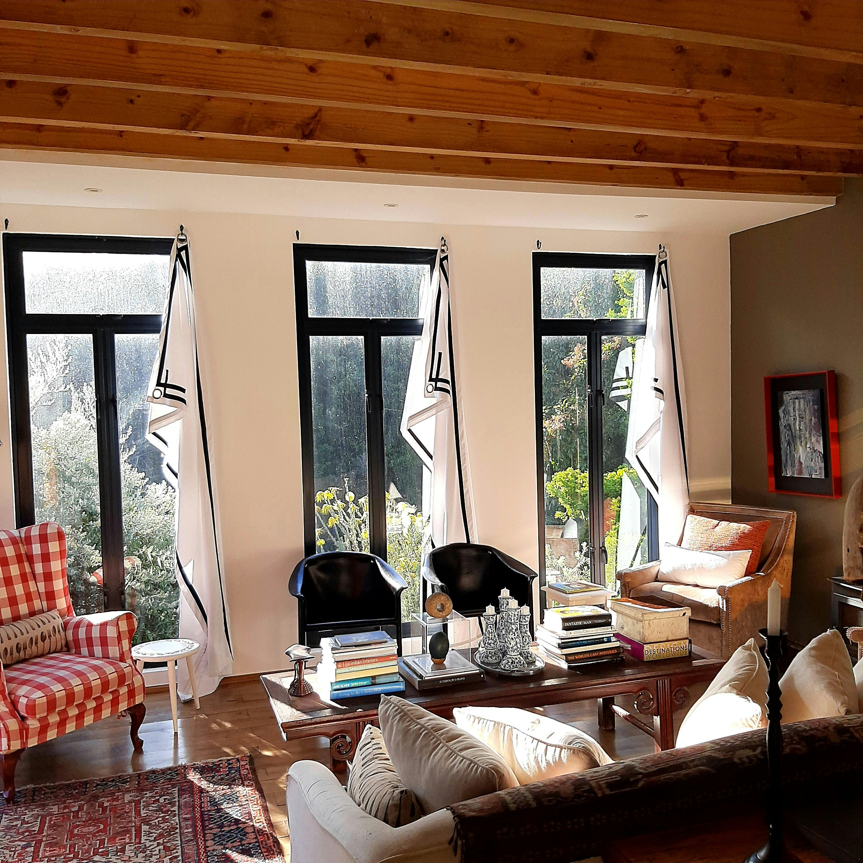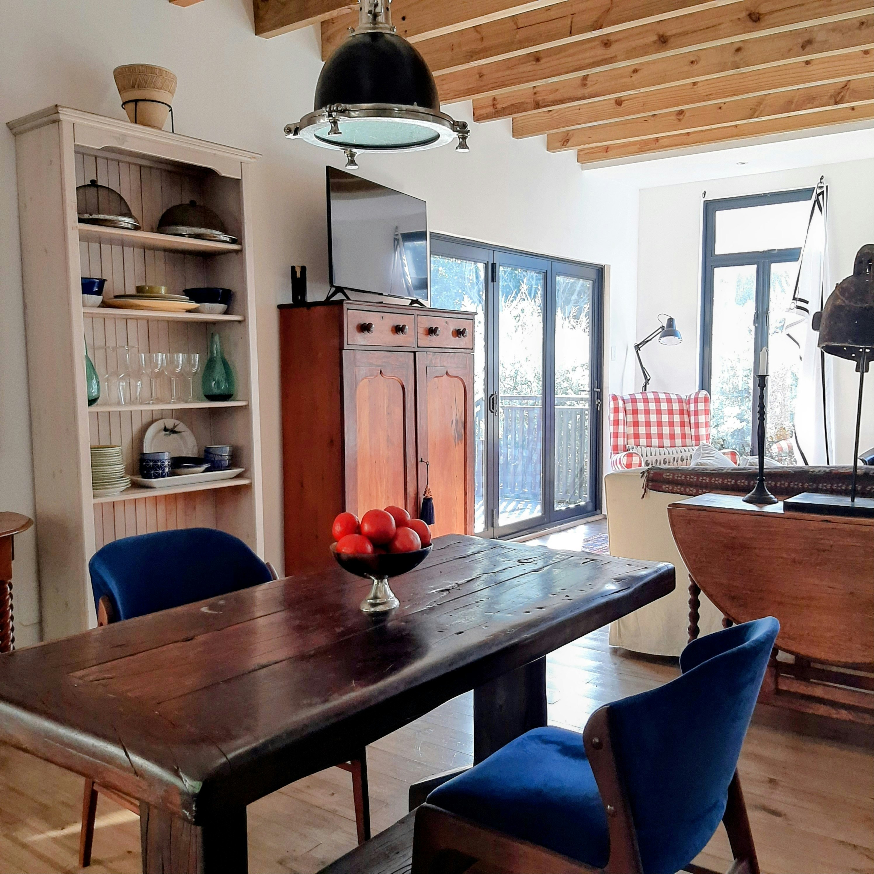 Outside, the deck has a lovely outdoor dining space, and guests can enjoy a lovely braai. The property is surrounded by mountains and nature, and guests can take it all in. The expansive grounds border the Harold Porter Botanical Gardens, providing tranquil forest trails and picnic spots beneath the Boekenhout trees. The beach is just a short walk along the Dawids Kraal River.