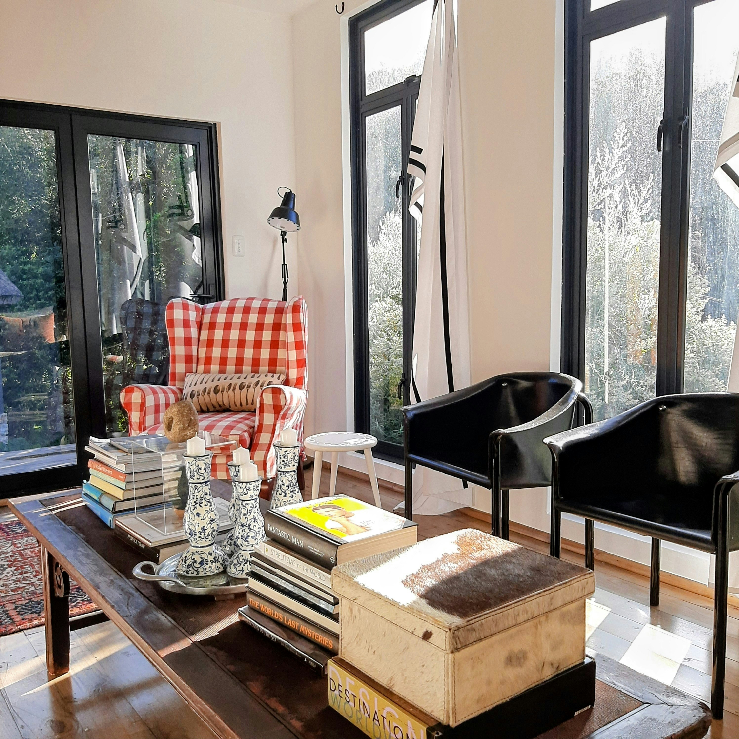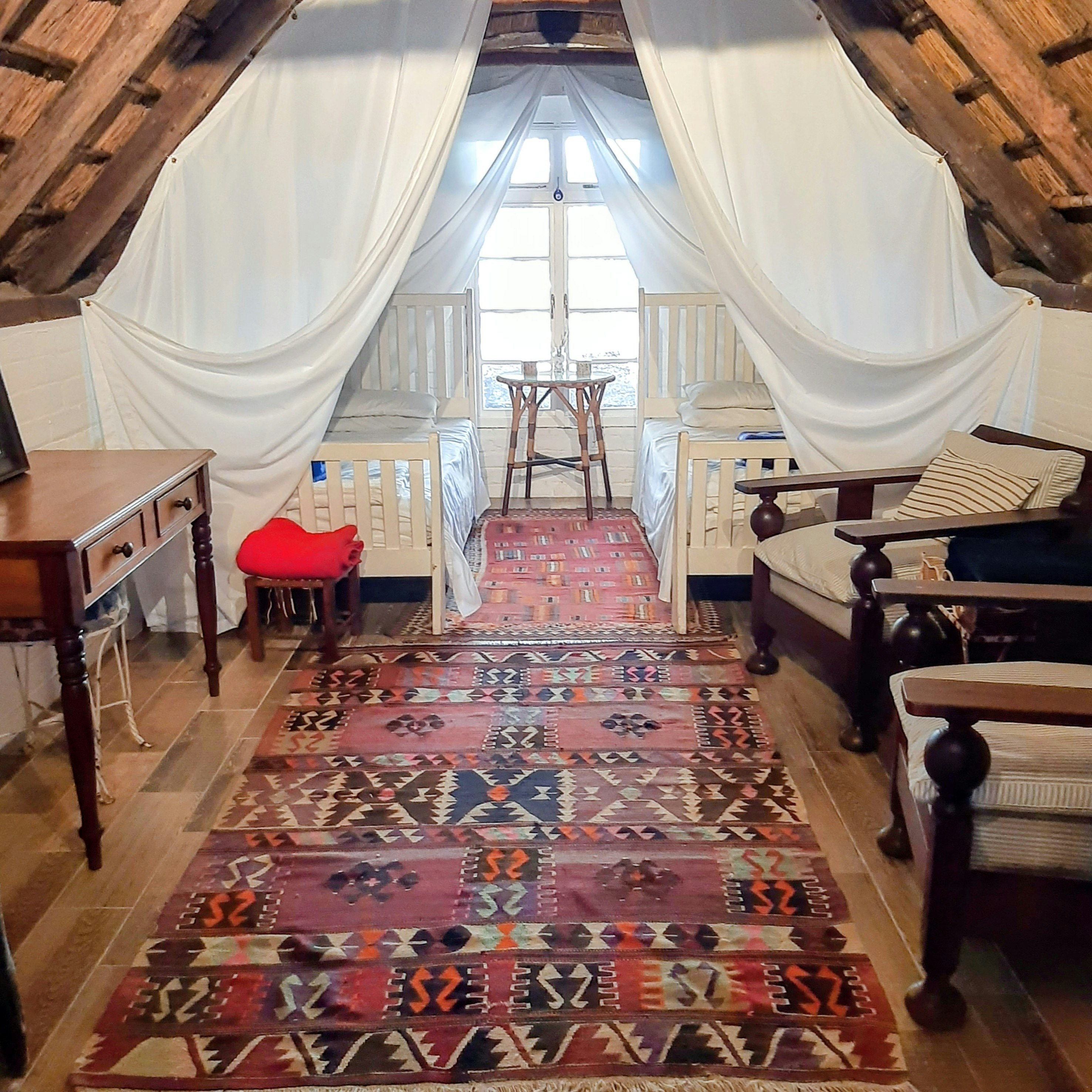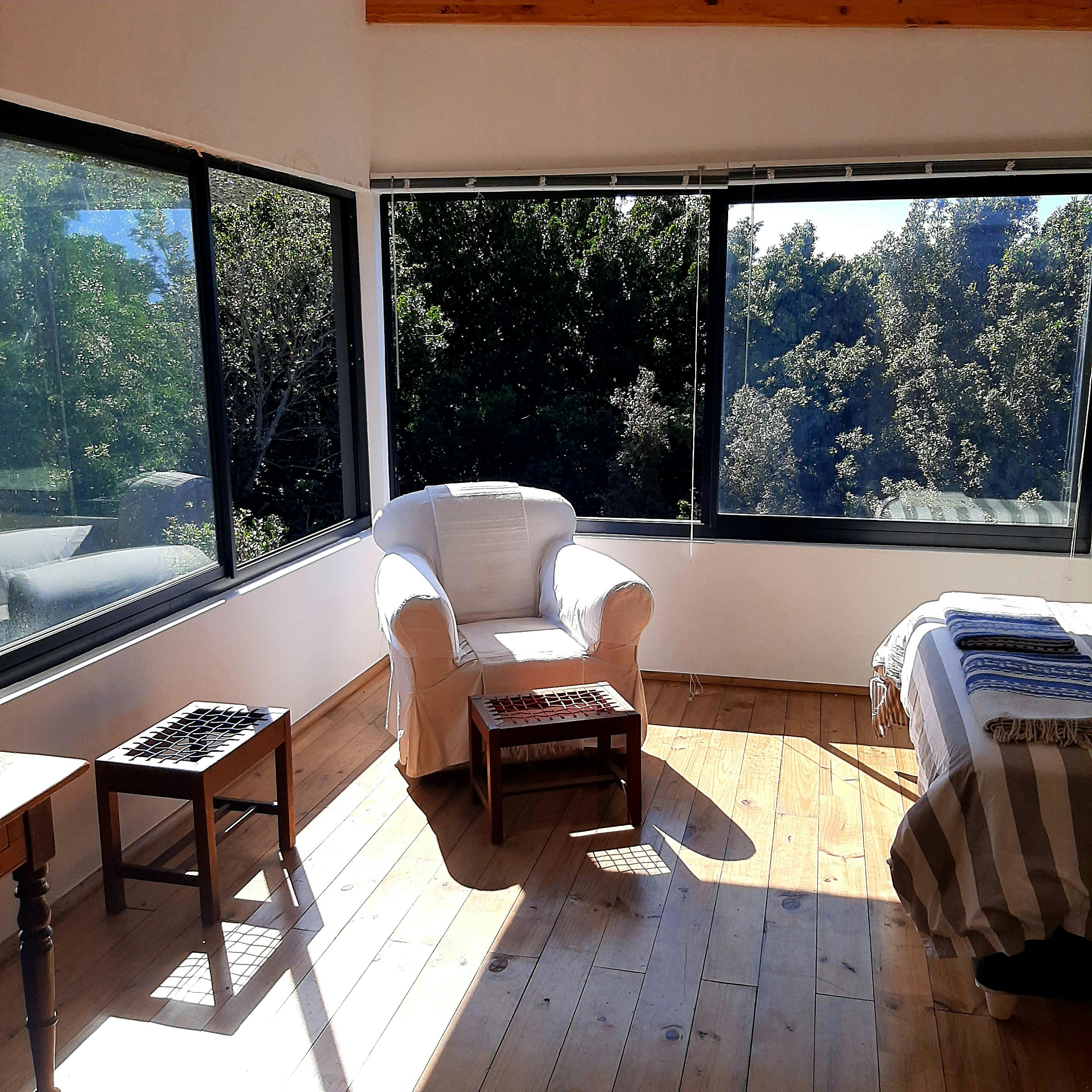 Outside, the deck has a lovely outdoor dining space, and guests can enjoy a lovely braai. The property is surrounded by mountains and nature, and guests can take it all in. The expansive grounds border the Harold Porter Botanical Gardens, providing tranquil forest trails and picnic spots beneath the Boekenhout trees. The beach is just a short walk along the Dawids Kraal River.