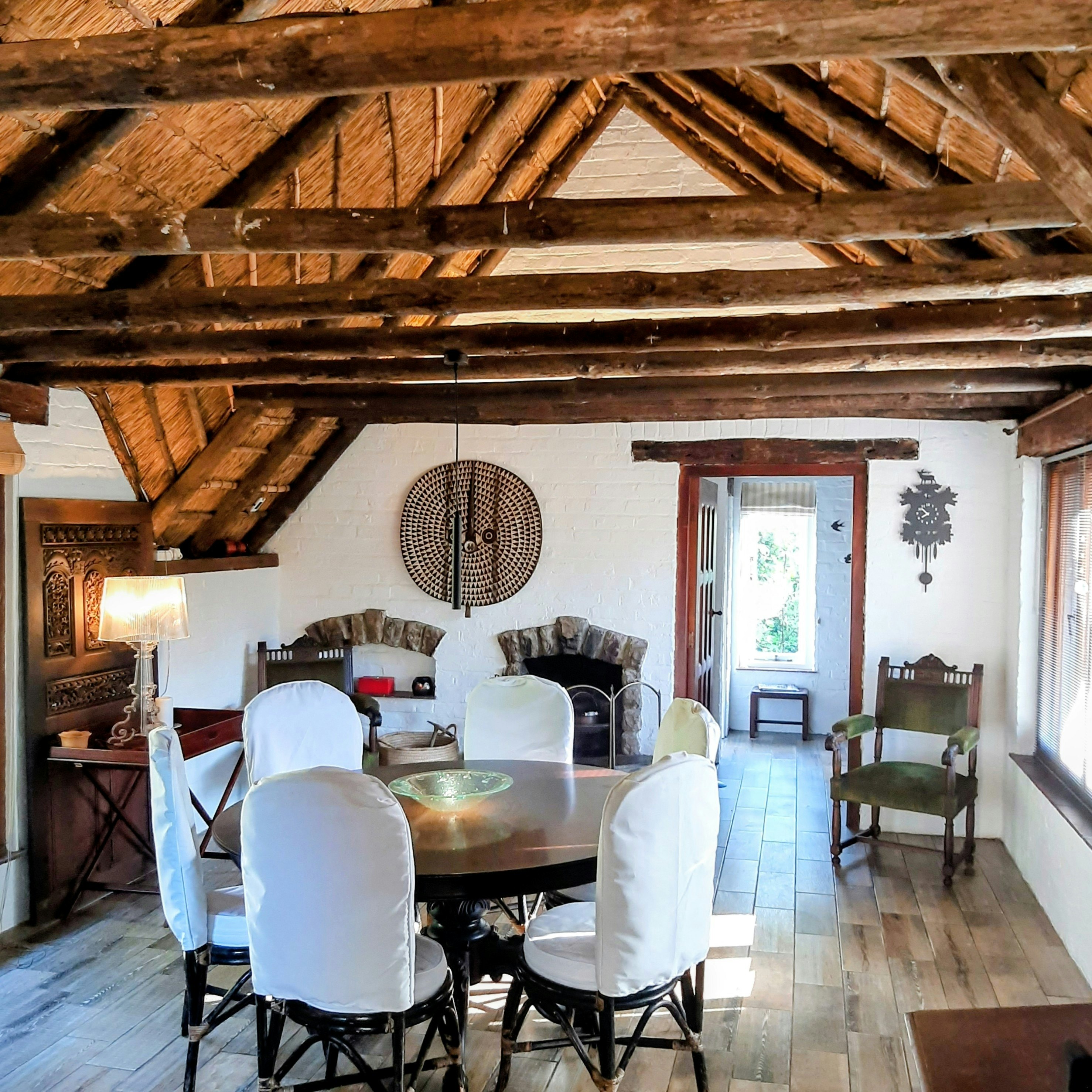 Nestled in an exclusive kloof on the edge of a Boekenhout forest in the peaceful village of Betty’s Bay, this heritage thatch-roof cottage stands as one of the few original homes built in the area. Designed and constructed in the 1930s by architect Tappies de Wet for his family, shortly after Harold Porter planned the town and its botanical gardens, the cottage has since been lovingly maintained and modernised by only its third set of owners.