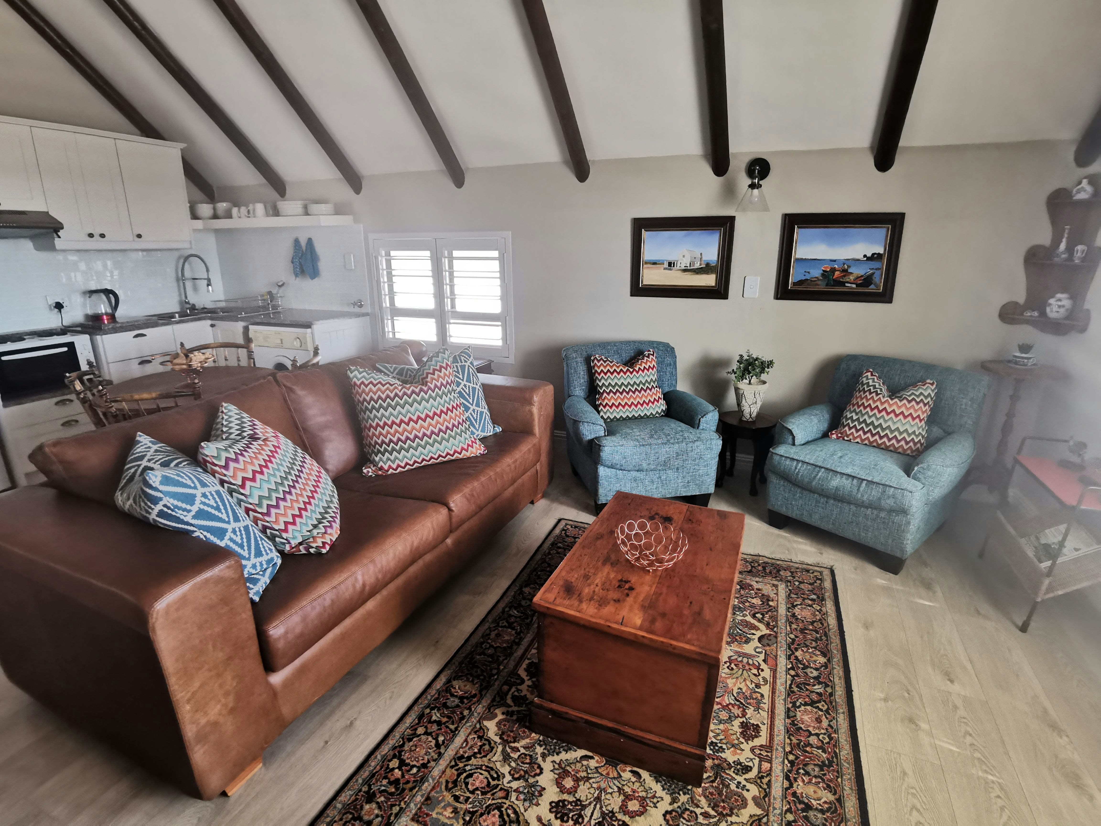 The Bokkomdraai Apartment is located on the 1st floor and is suited to accommodate 2 guests. The bedroom has a double bed and the bathroom has a corner shower, toilet, and a basin. The kitchen is equipped with a 2-plate stove with oven, microwave, fridge, washing machine, crockery, and cutlery. The apartment features a spacious veranda with unrestricted sea views.