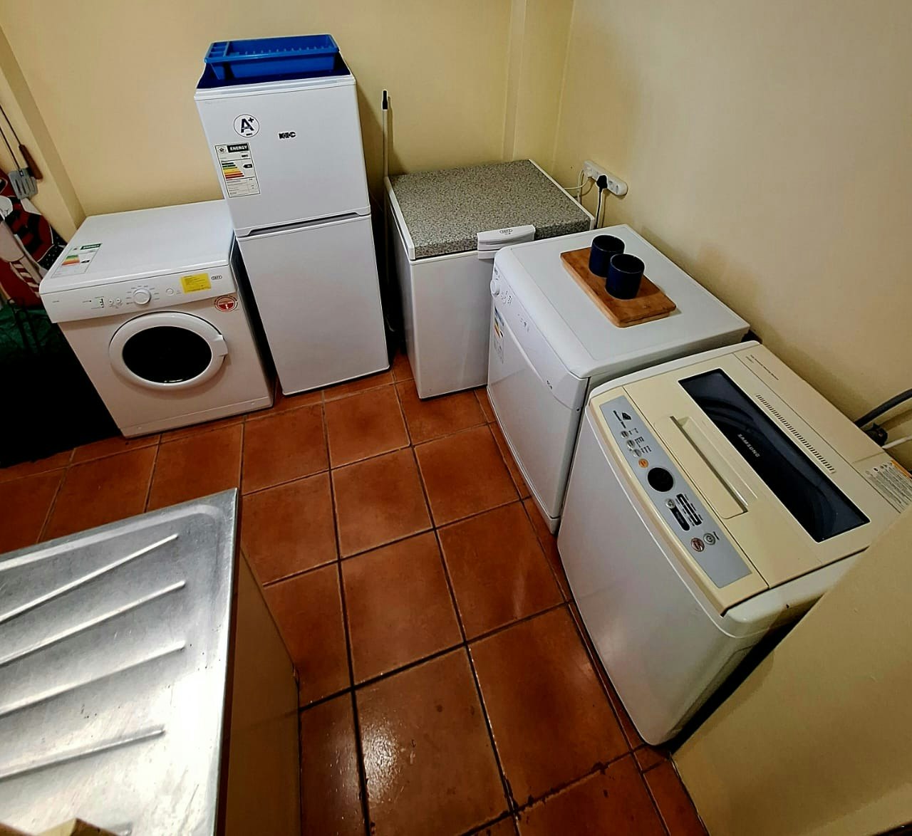 Die kombuis is volledig toegerus vir selfsorg en sluit 'n aparte opwaskamer in. Dit is toegerus met 2 yskaste, 'n vrieskas, 'n gasstoof met oond, alle nodige breekware en eetgerei, en 'n mikrogolfoond. Die aparte opwaskamer beskik ook oor 'n wasmasjien, skottelgoedwasser en tuimeldroër.