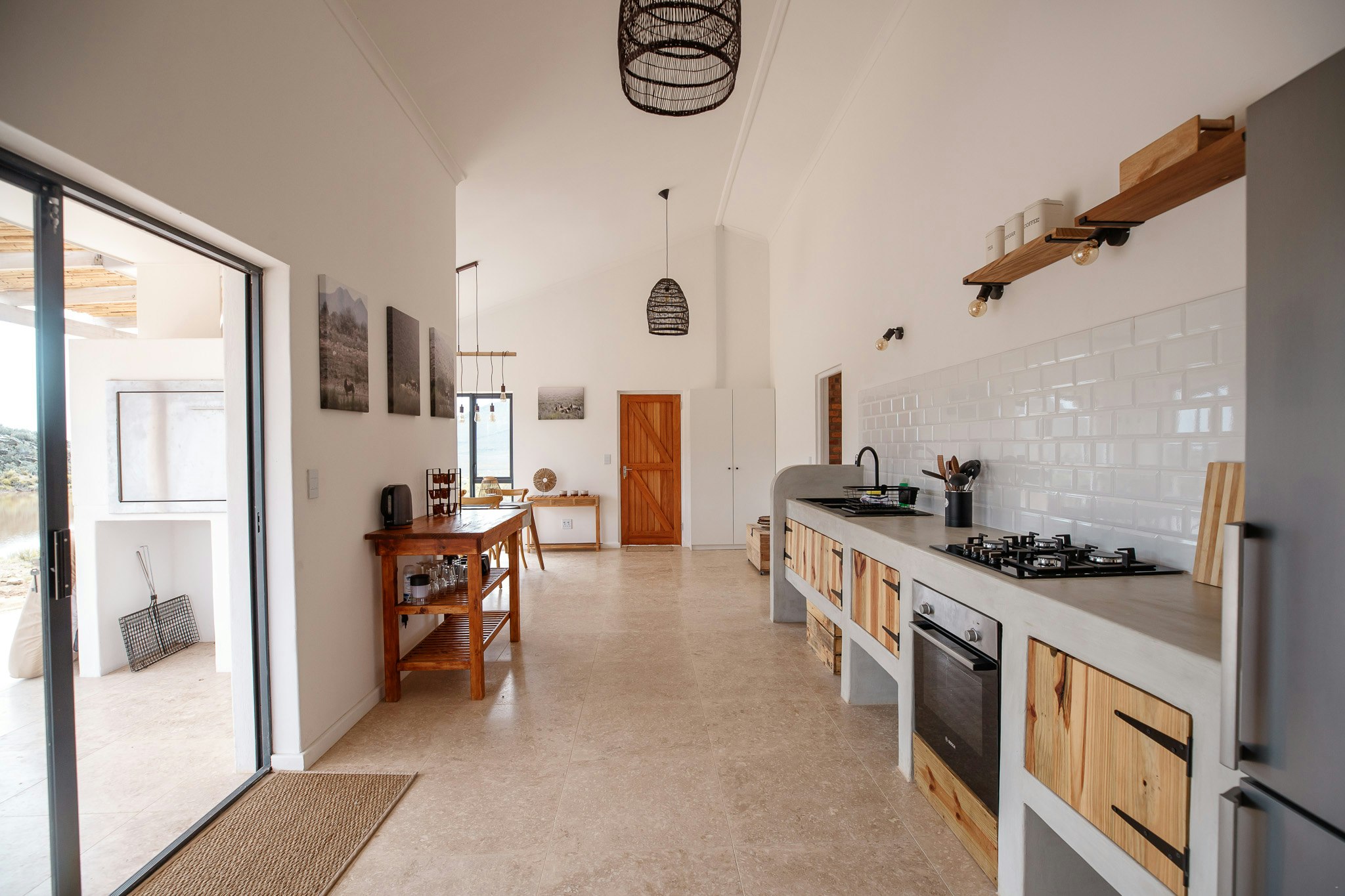 Outside, guests can enjoy outdoor dining and a braai area, a perfect setting for sundowners while overlooking the beautiful dam and surrounding tranquil mountains. The property boasts a private terrace with a wood-fired hot tub.