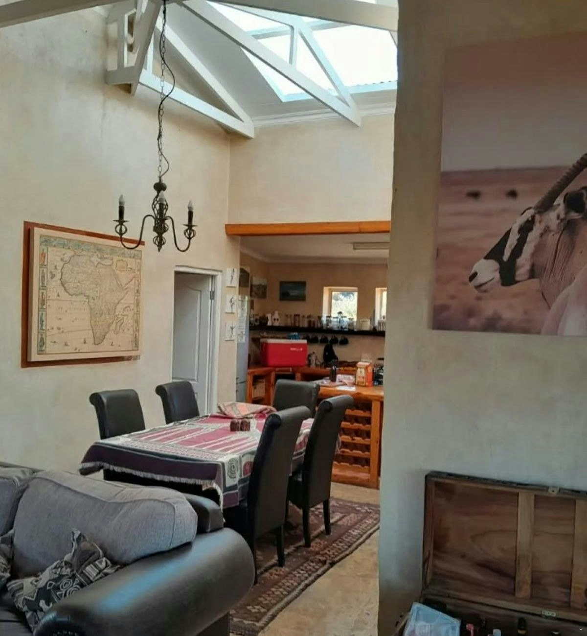 Outside, guests can enjoy meals on the furnished patio while taking in the surrounding views. Activities in the reserve include hiking, mountain biking, birdwatching with over 80 species to spot, and exploring unique rock formations and Karoo succulents. The clear night skies are ideal for stargazing, and guests may also encounter wildlife such as Cape mountain zebra, bontebok, gemsbok, kudu, eland, red hartebeest, black wildebeest, springbok, giraffe, ostrich, duiker, steenbok and black-backed jackal.