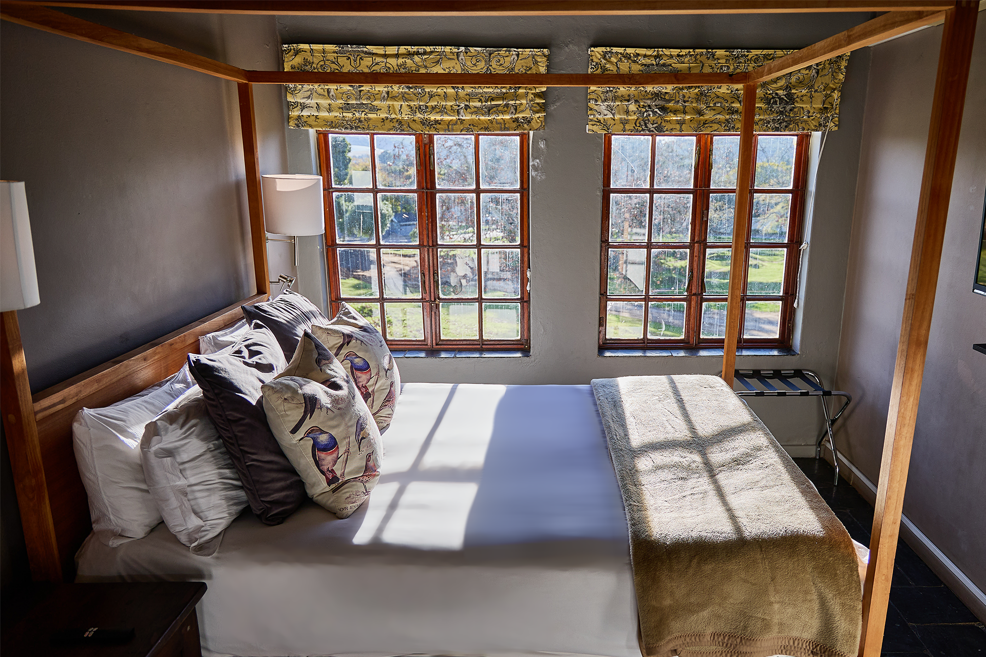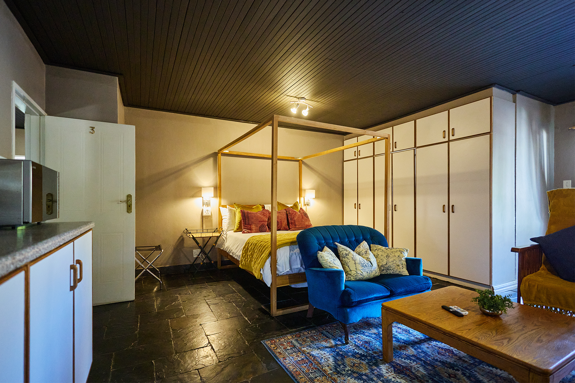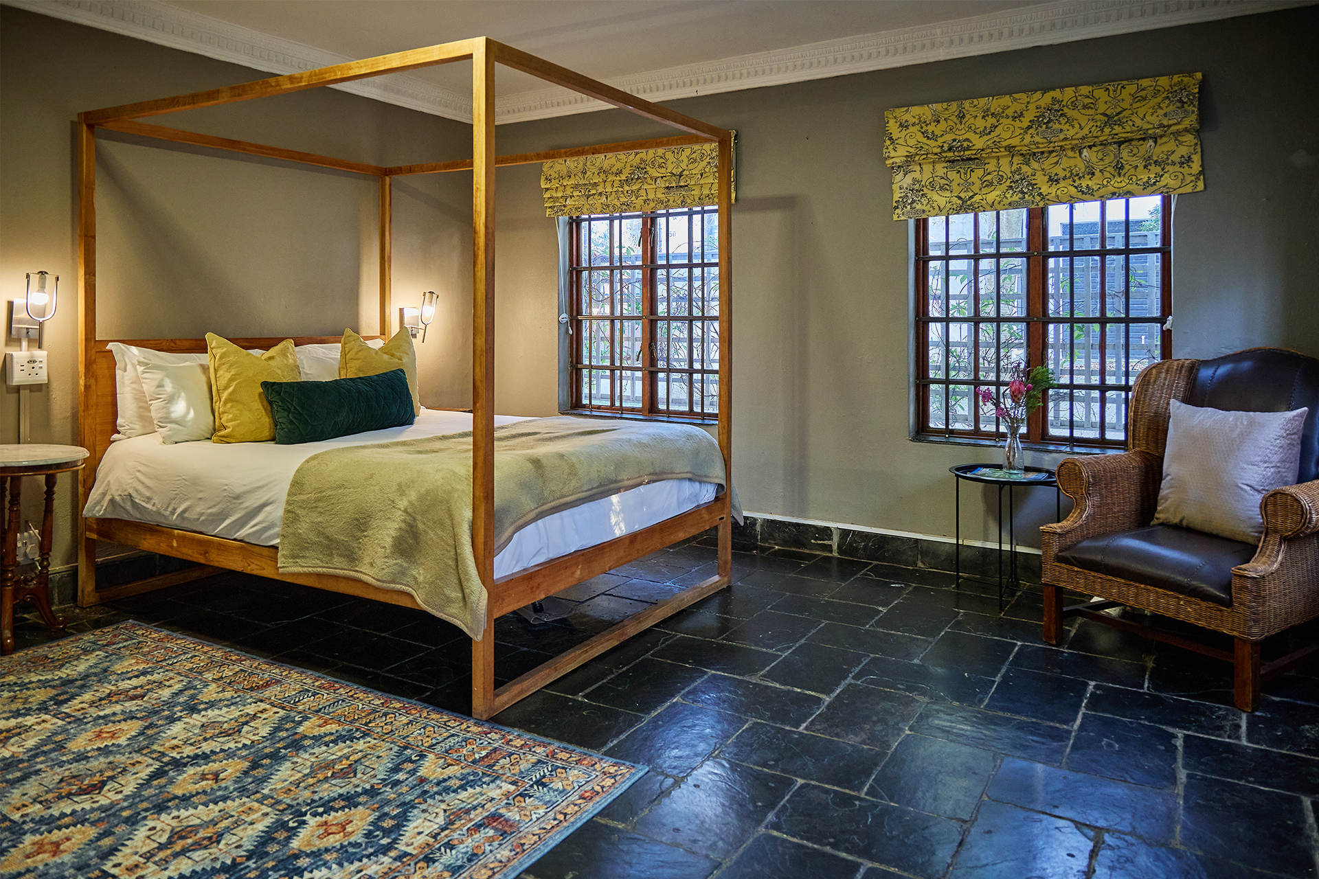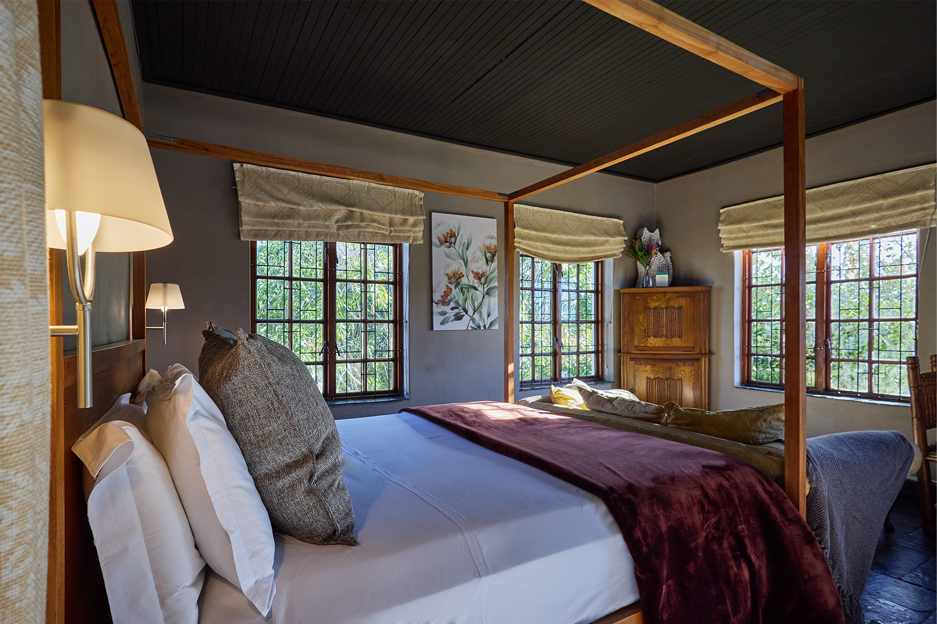 Elke kamer is individueel versier met eklektiese interieurs wat die sjarme van die omliggende omgewing weerspieël. Die eiendom is geleë in 'n lowerryke tuin, waar stil hoekies geskep is vir rus of besinning. 'n Swembad is ook beskikbaar en is geposisioneer om die meeste van die sonnige weer wat so dikwels in Stellenbosch geniet word, te benut.