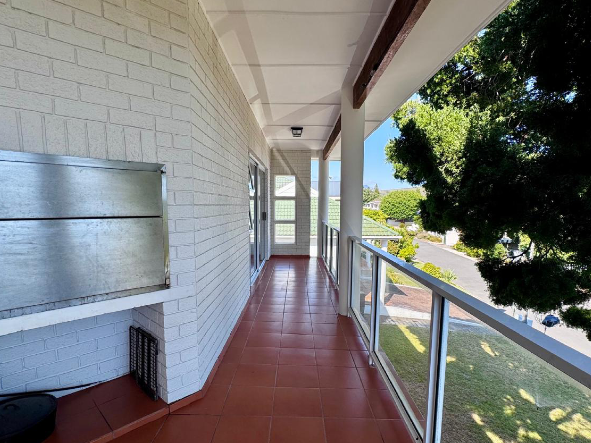 The double-storey house comprises 4 bedrooms and can accommodate 8 adults. 2 of the bedrooms are furnished with a double bed. The third bedroom has a queen size bed, while the fourth bedroom has 2 single beds. The bedrooms have access to 2 bathrooms fitted with either a bath or shower.