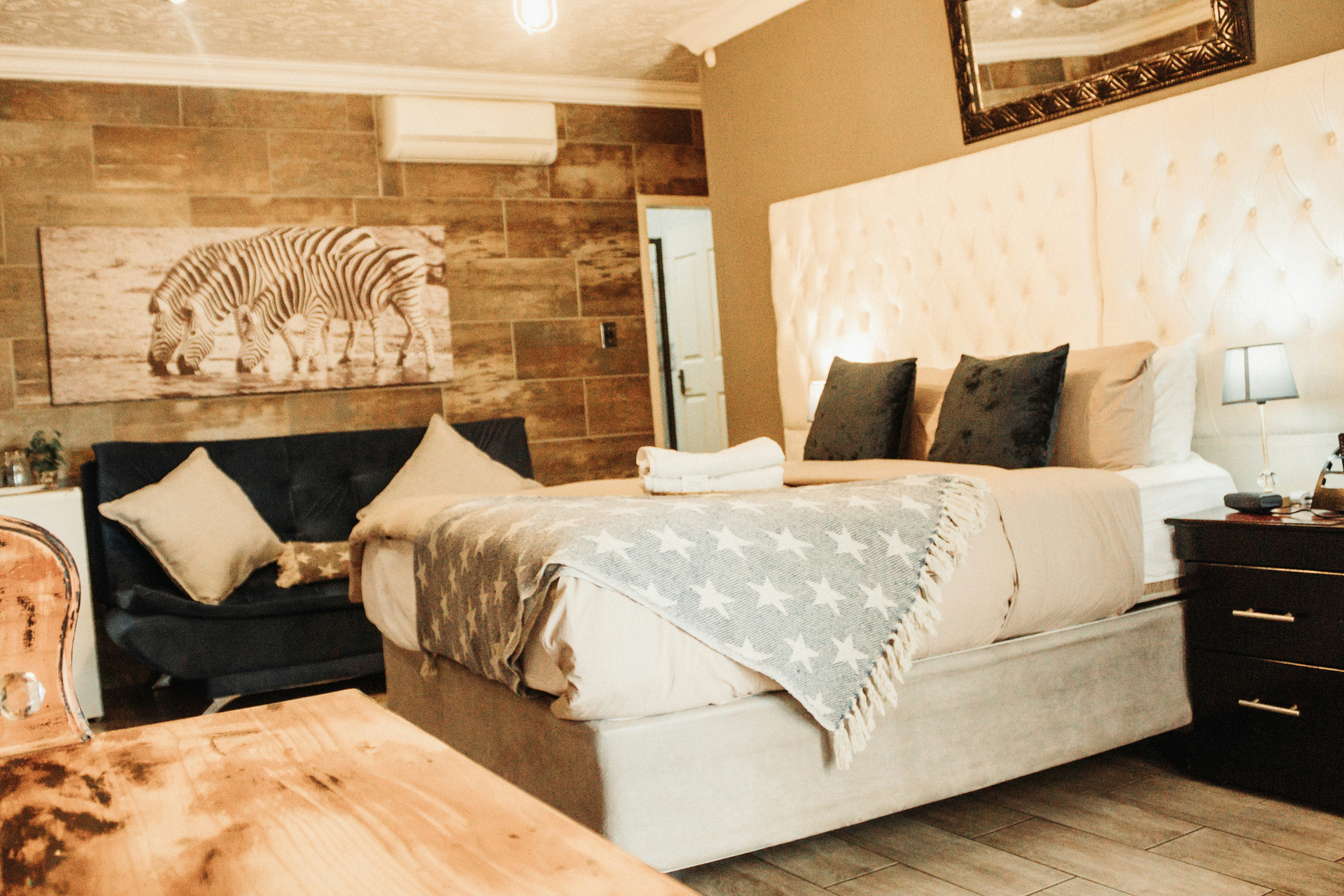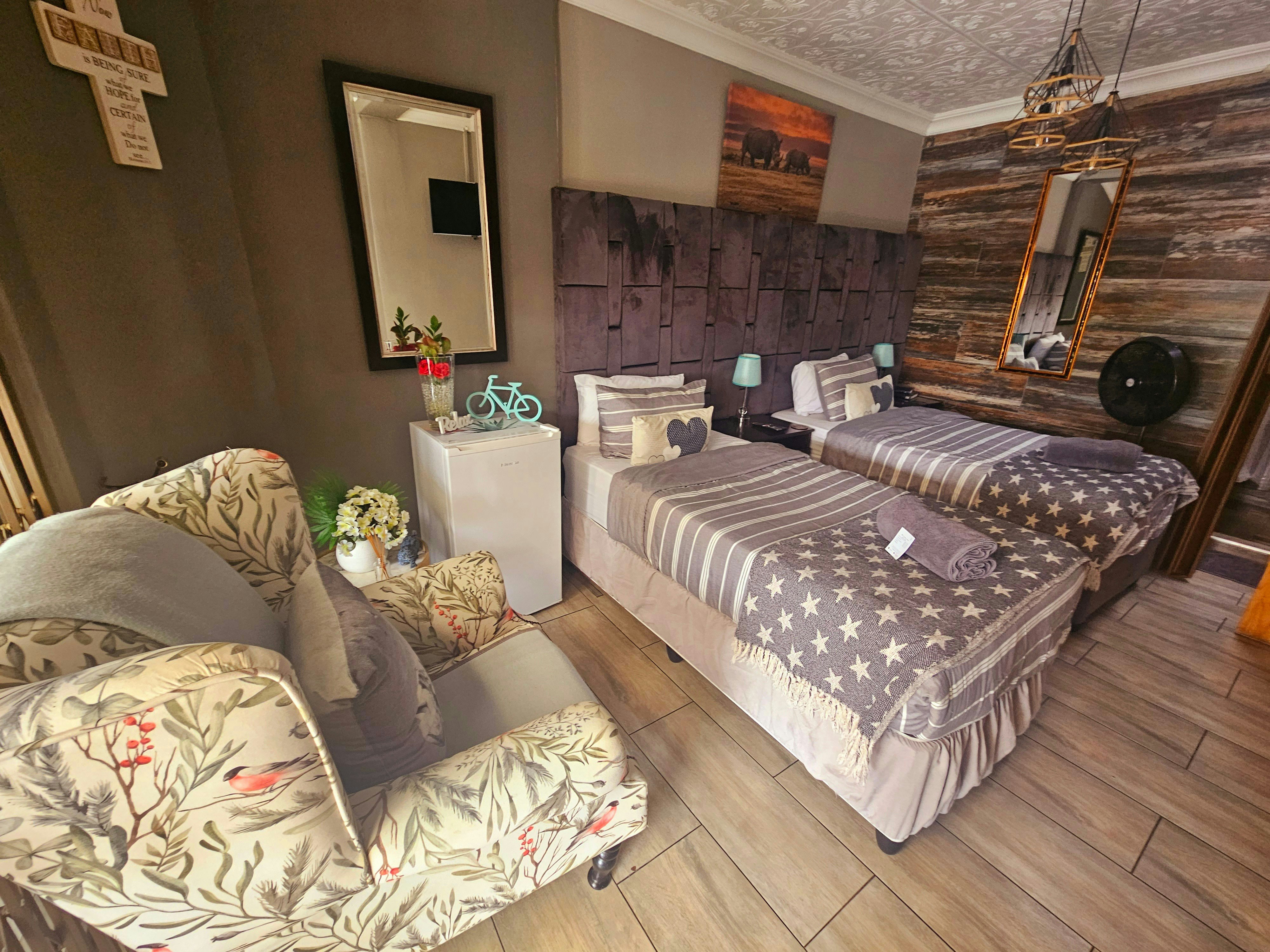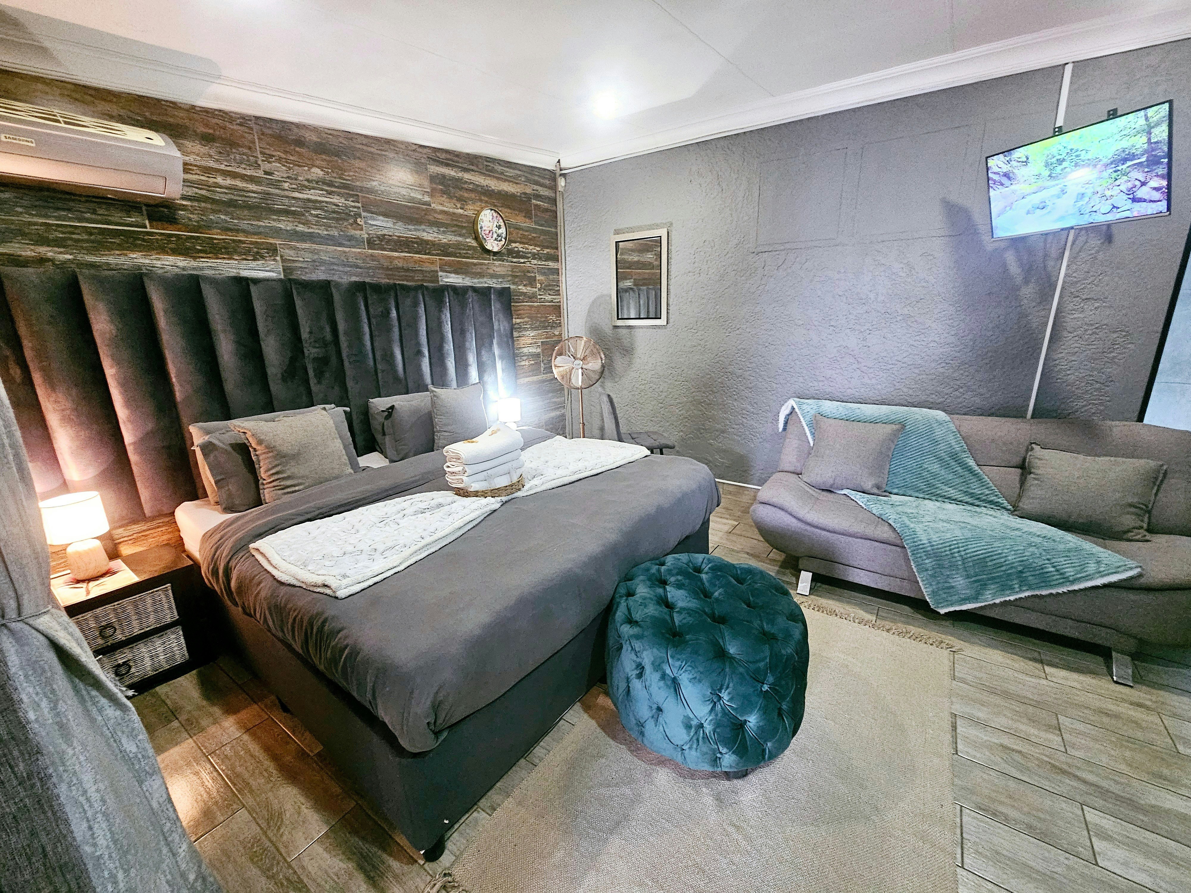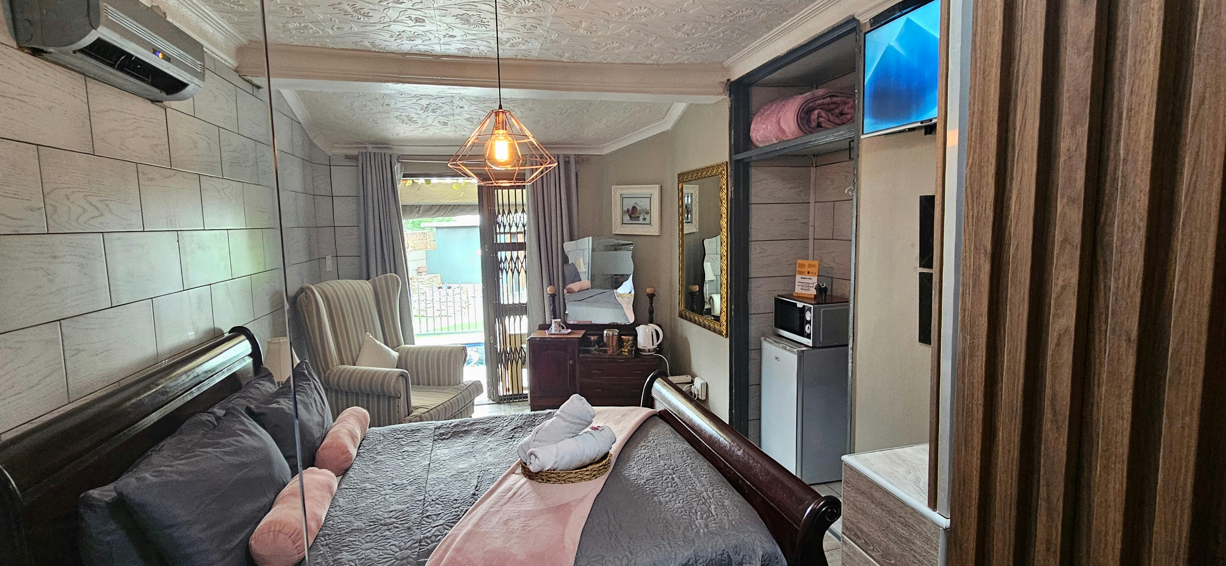 Verblyf word in 5 gastekamers voorsien. Elke eenheid maak oop na 'n patio met 'n lieflike sitarea. Die patio kyk uit oor die swembad. Die slaapkamers is gemeubileer met 'n koningingrootte bed, met ekstra slaapbanke in die gesinskamers, en 'n en suite-badkamer met 'n stort, toilet en wasbak. Kamergeriewe sluit in ingeboude kaste, 'n TV met Netflix, WiFi, 'n yskas, 'n mikrogolfoond en tee- en koffiemaakgeriewe. Gaste kan by DStv aanmeld met hul eie besonderhede.