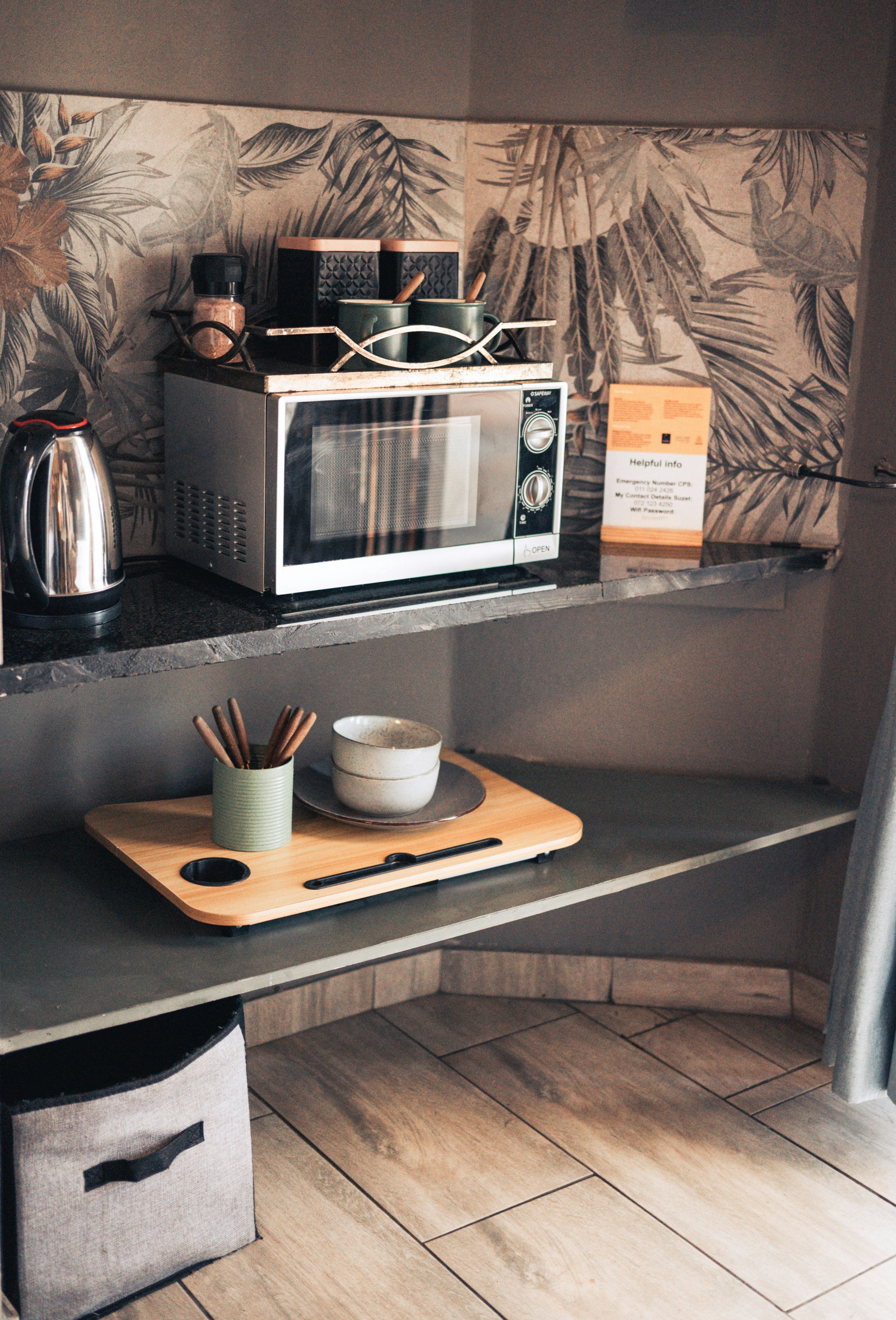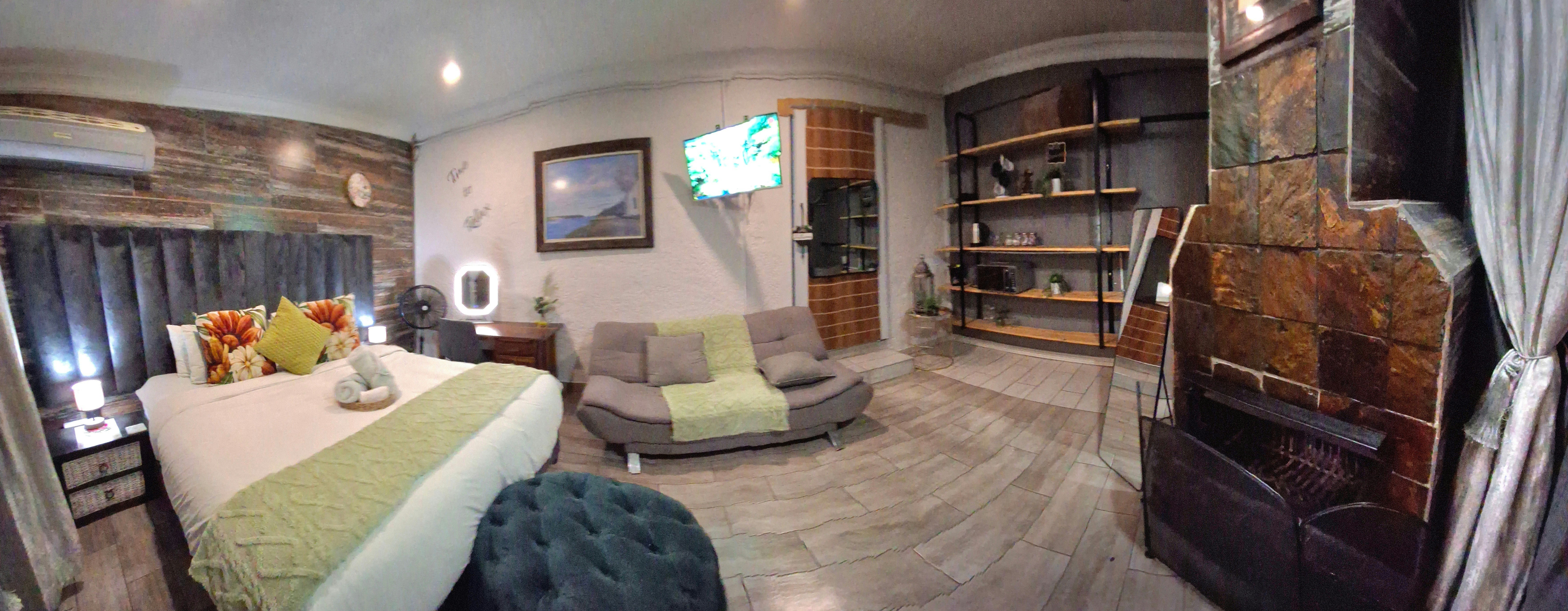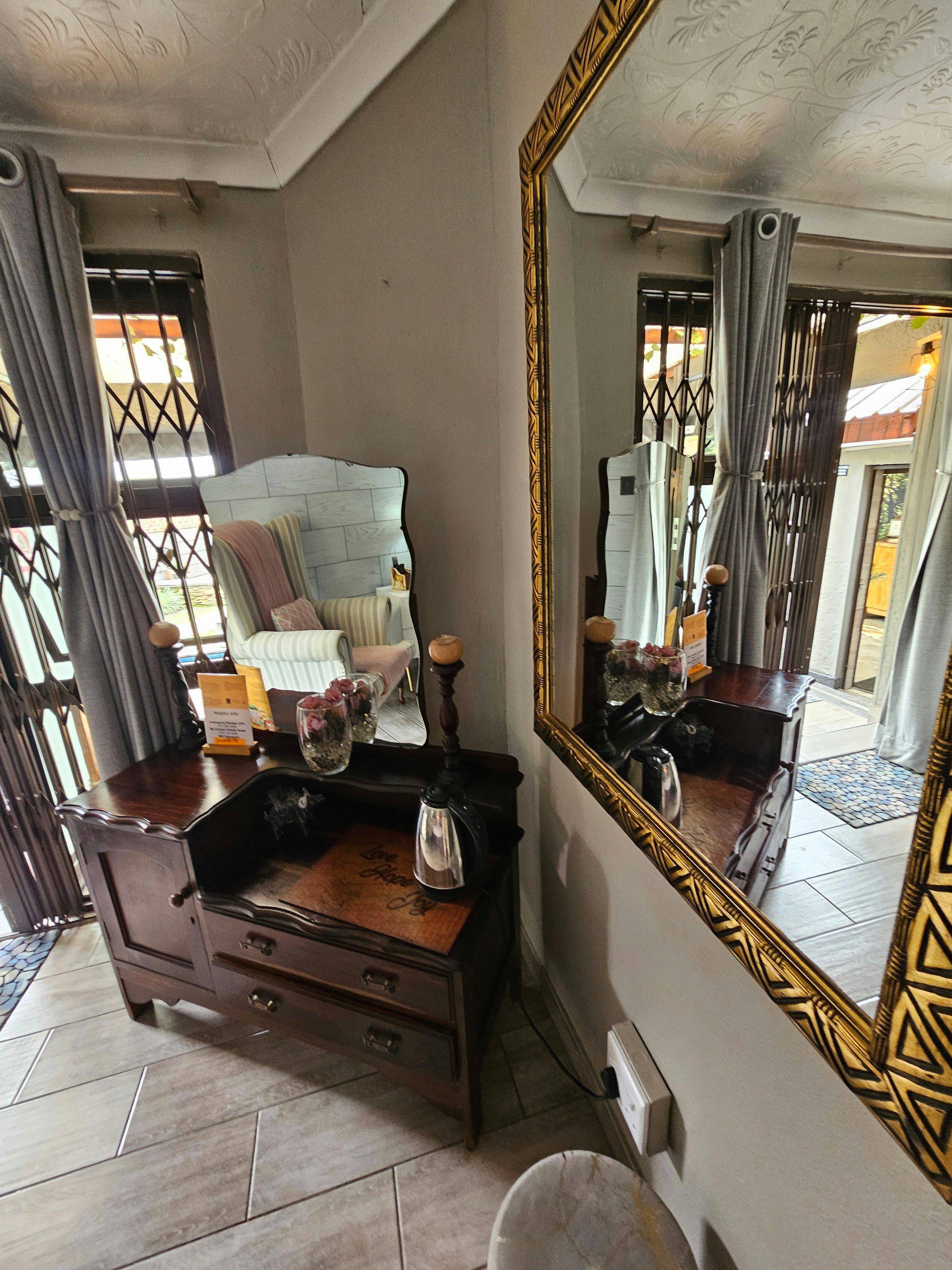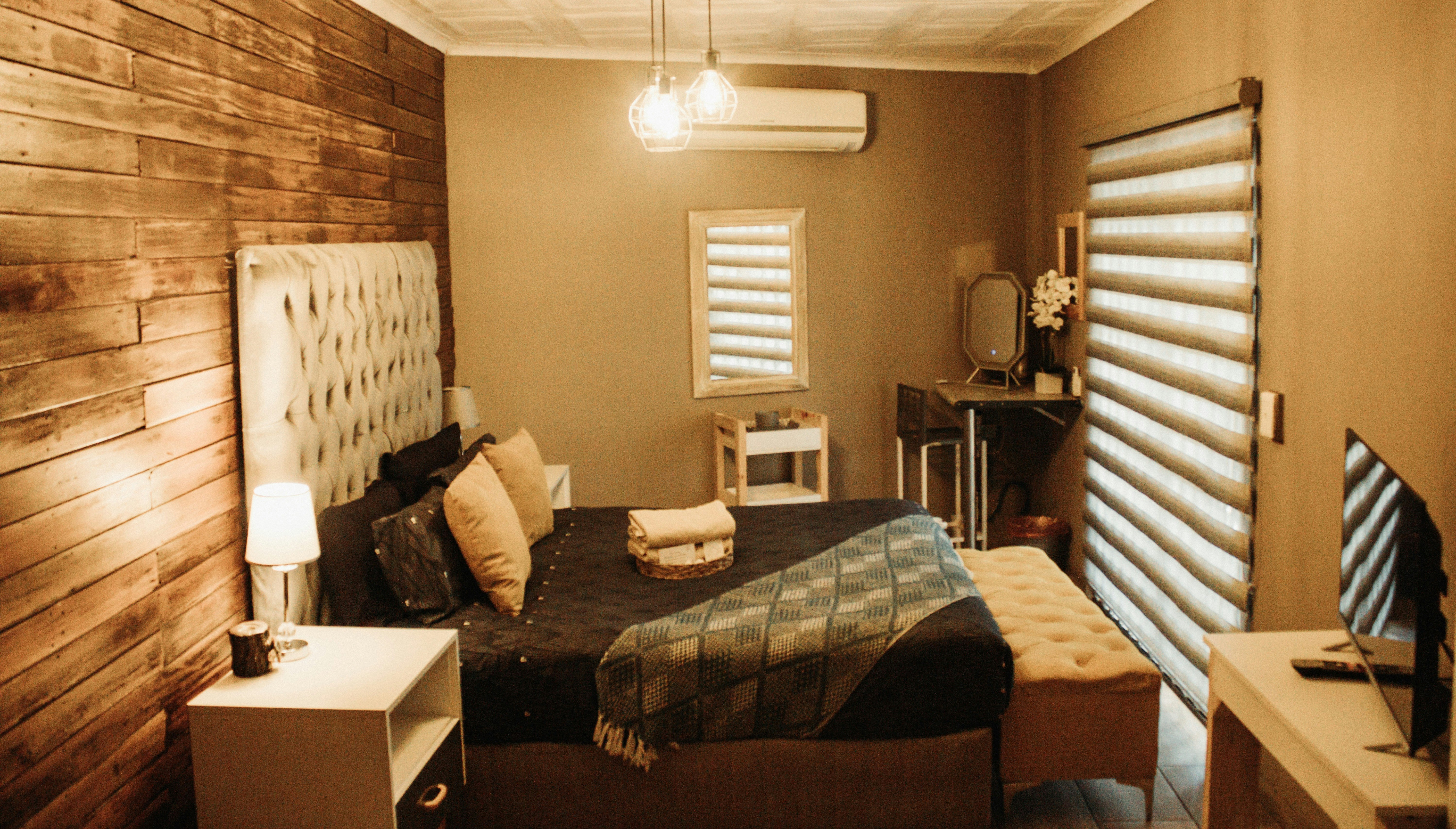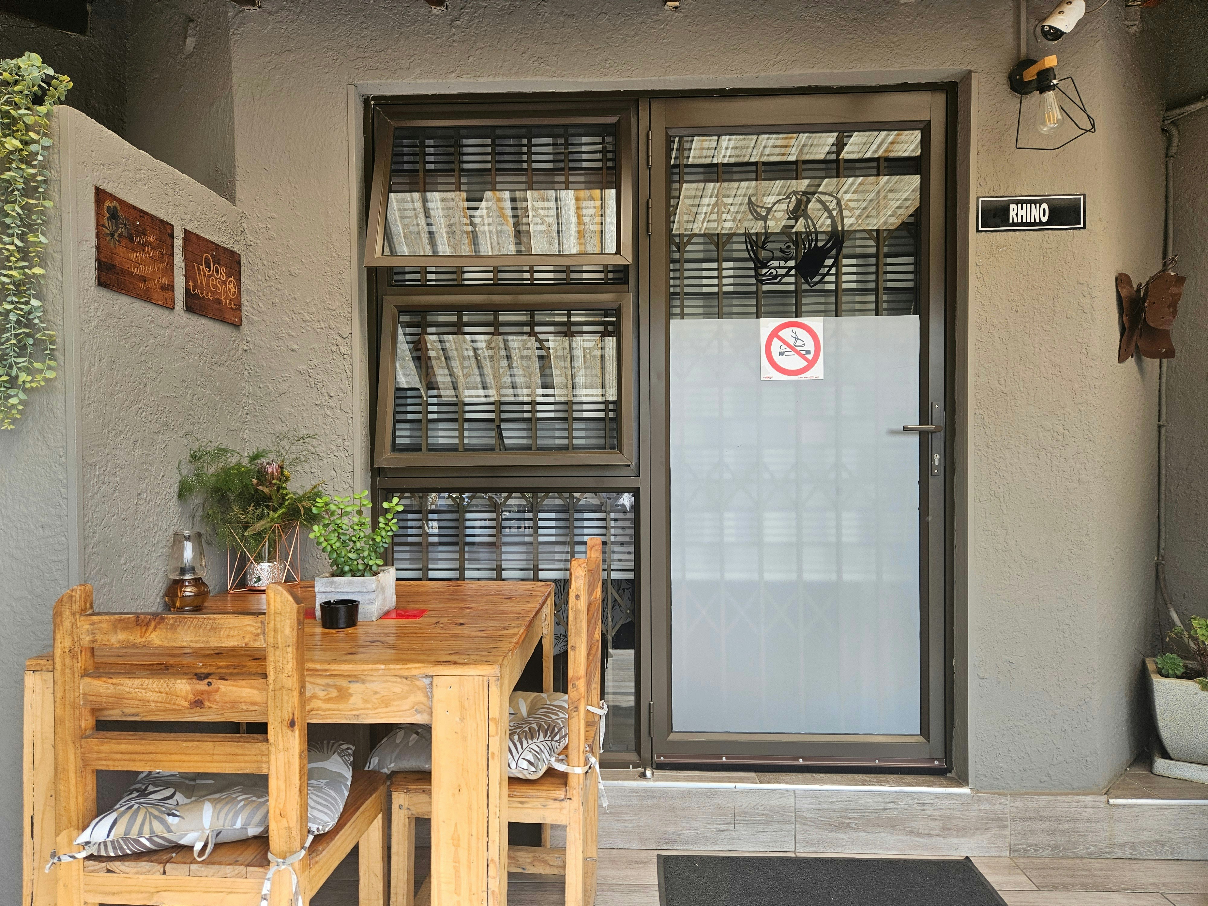 Verblyf word in 5 gastekamers voorsien. Elke eenheid maak oop na 'n patio met 'n lieflike sitarea. Die patio kyk uit oor die swembad. Die slaapkamers is gemeubileer met 'n koningingrootte bed, met ekstra slaapbanke in die gesinskamers, en 'n en suite-badkamer met 'n stort, toilet en wasbak. Kamergeriewe sluit in ingeboude kaste, 'n TV met Netflix, WiFi, 'n yskas, 'n mikrogolfoond en tee- en koffiemaakgeriewe. Gaste kan by DStv aanmeld met hul eie besonderhede.